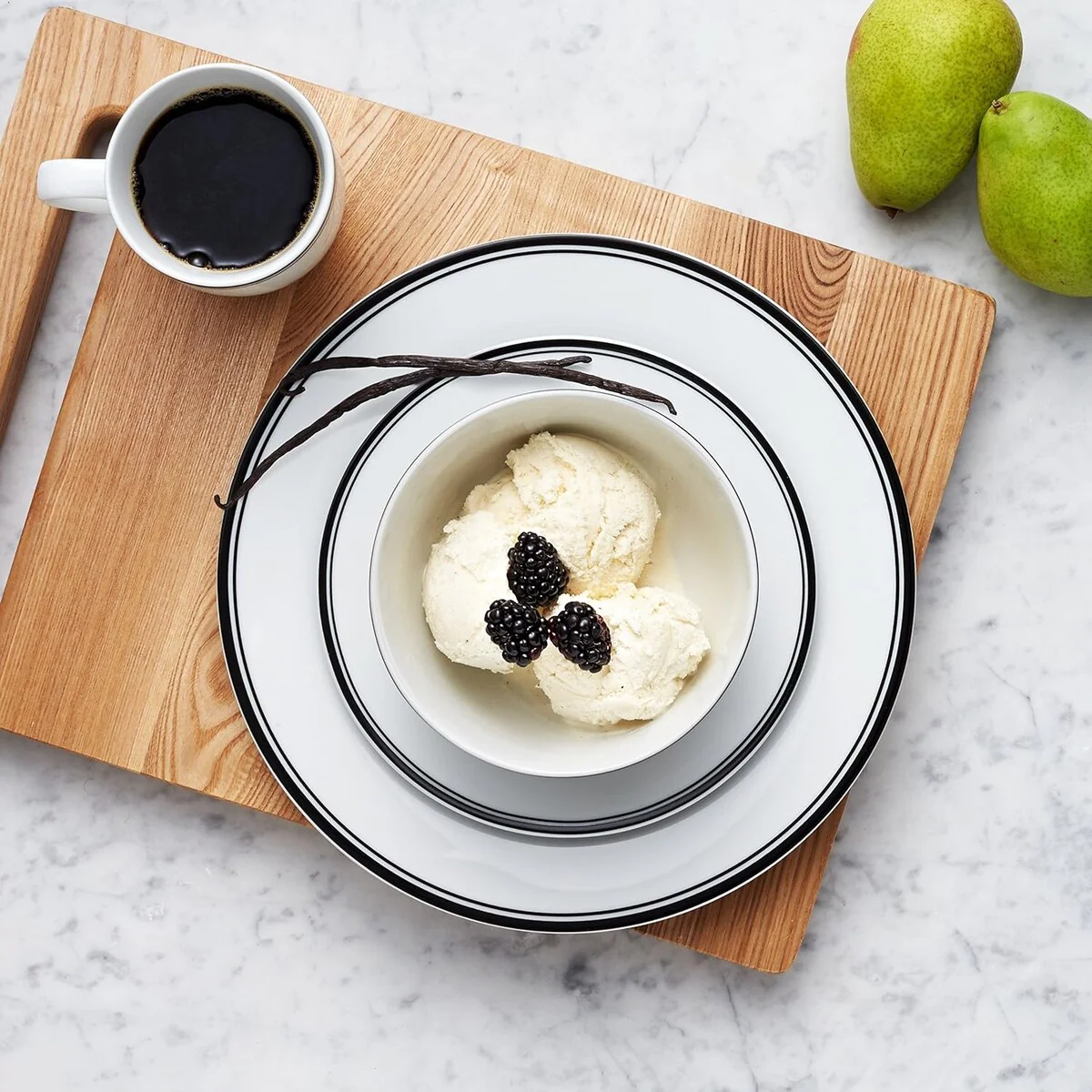 Includes 4 each: 10.5-inch dinner plate, 7.5-inch salad/dessert plate, 5.5 x 2.75-inch bowl, and 4-inch-tall coffee/tea mug