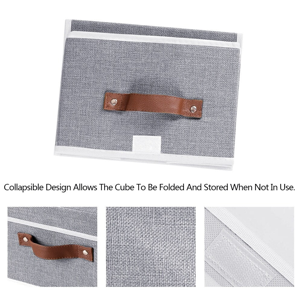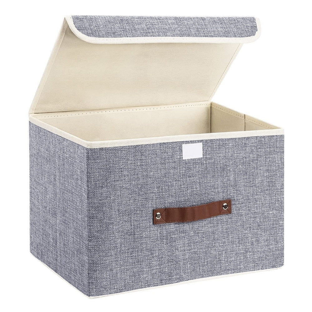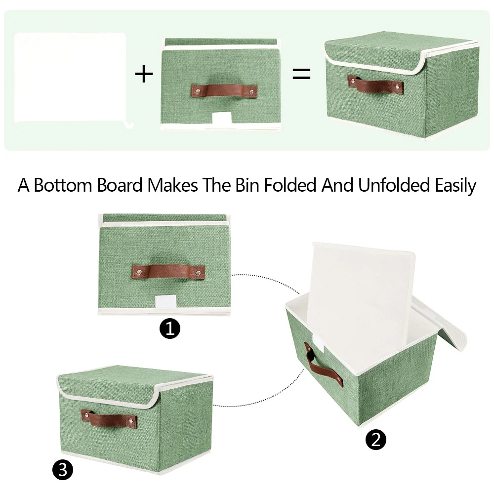 Organize your mess with our cotton & linen fabric cube storage bins, which are functional, durable, and meet your different needs. They are designed with lids and faux leather handles for easy to move. They are good helpers to store books, clothes, baby products, kids’ toys, towels, blankets, snacks, etc. Perfect for home, apartment, office and school organization and storage.