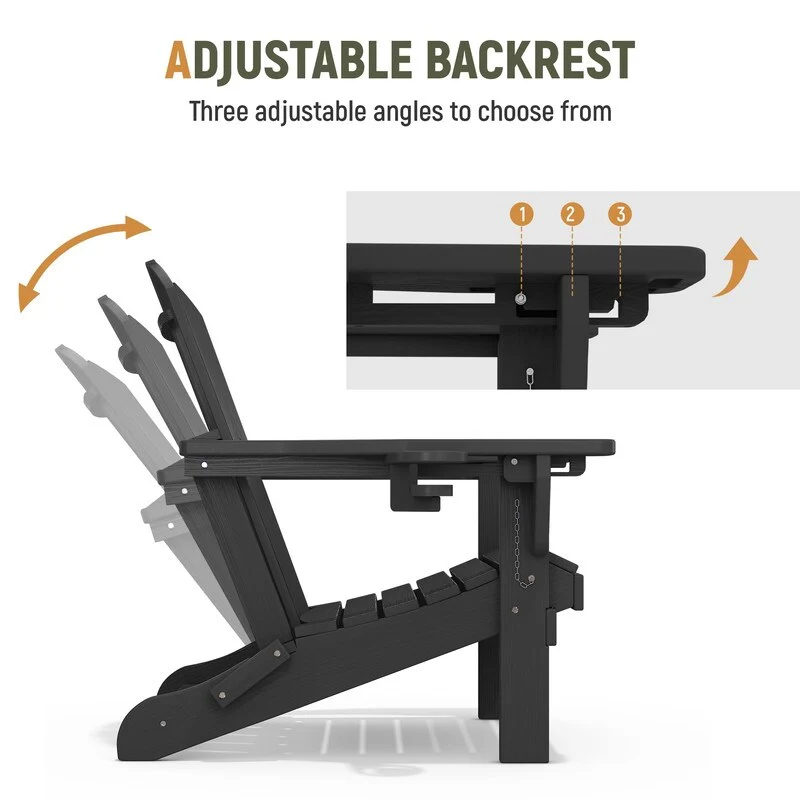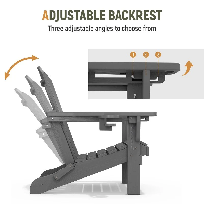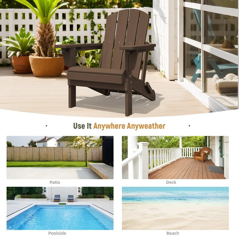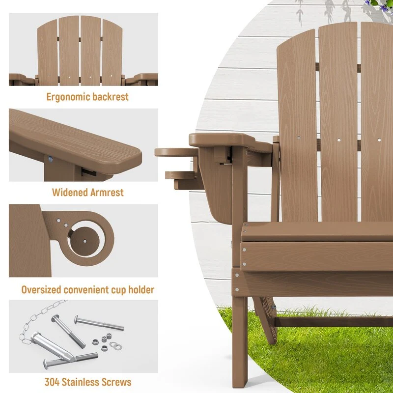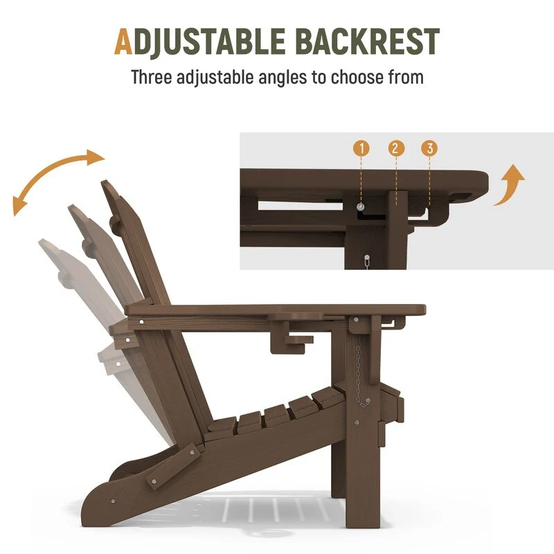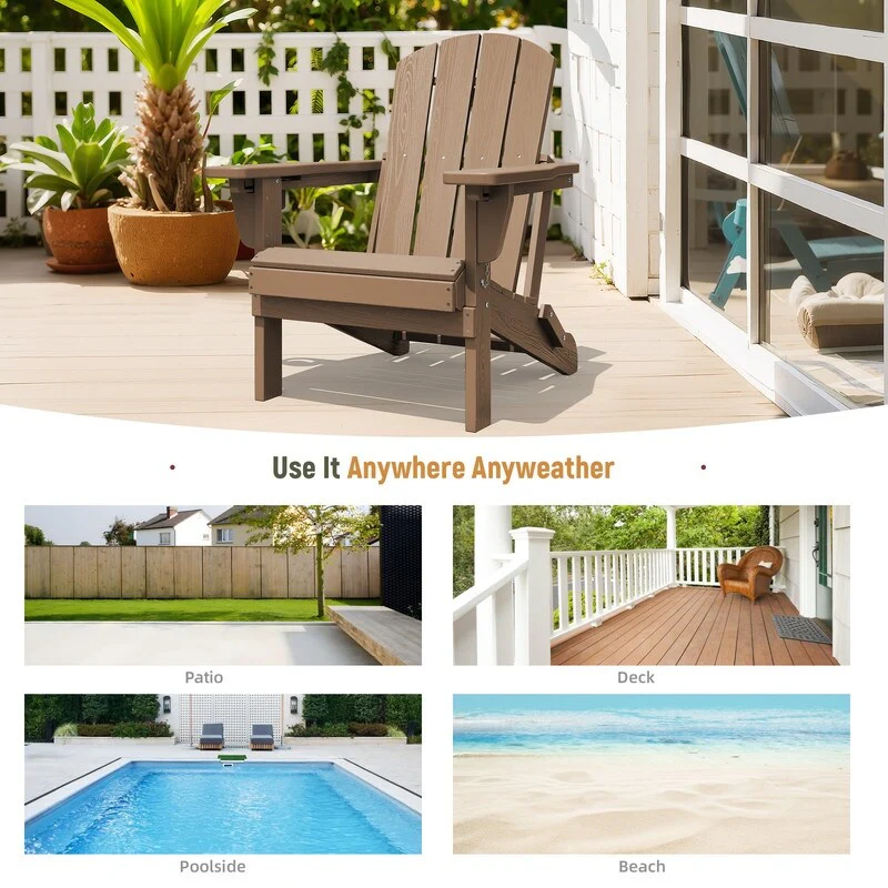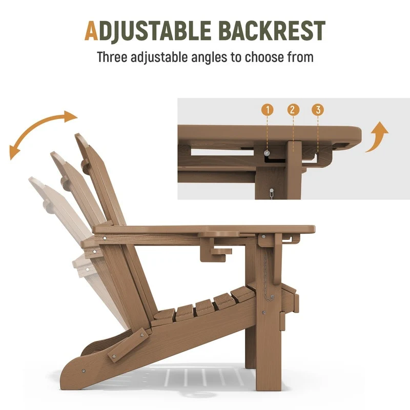 Add comfort and style to your outdoor space with this adjustable folding chair, crafted from durable, weather-resistant PE material. Designed with a natural wood grain texture, it offers the timeless appeal of wood without the upkeep. The 3-position reclining backrest allows for customized relaxation, while the wide armrests and contoured seat provide superior comfort.This chair folds easily for storage or transport, making it ideal for patios, gardens, balconies, beaches, and poolside lounging. Whether you're soaking up the sun or enjoying a quiet moment outdoors, this chair combines function, style, and convenience.