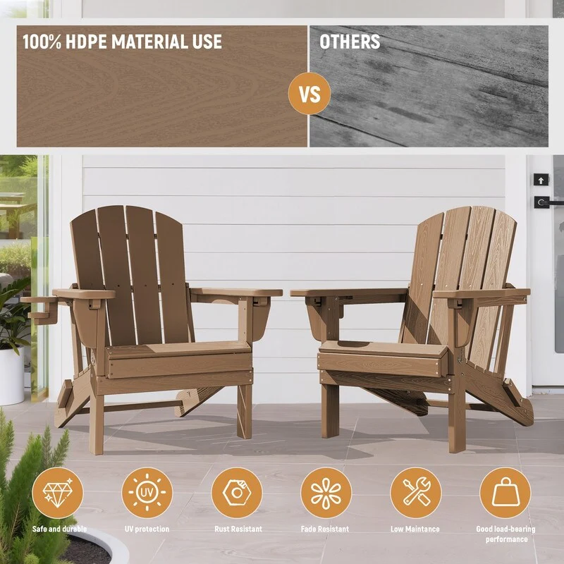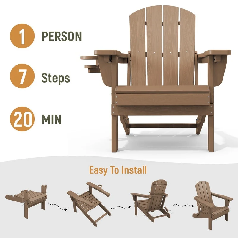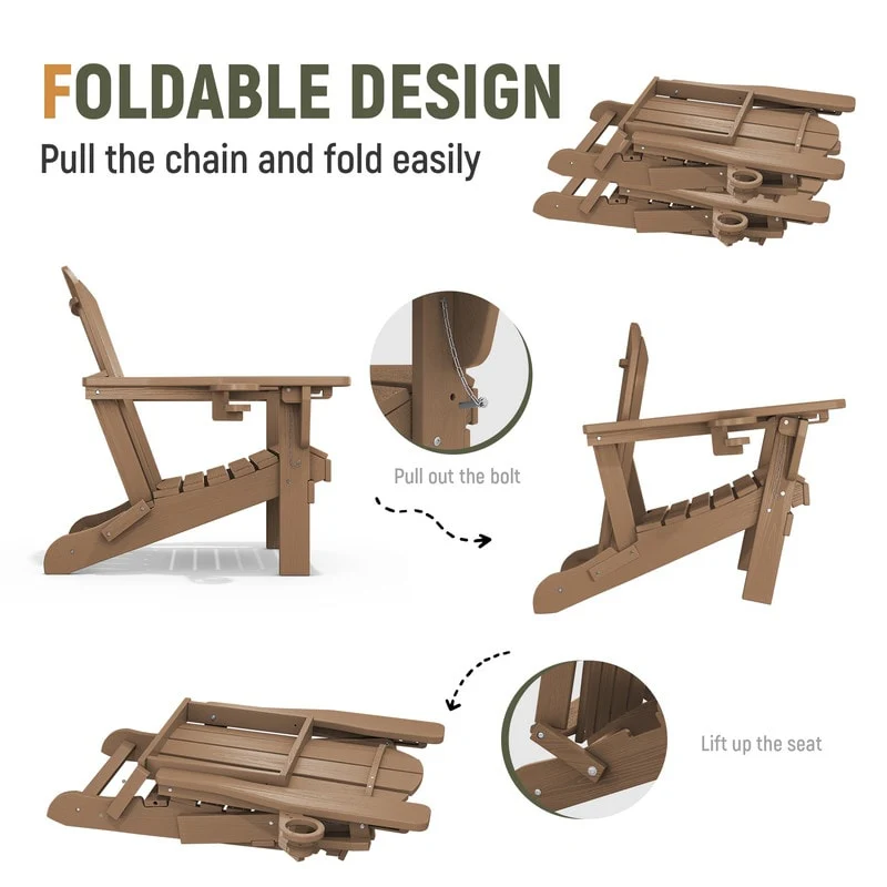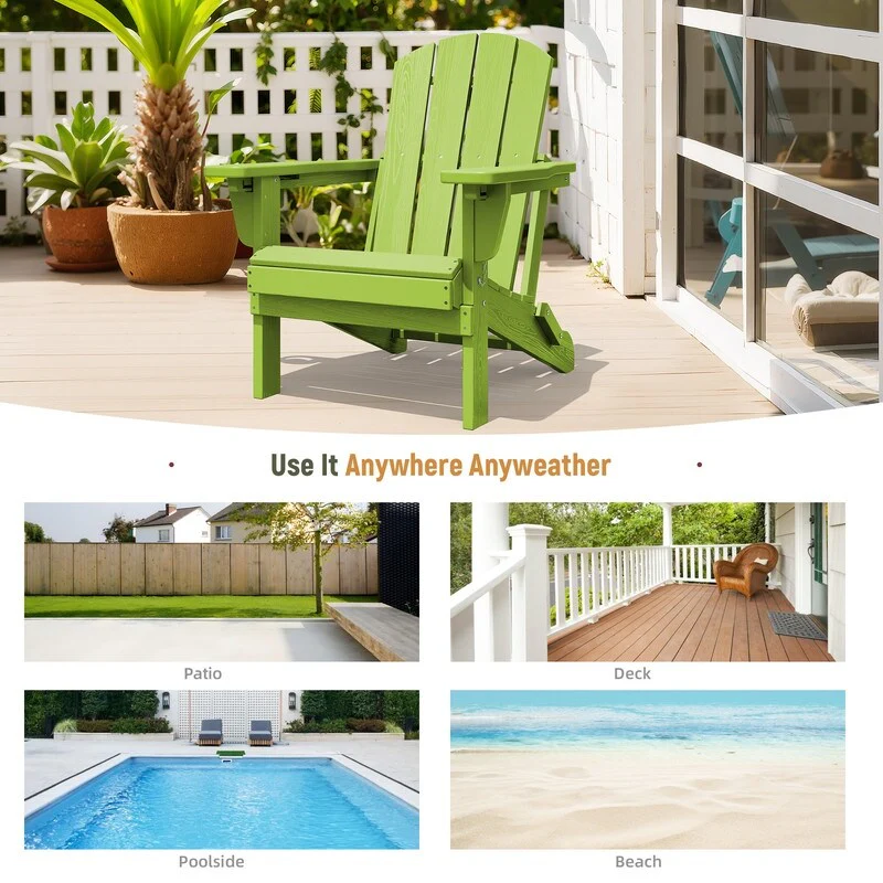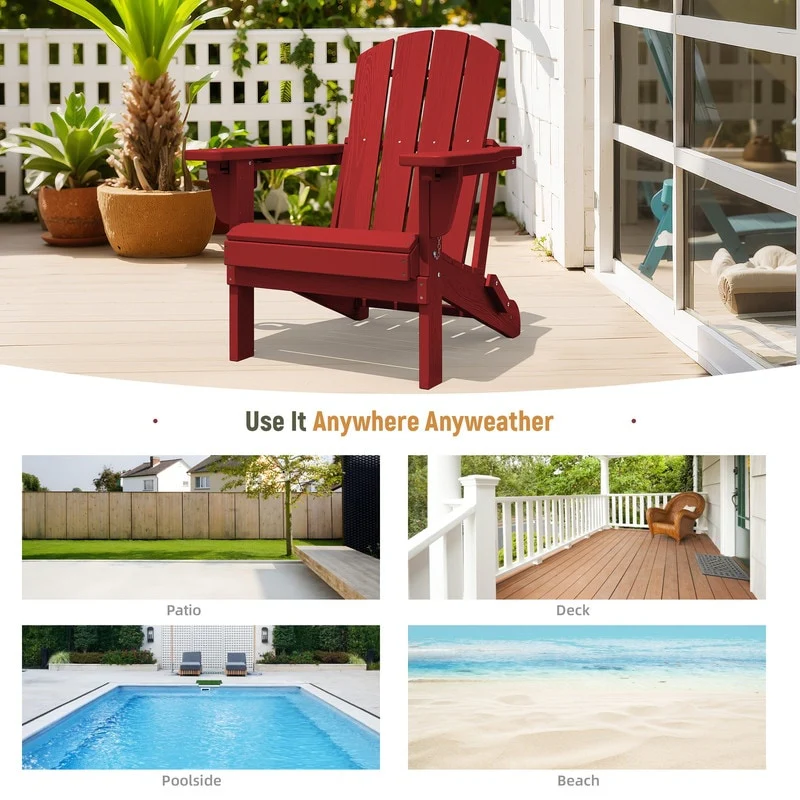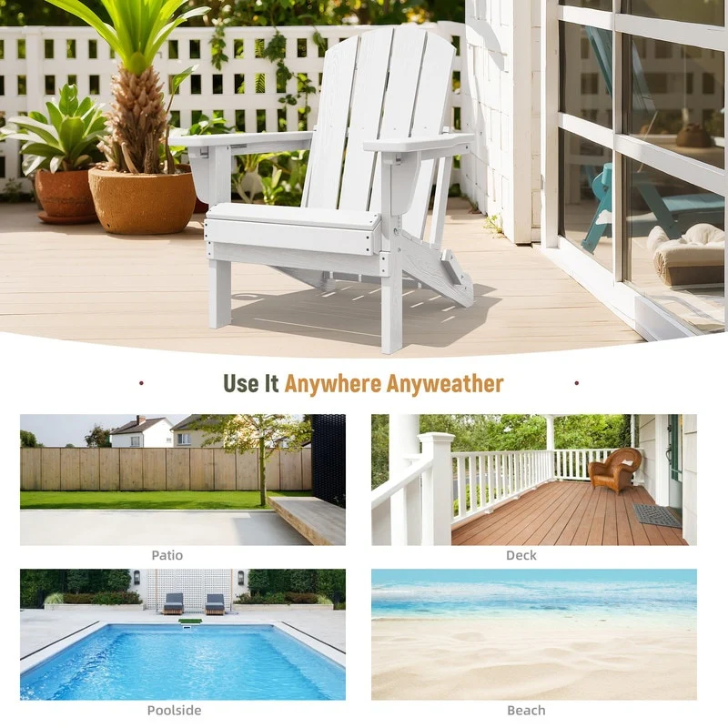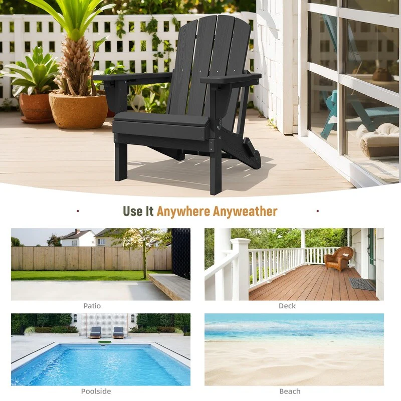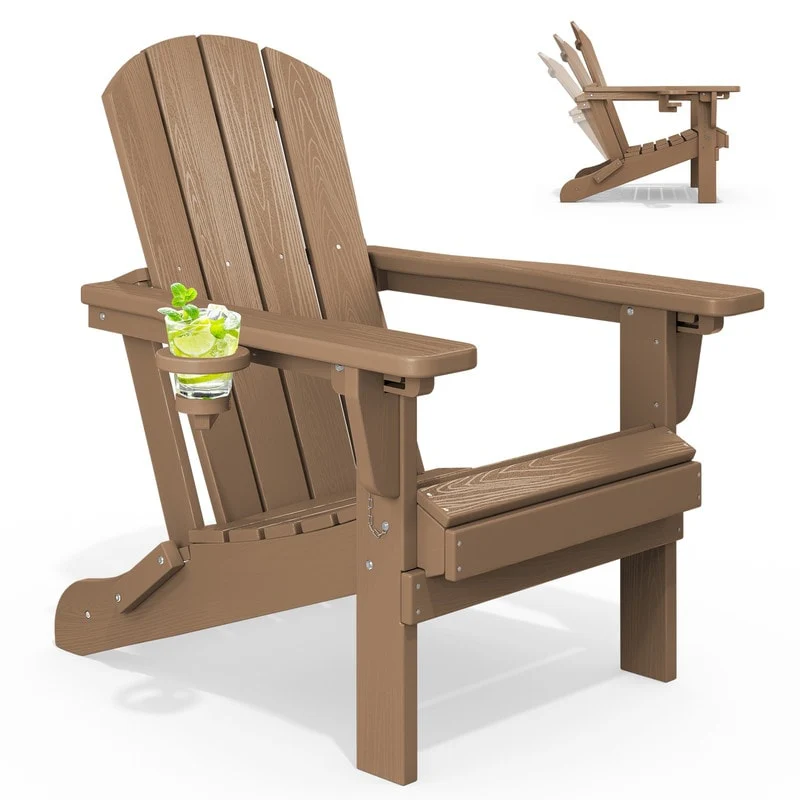 Add comfort and style to your outdoor space with this adjustable folding chair, crafted from durable, weather-resistant PE material. Designed with a natural wood grain texture, it offers the timeless appeal of wood without the upkeep. The 3-position reclining backrest allows for customized relaxation, while the wide armrests and contoured seat provide superior comfort.This chair folds easily for storage or transport, making it ideal for patios, gardens, balconies, beaches, and poolside lounging. Whether you're soaking up the sun or enjoying a quiet moment outdoors, this chair combines function, style, and convenience.