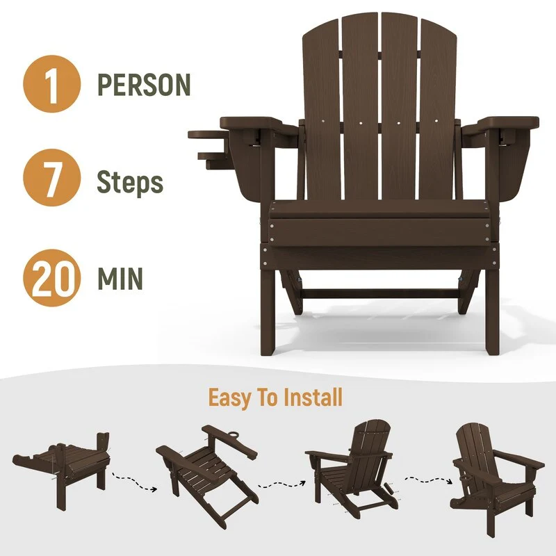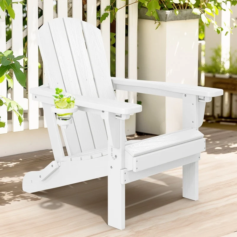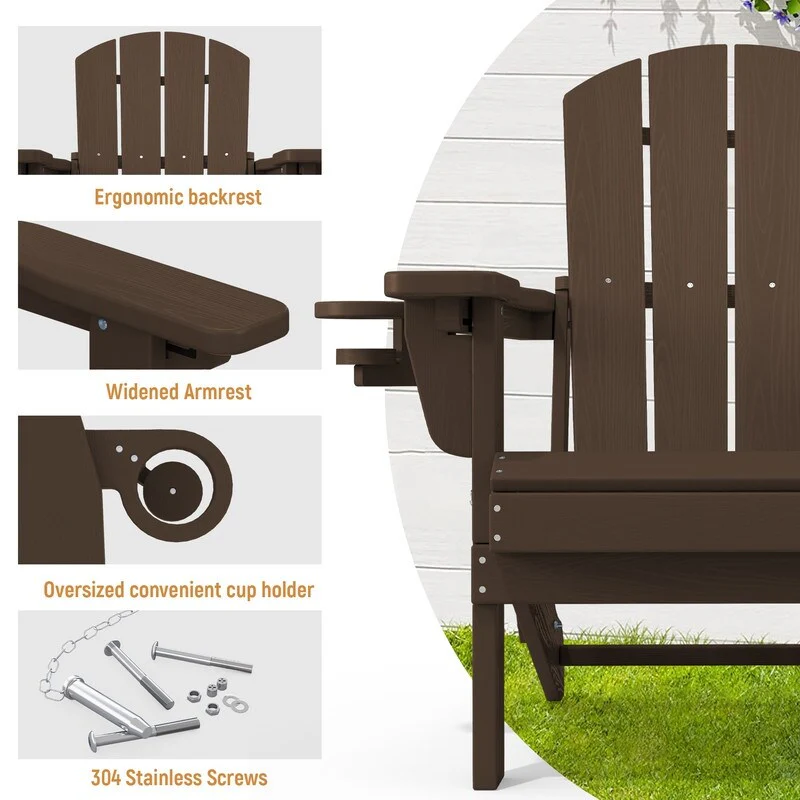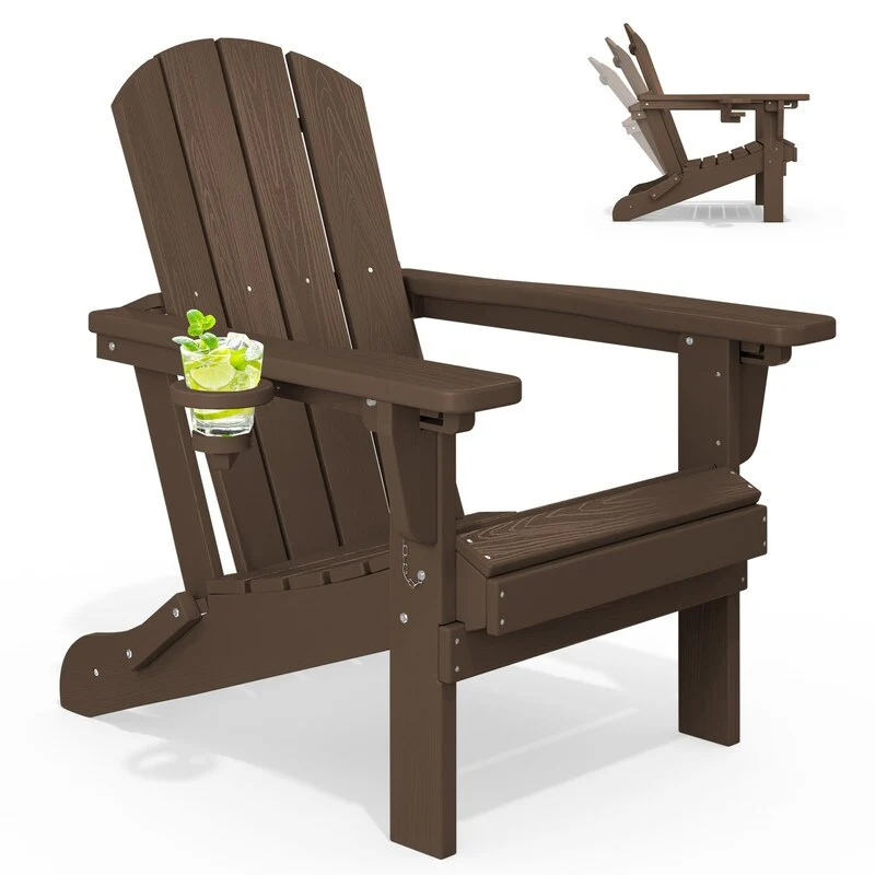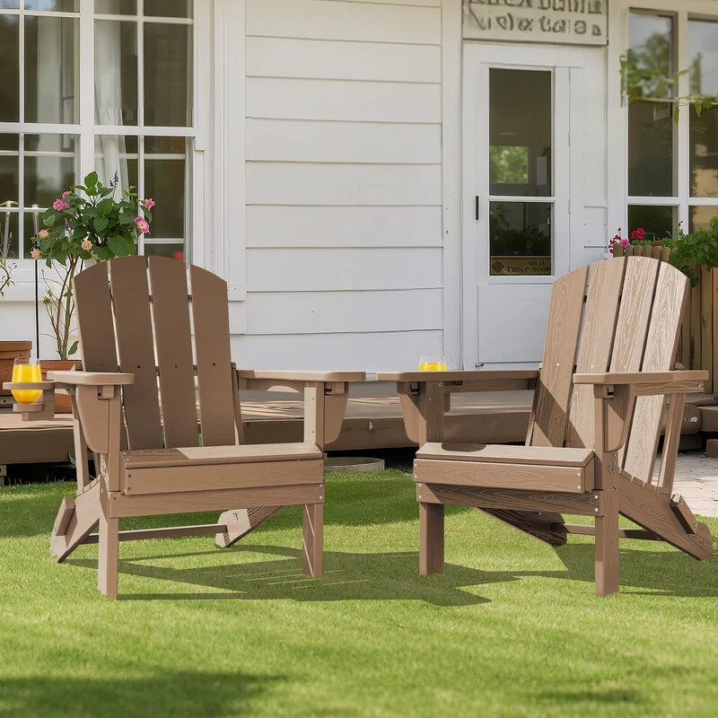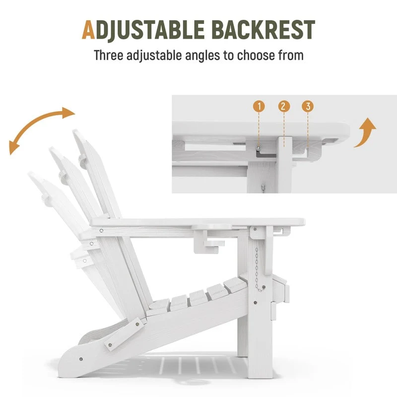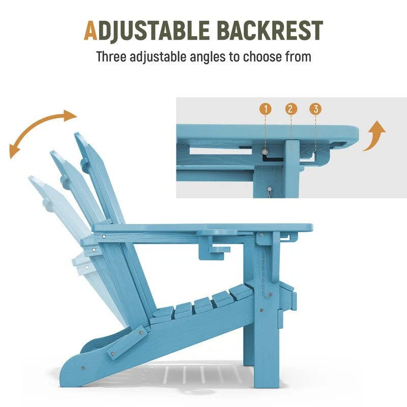 Add comfort and style to your outdoor space with this adjustable folding chair, crafted from durable, weather-resistant PE material. Designed with a natural wood grain texture, it offers the timeless appeal of wood without the upkeep. The 3-position reclining backrest allows for customized relaxation, while the wide armrests and contoured seat provide superior comfort.This chair folds easily for storage or transport, making it ideal for patios, gardens, balconies, beaches, and poolside lounging. Whether you're soaking up the sun or enjoying a quiet moment outdoors, this chair combines function, style, and convenience.
