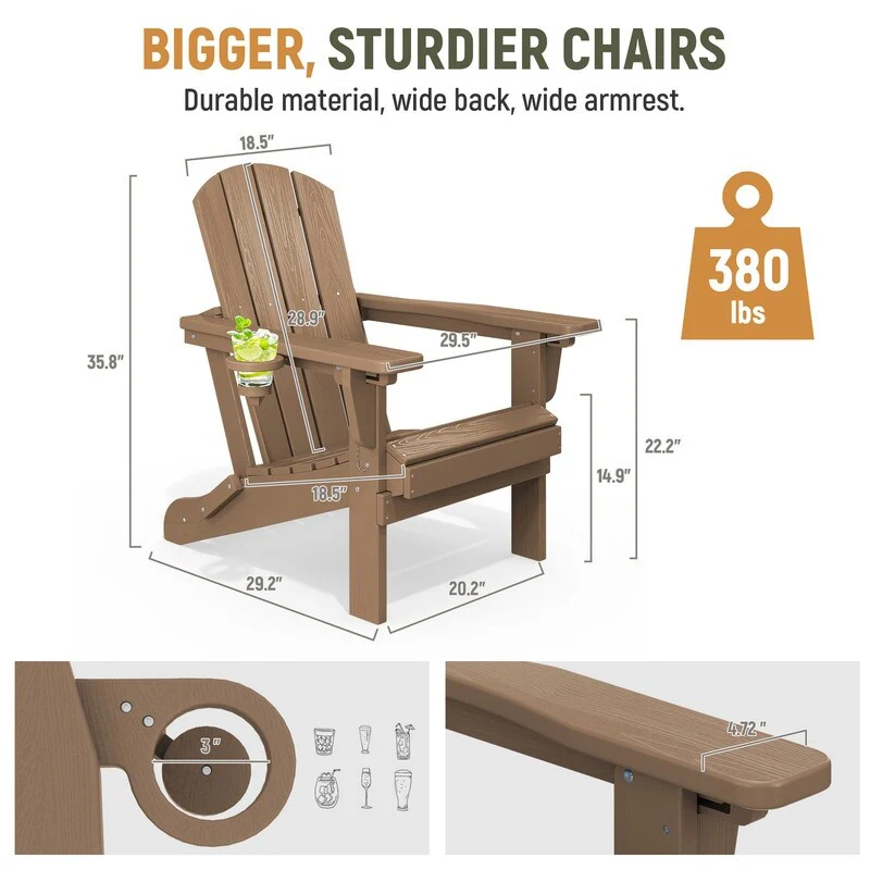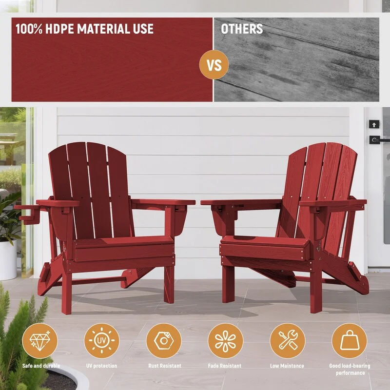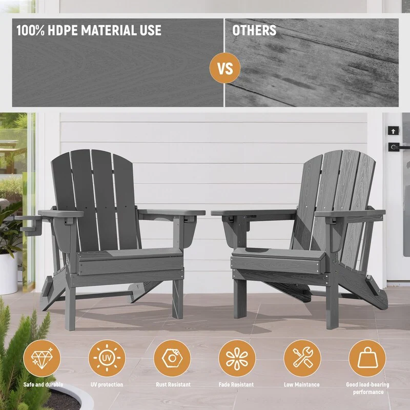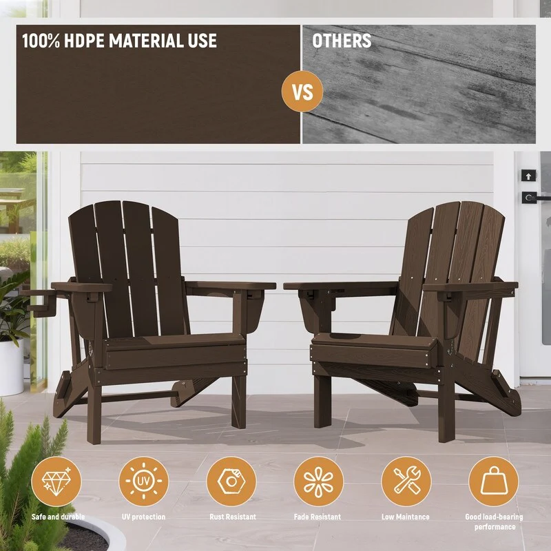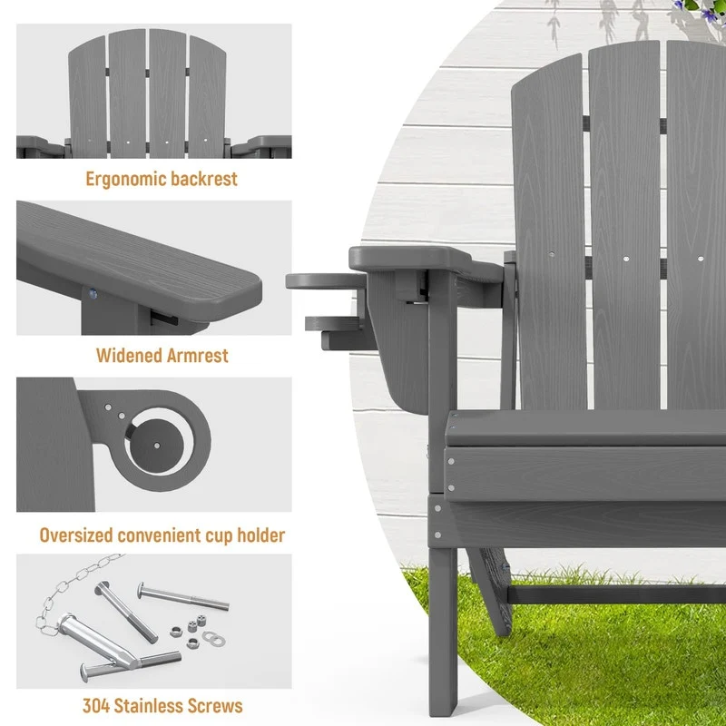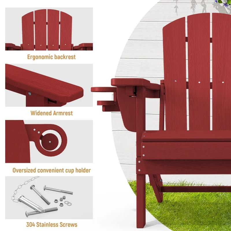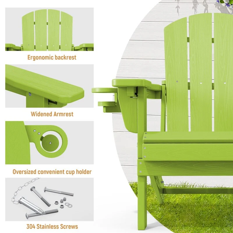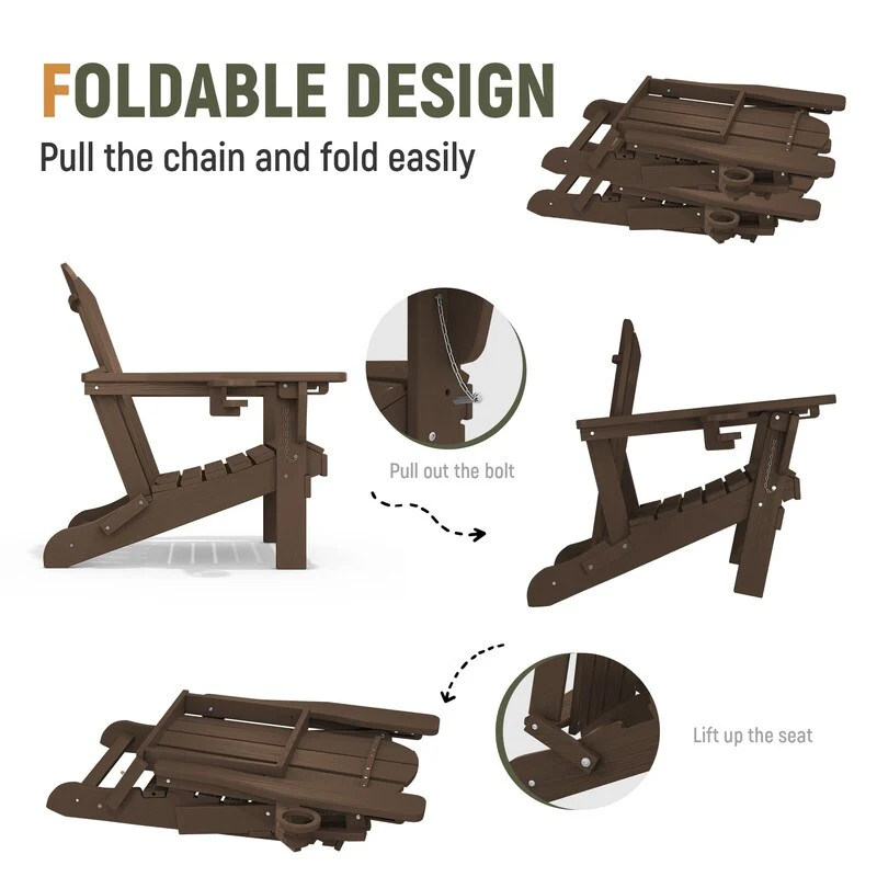 Add comfort and style to your outdoor space with this adjustable folding chair, crafted from durable, weather-resistant PE material. Designed with a natural wood grain texture, it offers the timeless appeal of wood without the upkeep. The 3-position reclining backrest allows for customized relaxation, while the wide armrests and contoured seat provide superior comfort.This chair folds easily for storage or transport, making it ideal for patios, gardens, balconies, beaches, and poolside lounging. Whether you're soaking up the sun or enjoying a quiet moment outdoors, this chair combines function, style, and convenience.