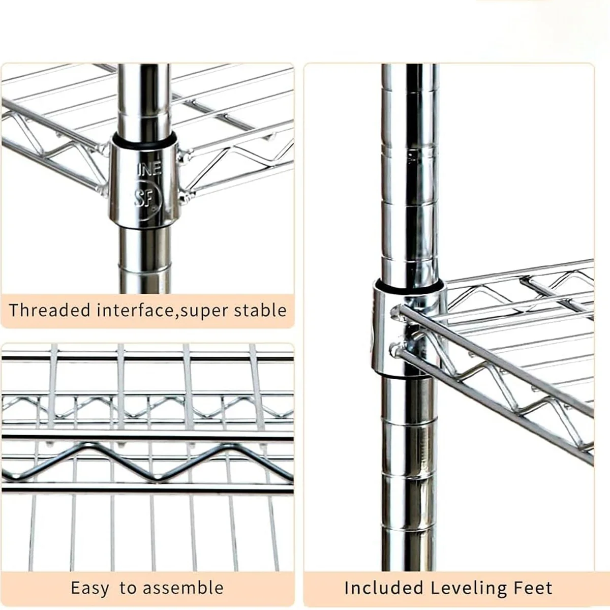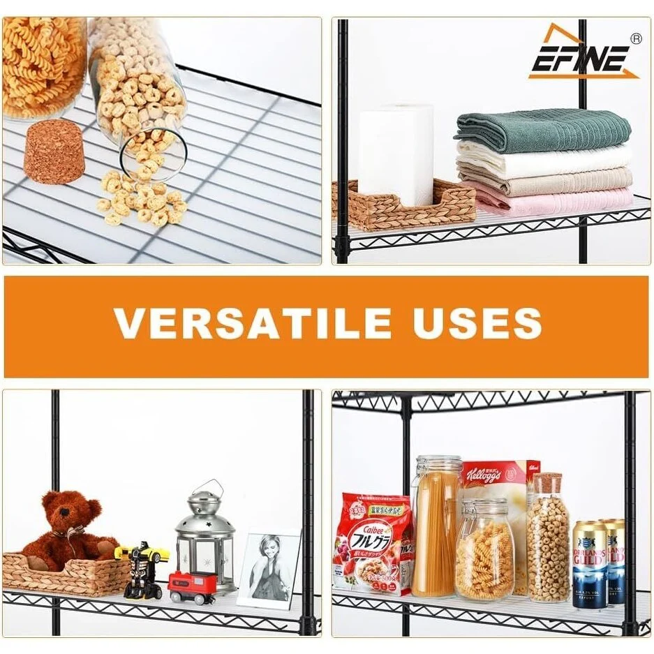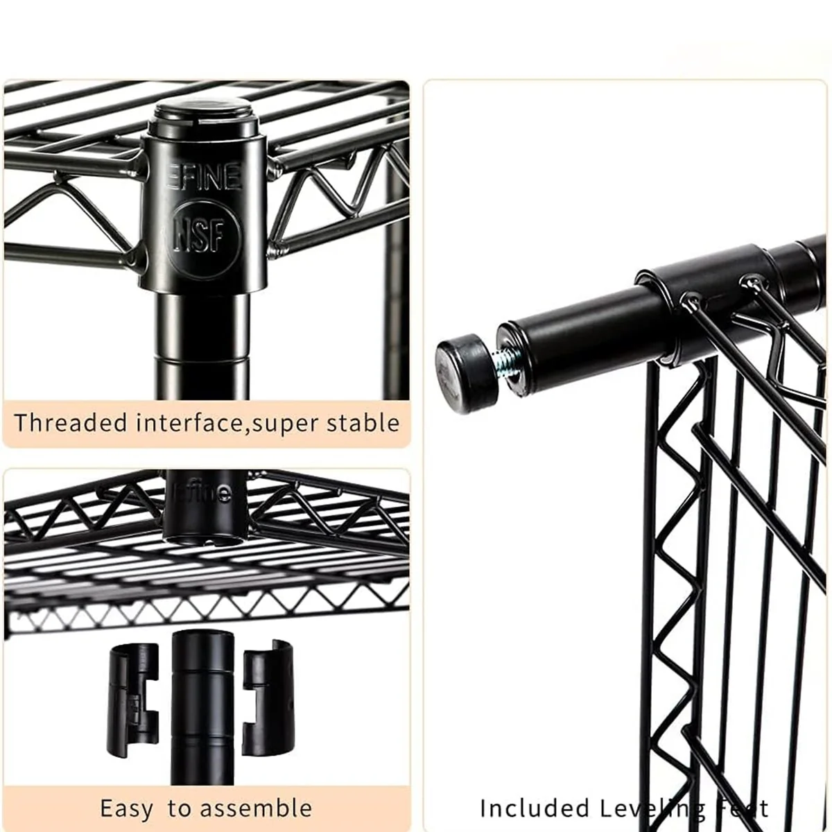 • Robust Carbon Steel Construction: Our shelving unit is made from heavy-duty carbon steel, offering 20% more density than standard wire racks. This results in a rust-resistant, more robust, and longer-lasting shelving solution.