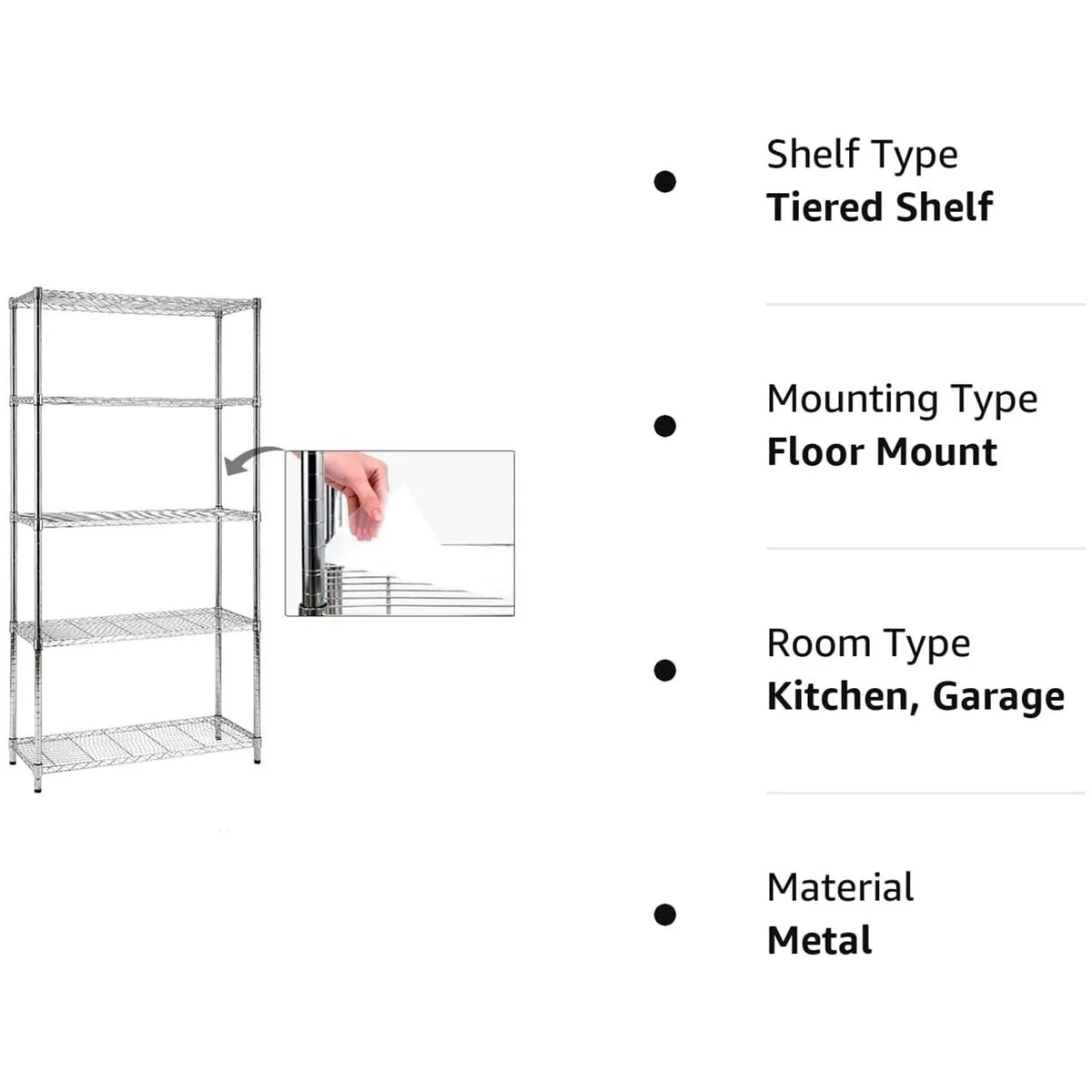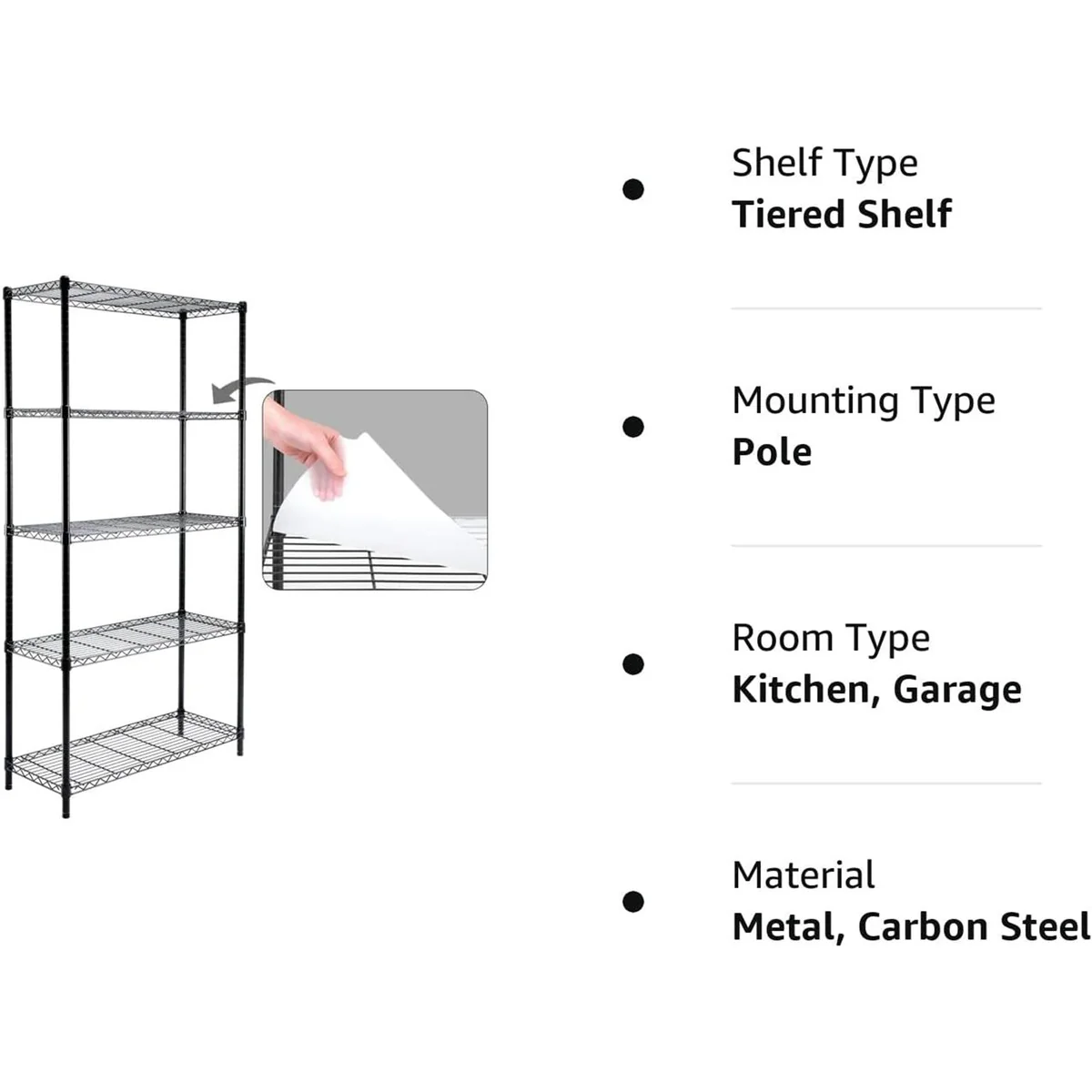 Discover the ultimate storage solution with our 5-Shelf Adjustable Shelving Unit, expertly crafted to meet all your organizational needs in the kitchen, garage, or pantry. Constructed with top-grade carbon steel, this unit is not just a storage space but a promise of durability and reliability.