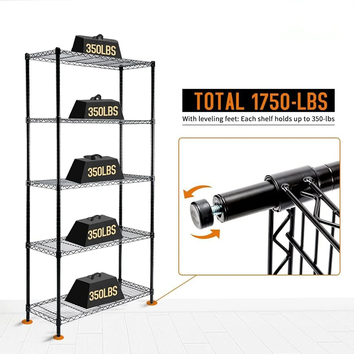 • Impressive Weight Capacity: Each of the five shelves can hold up to 150 lbs, making a total capacity of 750 lbs. The option to add extra shelves provides even more space for your storage requirements.