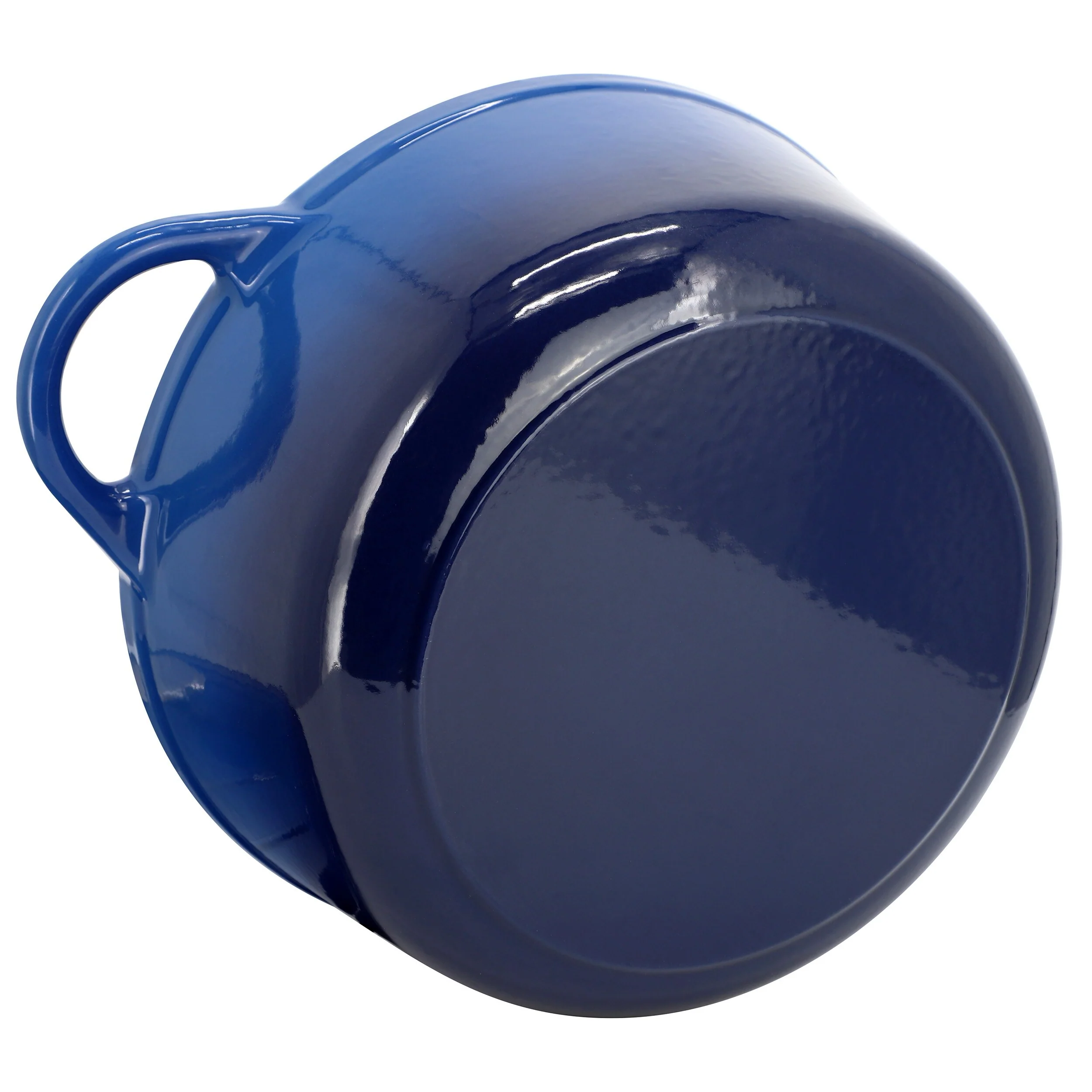 Introducing the MegaChef 6.35 Quart Round Enameled Cast Iron Dutch Oven, your ultimate kitchen companion for exquisite culinary creations. Crafted from durable cast iron and coated with a sleek enameled finish in a charming dark blue hue, this Dutch oven combines functionality with elegance.With its generous 11-inch diameter and spacious 6.35-quart capacity, it's perfect for simmering hearty stews, braising meats to tender perfection, baking artisanal breads, and more. The enameled coating not only enhances durability but also facilitates easy cleaning and maintenance.Equipped with a self-basting lid, the MegaChef Dutch oven ensures flavors are locked in and dishes remain moist and succulent. Its compatibility with induction cook-tops makes it versatile for various cooking surfaces, while being oven-safe up to 500 degrees Fahrenheit expands its utility for baking and roasting.For care, hand washing is recommended to preserve the integrity of the enameled coating and ensure long-lasting performance. Elevate your cooking experience with the MegaChef 6.35 Quart Round Enameled Cast Iron Dutch Oven - where functionality meets style in every delicious dish you create. Item Dimensions: 14.75" x 11.00" x 5.00"Item Weight: 13.11lbs