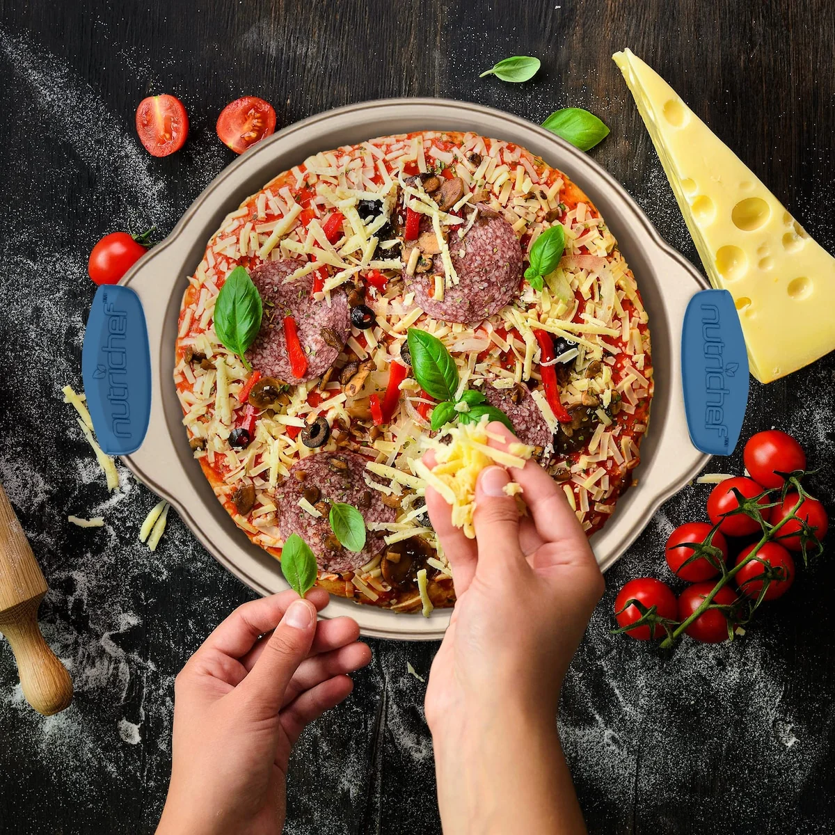 HEATPROOF SILICONE HANDLES:The commercial grade restaurant quality kitchen bakeware features blue silicone handles to prevent accidental burns. Also stain-resistant, easy to clean & dishwasher safe but hand washing is recommended to extend pan life