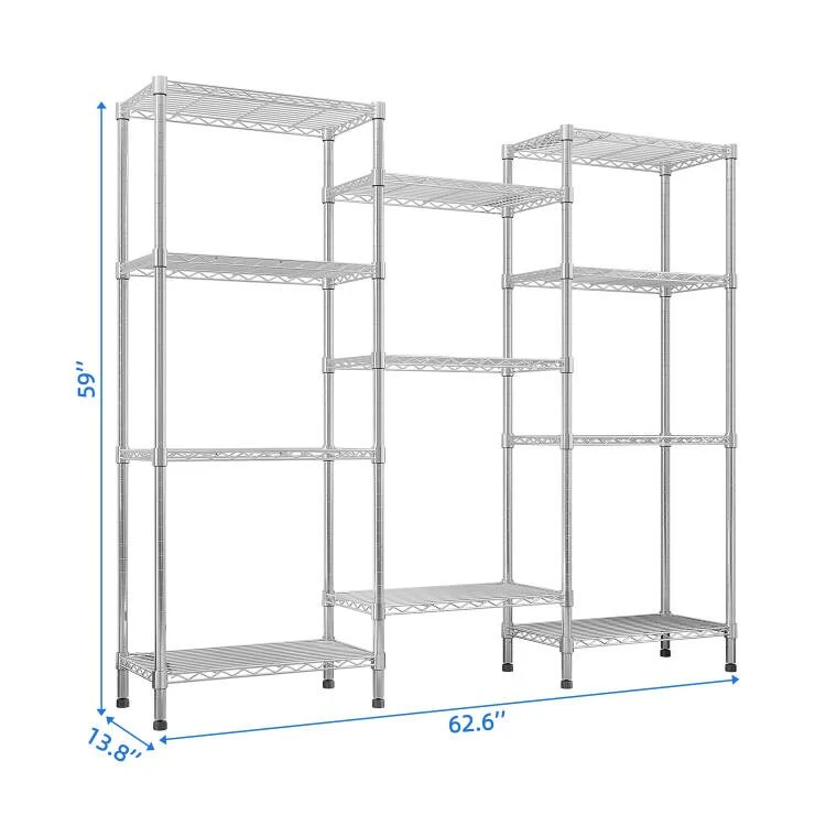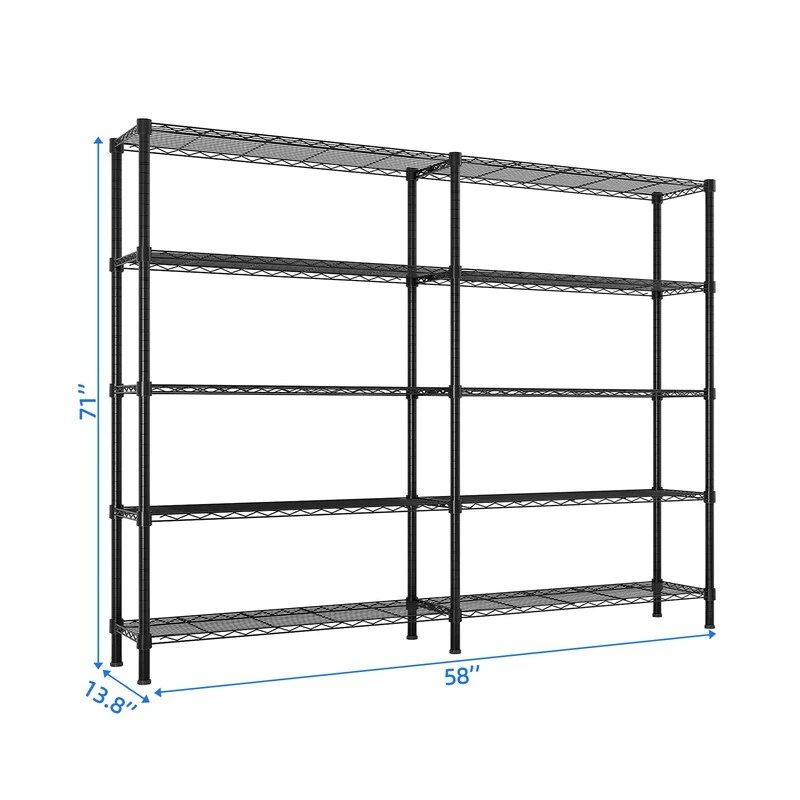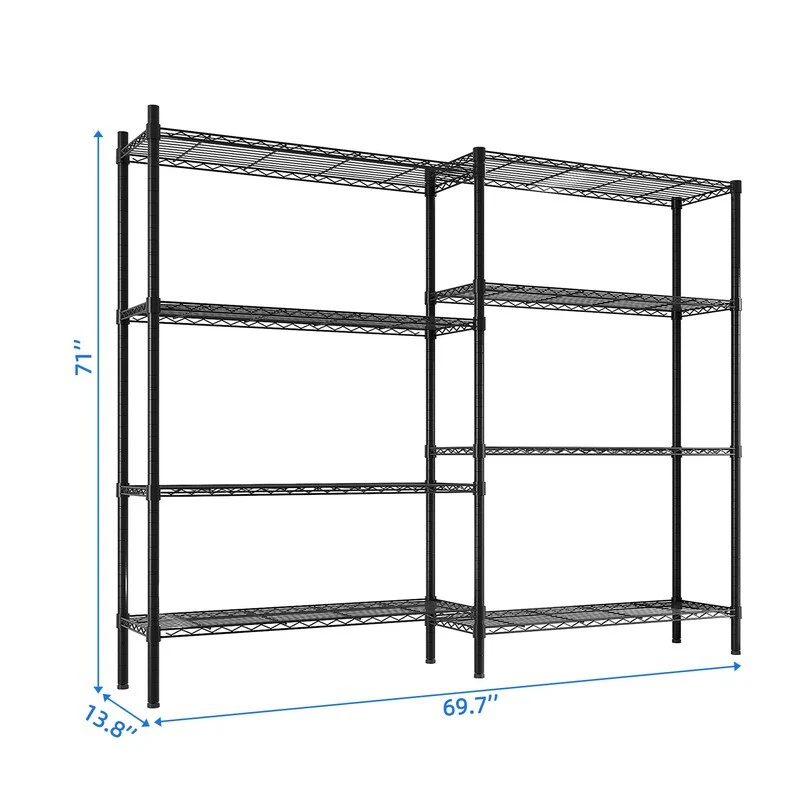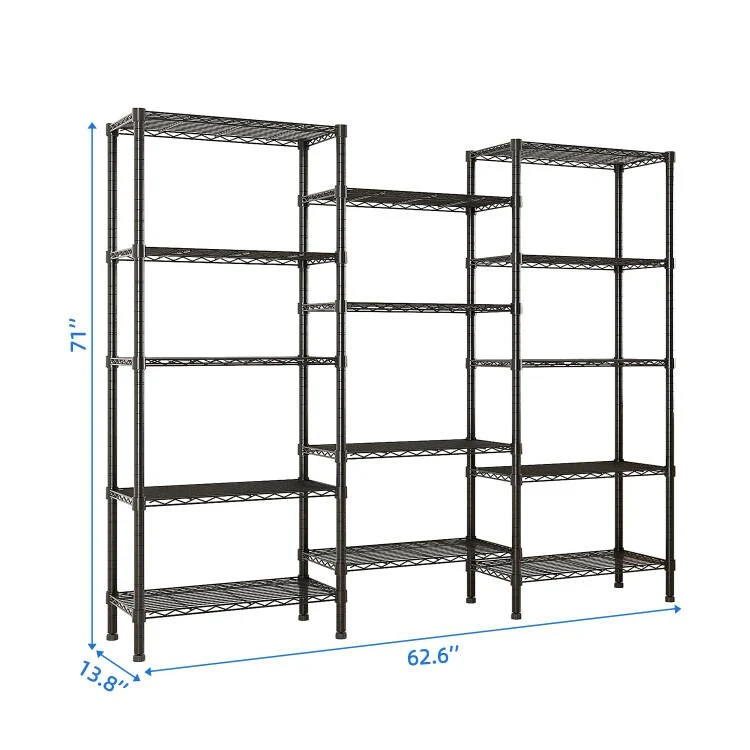 【62.9''W Monster Size Wire Shelving Unit】The 62.9 "W storage rack is triple the size of the market shelves, which is truly a blessing for storage enthusiasts to easily meet more storage needs. And it can be suitable for commercial grade heavy-duty shelving needs in a wide range of scenarios, such as living rooms, kitchens, garages, and even supermarkets.