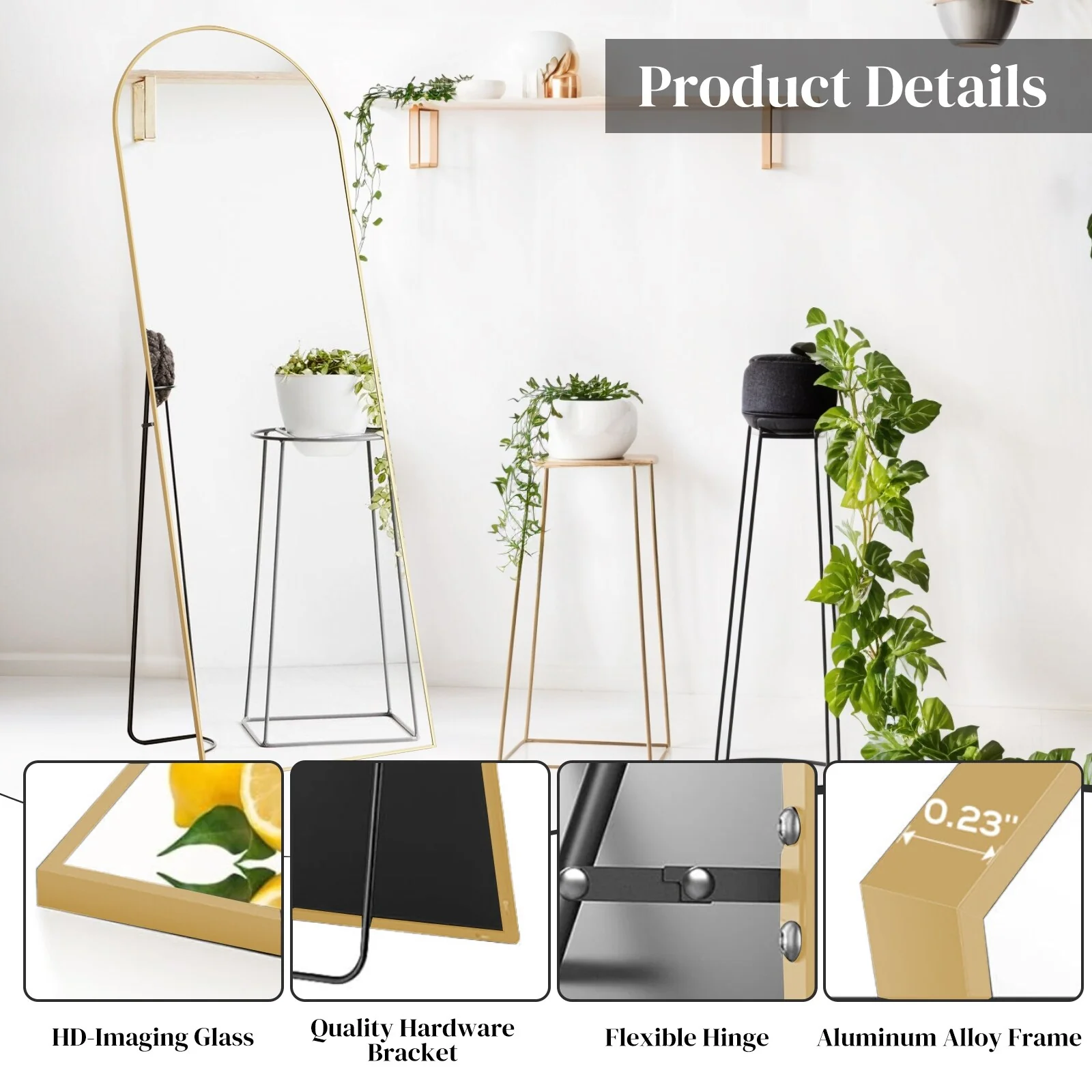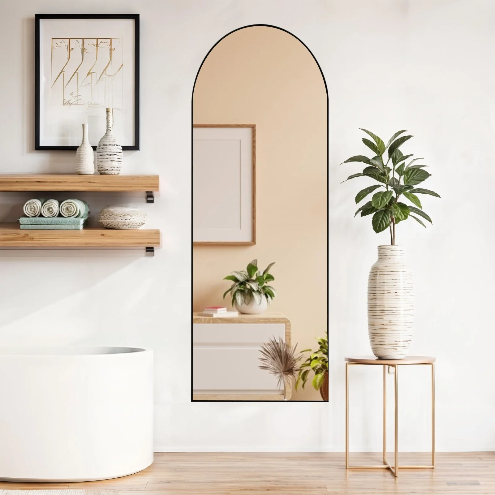 • 64x21 Inch Full Length Mirror Standing or Leaning Wall Mirror, Arched Full Body Mirror for Bedroom, Living Room, or Cloakroom