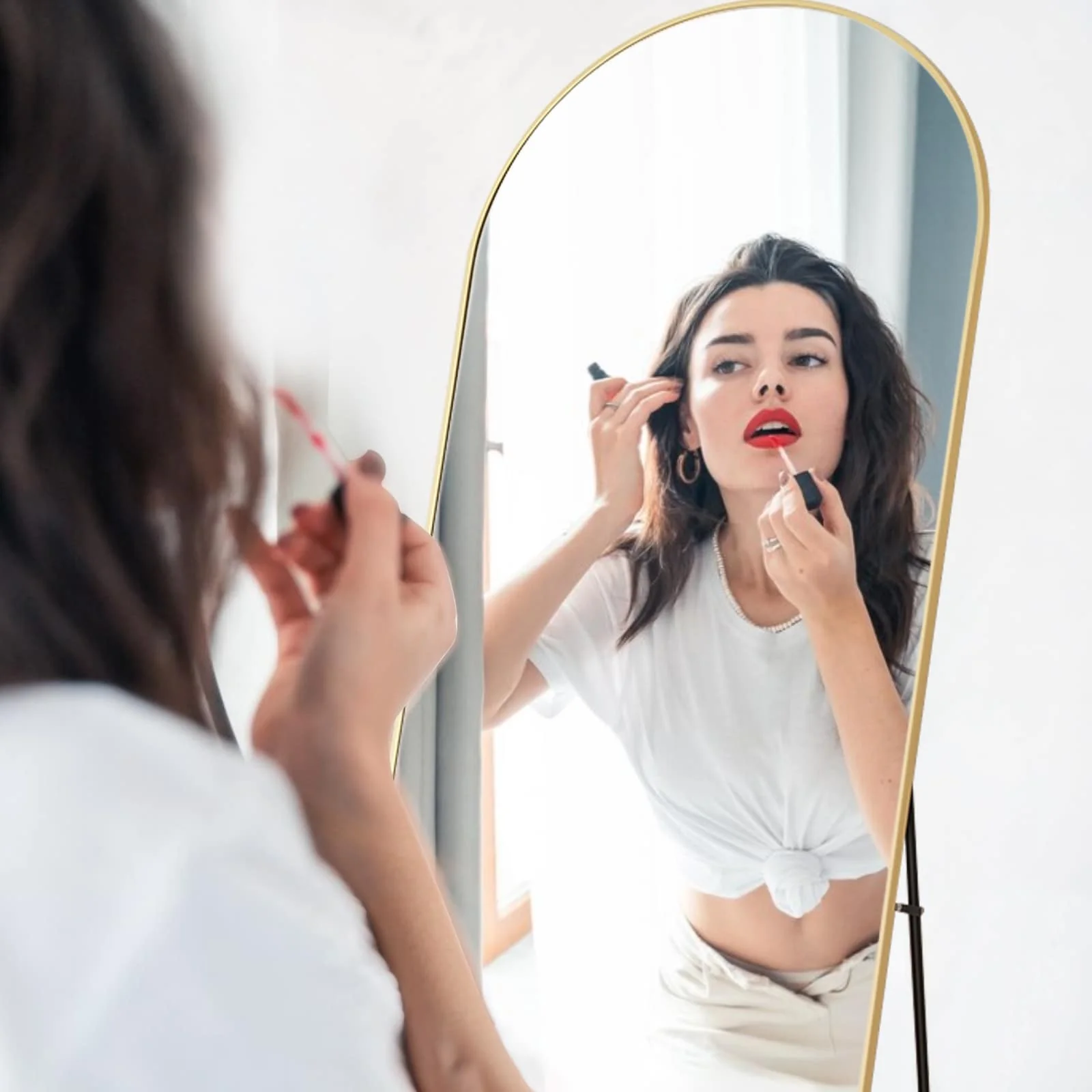 • VERSATILE AND SPACE-SAVING: This mirror requires no assembly and comes with a standing holder, allowing it to be placed anywhere in your home. It can also be leaned against a wall or vertically hung for space-saving purposes. It is a versatile piece suitable for various settings such as bedrooms, living rooms, cloakrooms, home gyms, corridors, and clothing shops.