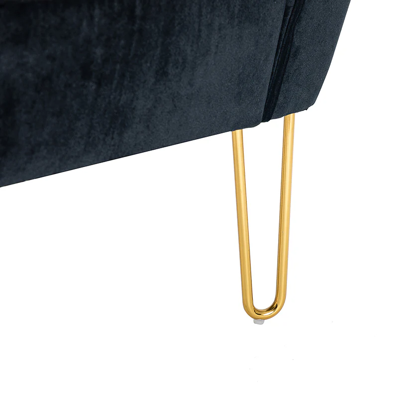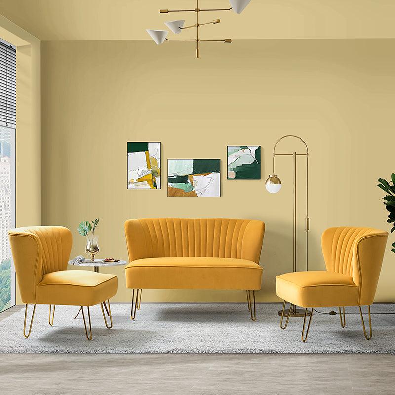 If you're looking to make a statement, this three piece living room set has it all. Its tufted design and channel back will be the perfect centerpiece for hours of family gatherings or entertainment fun. And with delicate U-shaped legs, you'll have even more reasons to linger! Refresh your space today with an inviting look that's hard not to love.