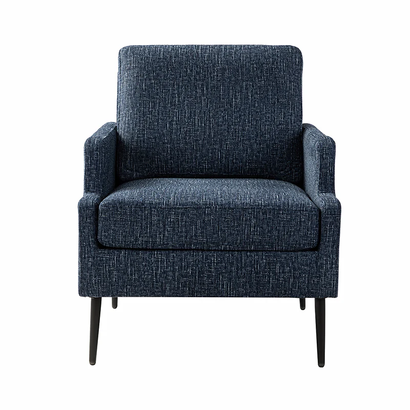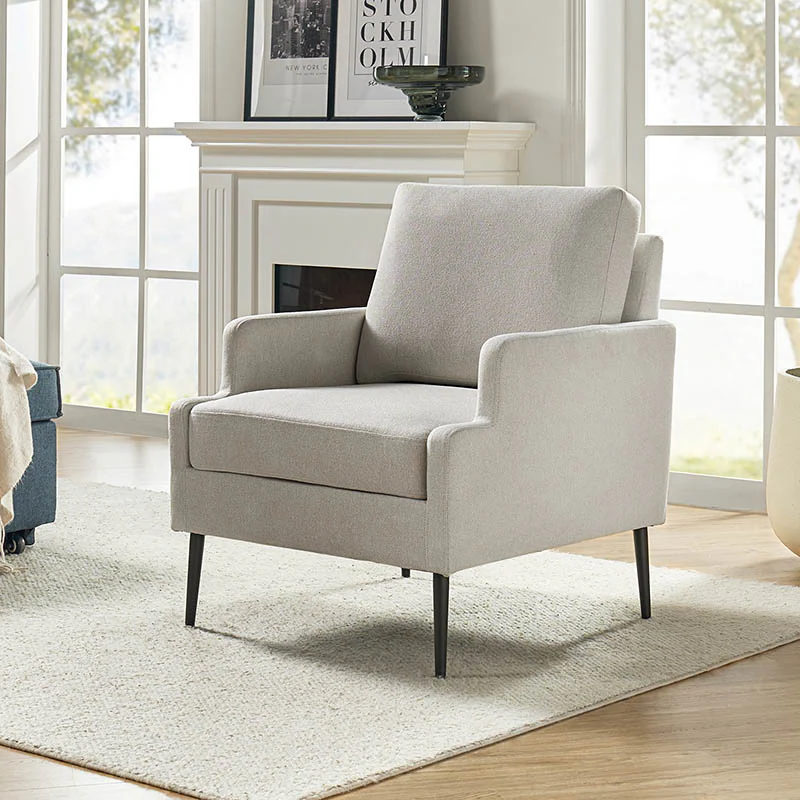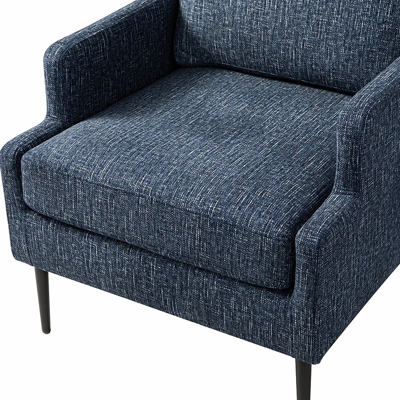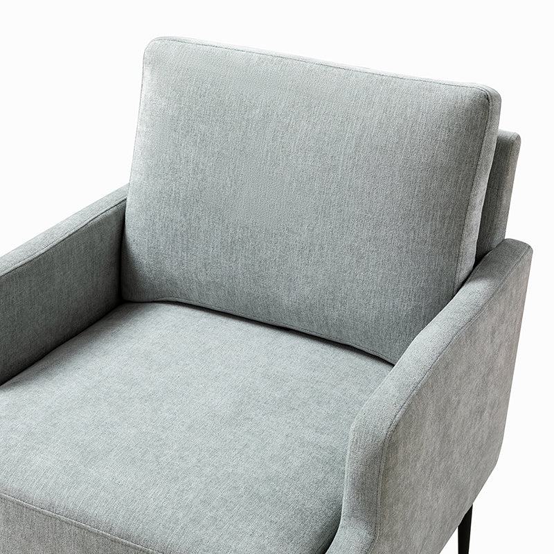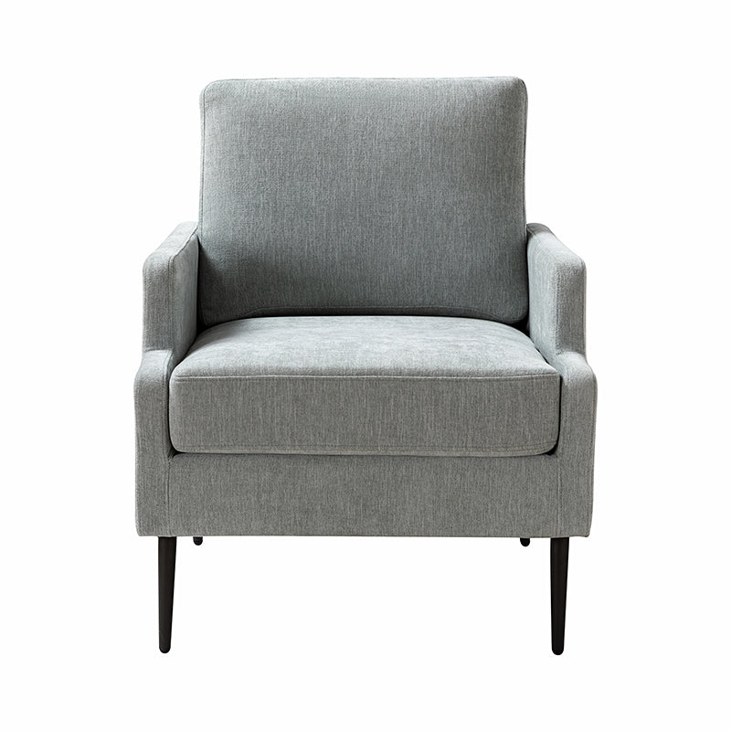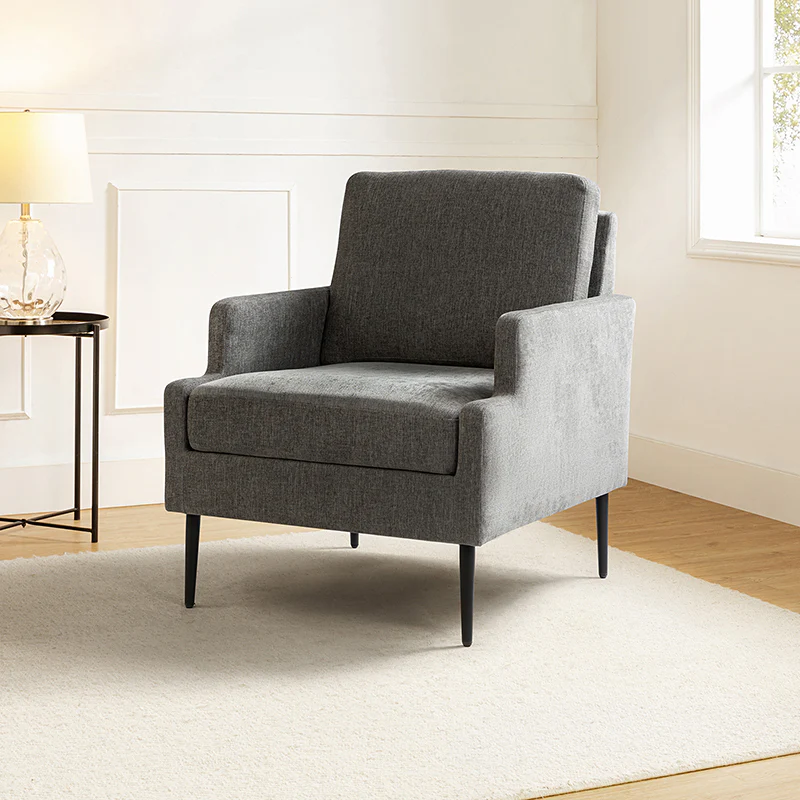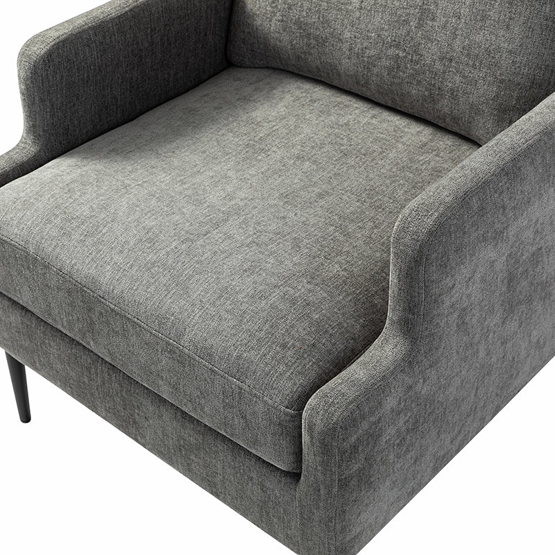 This accent chair boasts a mid-century modern design with thin, notched armrests that offer sturdy support and balance. The plush chenille fabric upholstery is both soft to the touch and durable. Featuring a sleek silhouette, the accent chair's tapered metal legs provide support and a simple, modern look. With its slightly larger seat dimensions, this chair offers more freedom and flexibility of movement, allowing you to find the perfect position that suits your comfort preferences. Equipped with a comfy seat and backrest, it's perfect for long periods of sitting. Easy to assemble, the exquisite contemporary accent chair is a perfect addition to the living room, bedroom, or office, offering a unique design to round out various home decor.