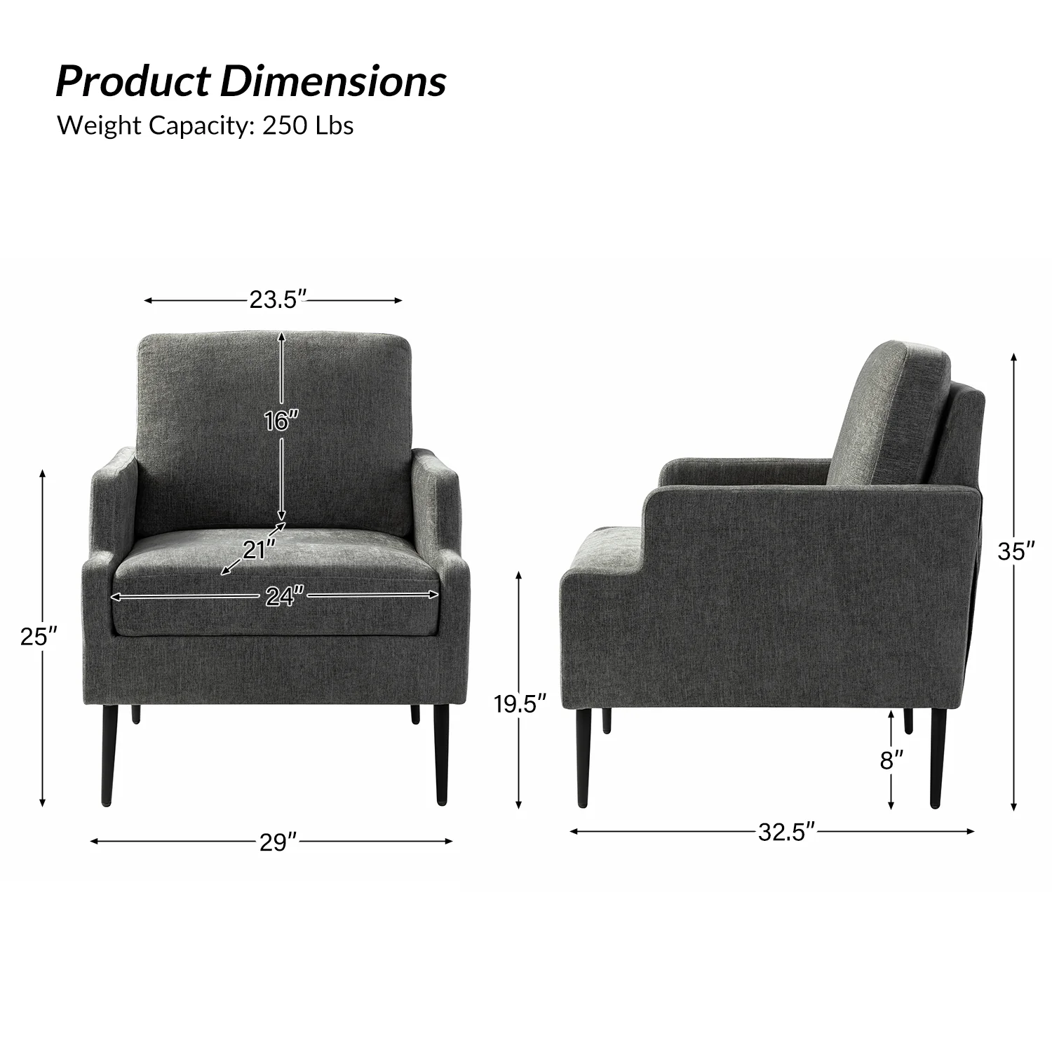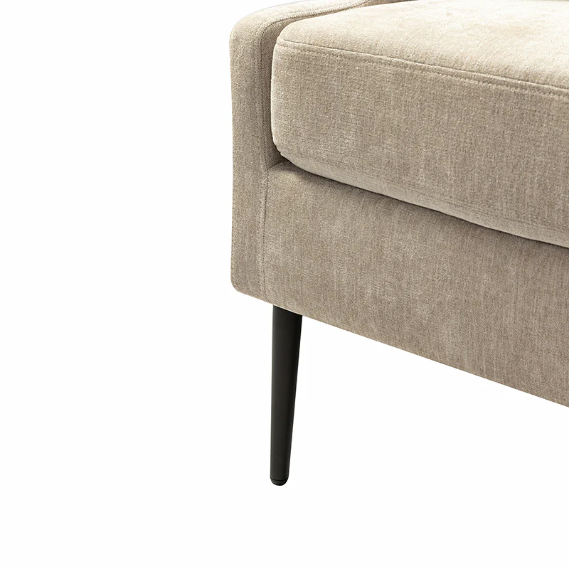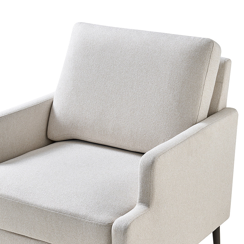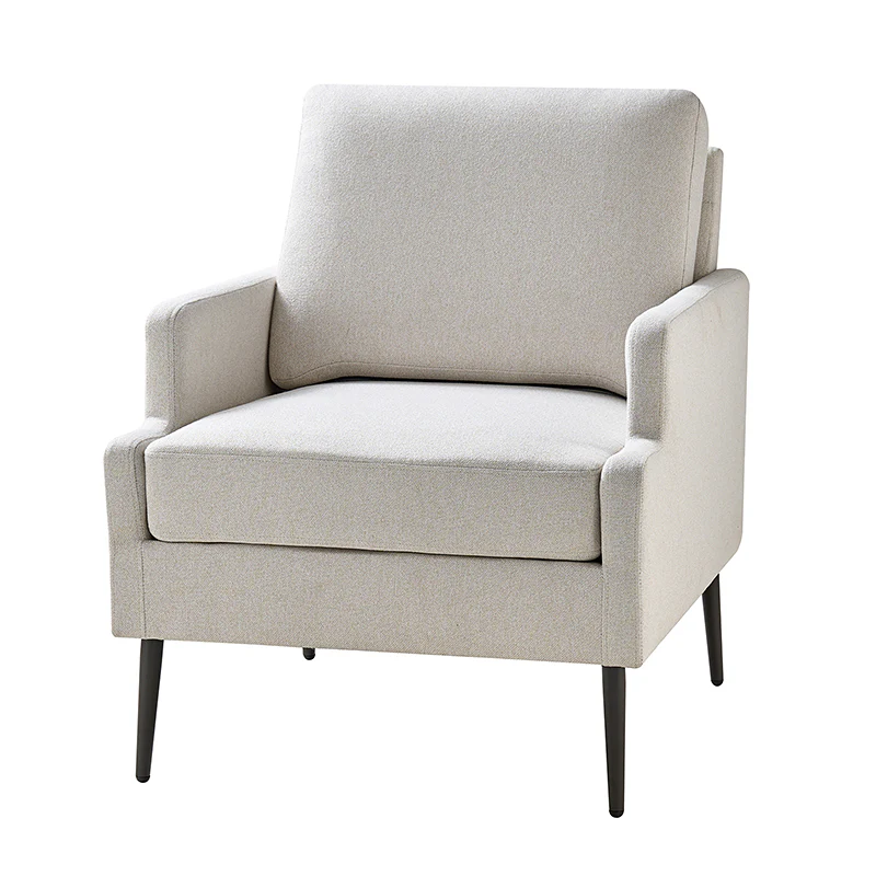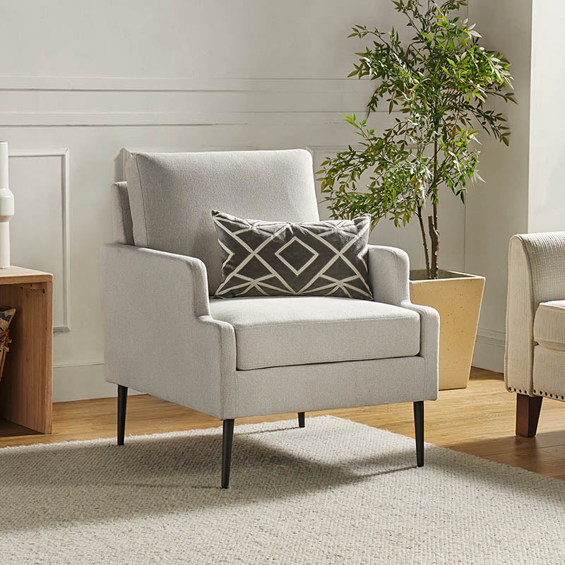 This accent chair boasts a mid-century modern design with thin, notched armrests that offer sturdy support and balance. The plush chenille fabric upholstery is both soft to the touch and durable. Featuring a sleek silhouette, the accent chair's tapered metal legs provide support and a simple, modern look. With its slightly larger seat dimensions, this chair offers more freedom and flexibility of movement, allowing you to find the perfect position that suits your comfort preferences. Equipped with a comfy seat and backrest, it's perfect for long periods of sitting. Easy to assemble, the exquisite contemporary accent chair is a perfect addition to the living room, bedroom, or office, offering a unique design to round out various home decor.