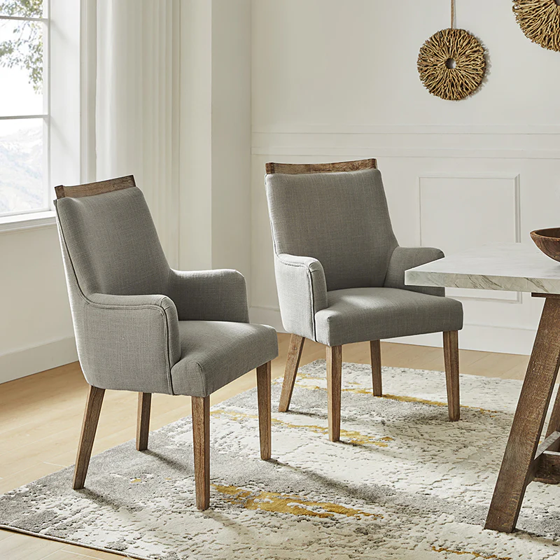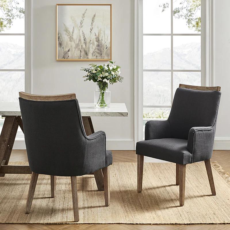 Indulge in the allure of the farmhouse dining chair set of 2 that beautifully embodies the concept of "Natural Variation". Each piece is a testament to the artistry of the nature, showcasing a one-of-a-kind wood grain color palette shaped by unique factors. No two chairs share the same intricate finish, imbuing your space with individuality through distinctive solid wood legs and organic variations. Elevating its charm, the dining chair set of 2 embraces the intentional elegance of "Purposeful Distressing." Through masterful wood scoring and rub-through techniques, it emanates a gracefully weathered aesthetic. Experience the fusion of the beauty of the nature and deliberate craftsmanship as this dining chair of 2 becomes a captivating focal point, adding both rustic charm and unmatched personality to your environment.