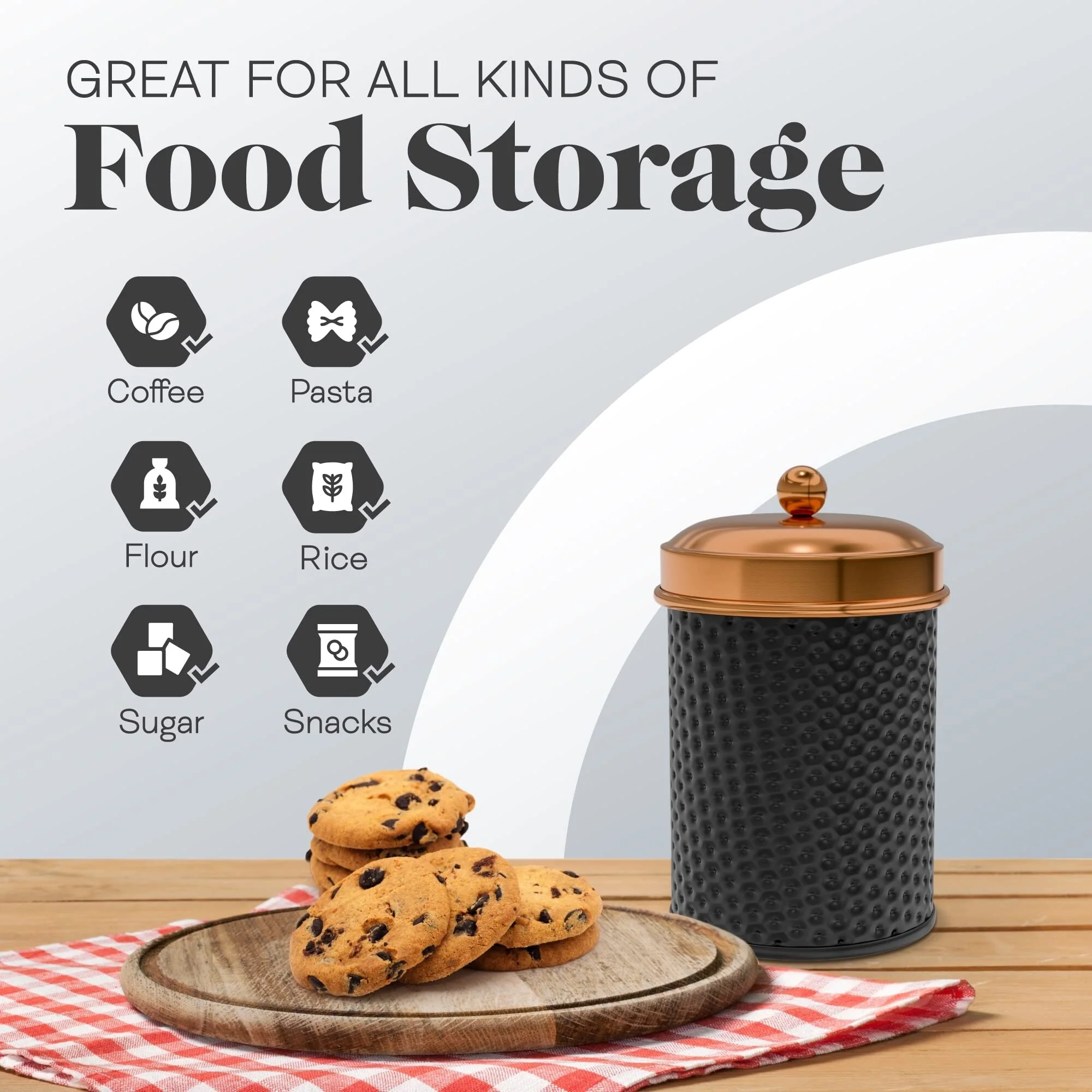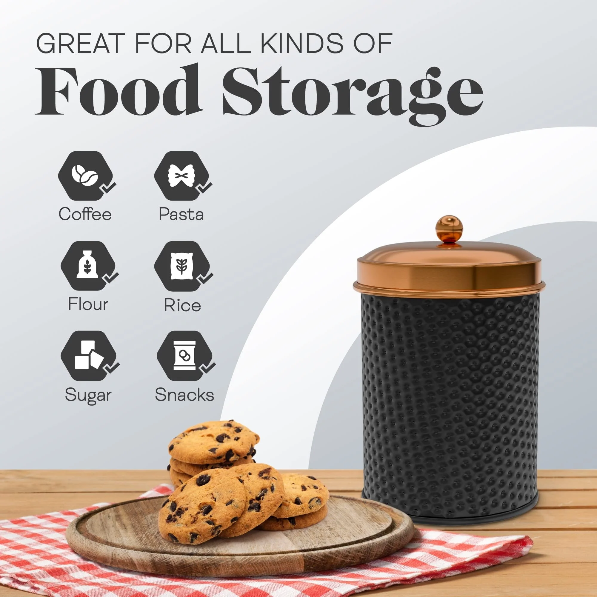 Amici Home Ashby Canister Set for Kitchen Counter, Food Storage Containers with Lids, Kitchen Canisters with Vintage Design, Kitchen Canister with Lid | Black/Copper Set of 2 - New