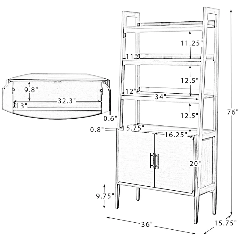 This clean-lined ladder bookcase adds plenty of function and mid-century modern style to your living room, bedroom or study. The frame of this bookcase is made of high-quality wood and supported by solid wood legs, which could last for years of use. This bookcase is a mix of open and closed storage. Three open shelves organize books, photos or decorative items, while a spacious shelf cabinet keeps clutter out of sight and gives your bookshelf a clean and tidy look. This bookcase allows multiple units to combine for expanded storage. Fill this creative bookcase with your favorites! Choose the best bookcase for your books, CDs, magazines and collectibles!