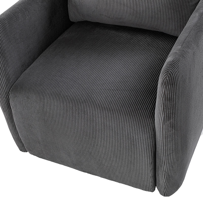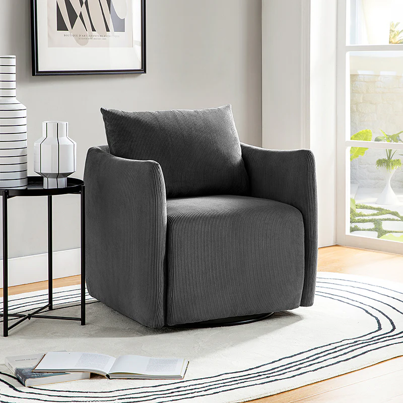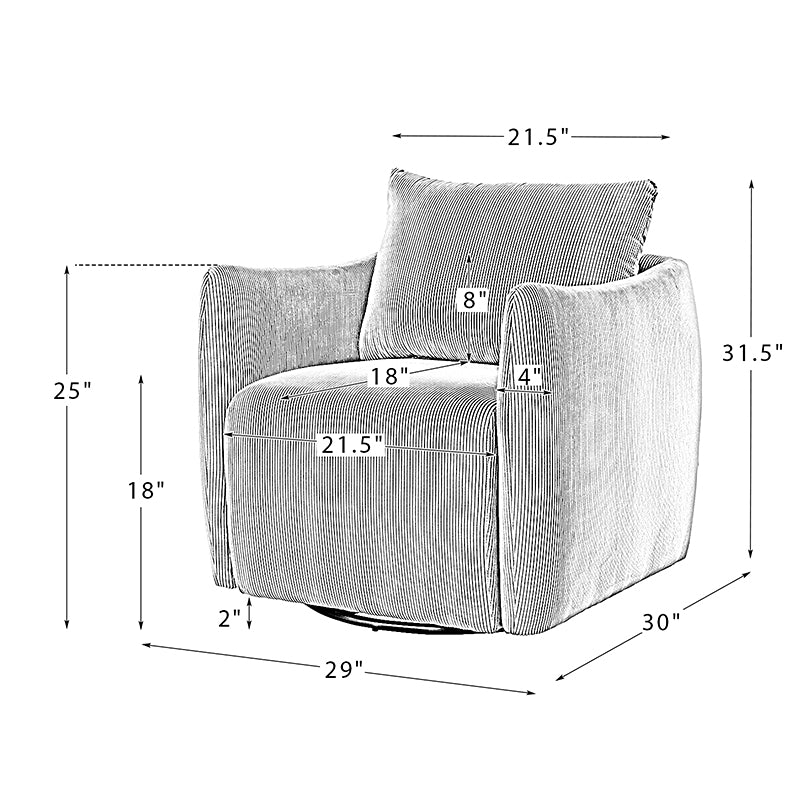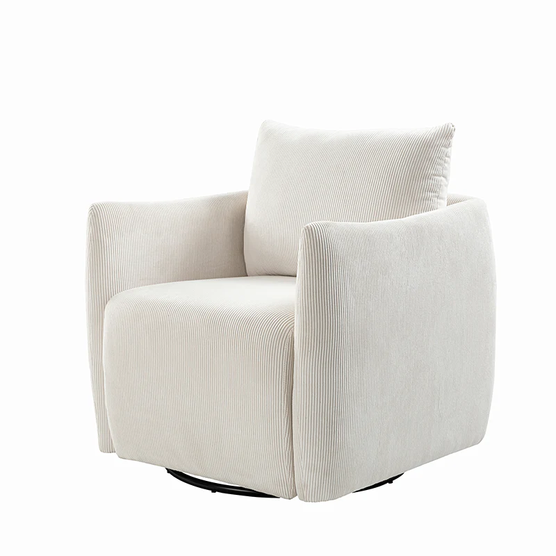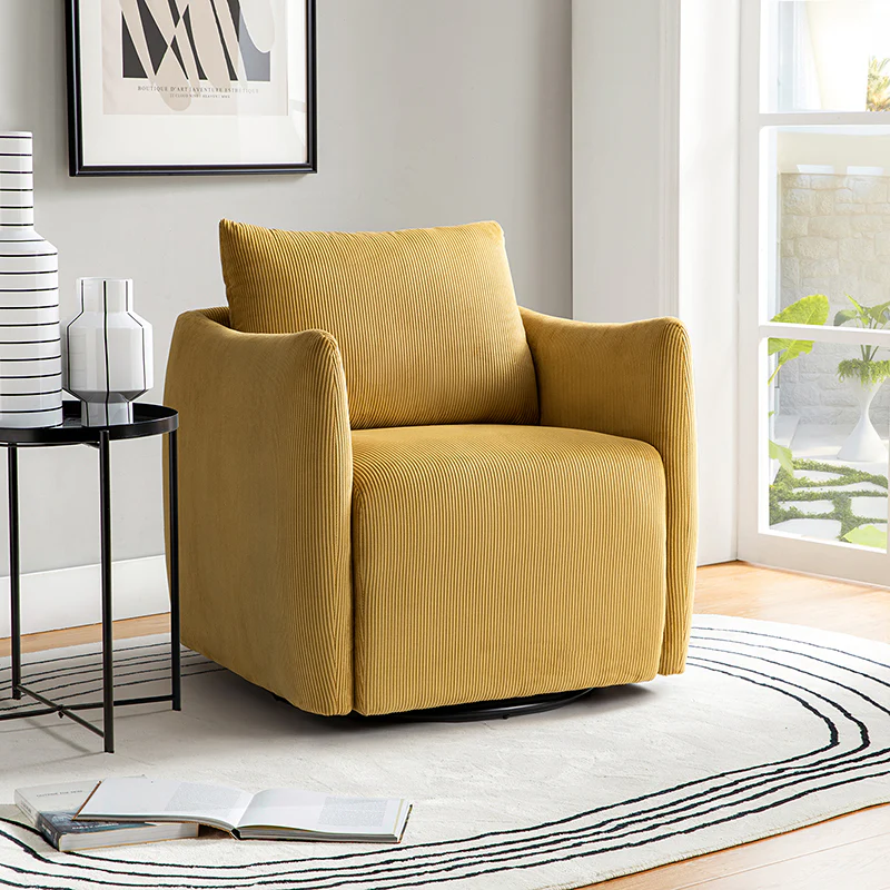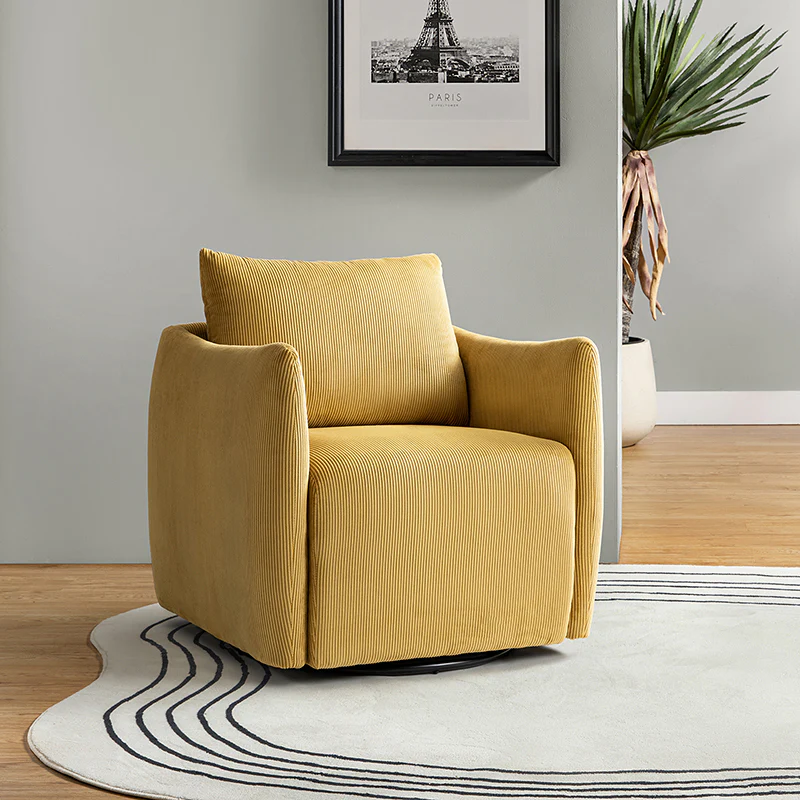 Introducing the 360-degree rotatable modern swivel chair, upholstered in luxurious corduroy fabric. Its smooth rotation allows you to effortlessly find the perfect angle for conversing with your loved ones. Not limited to socializing, this versatile chair is also ideal for enjoying movies, sipping coffee, or simply unwinding. With its ability to seamlessly blend into any home decor style, be it Italian contemporary, contemporary glam, ultra-modern, Scandinavian style, or classic Boho, it adds a touch of elegance to any space. The chair features a thick cushion, ensuring a comfortable seating experience, while the reversible and detachable backrest cushion, made with washable fabric, guarantees easy cleaning. Simply unbox and enjoy its endless possibilities in multiple scenarios.