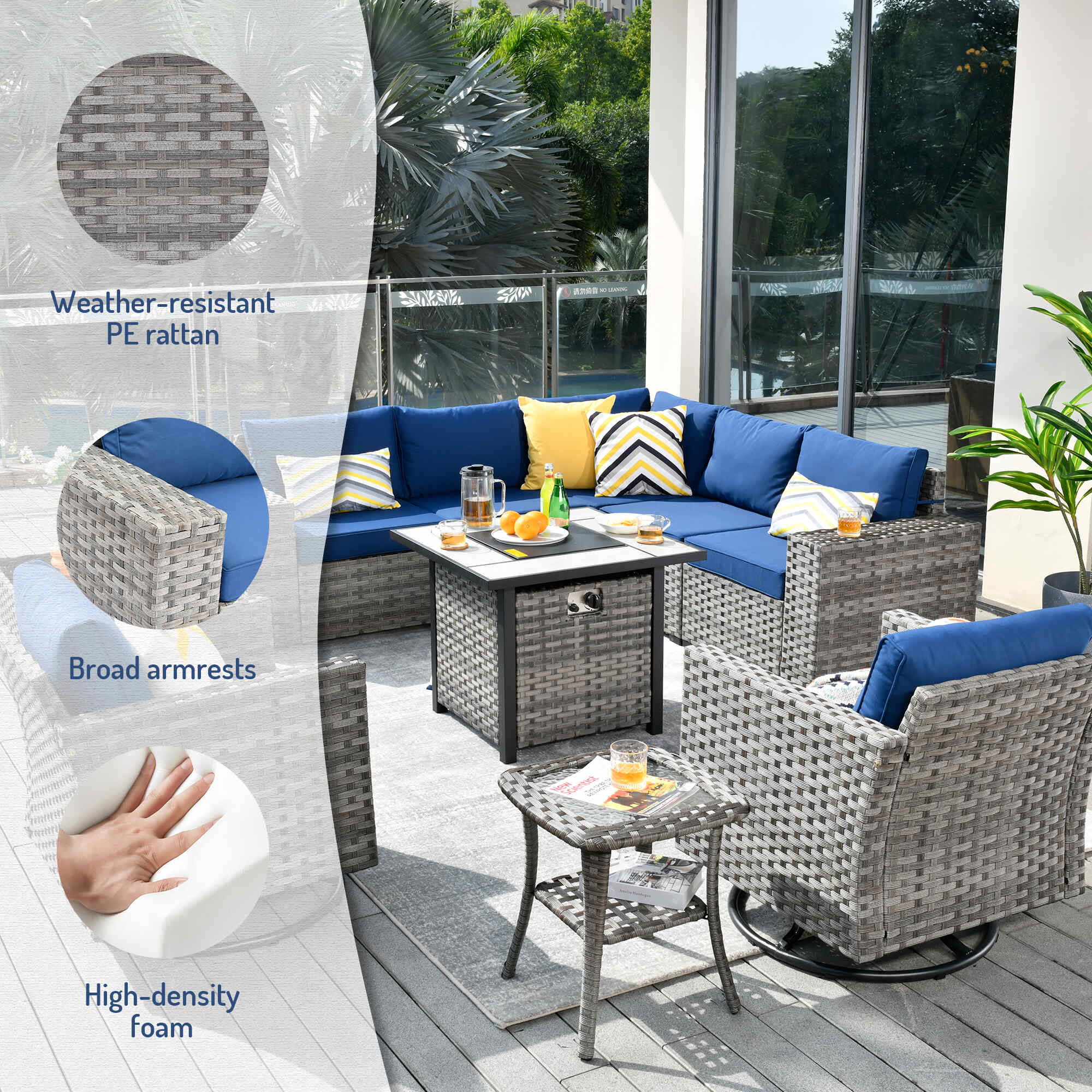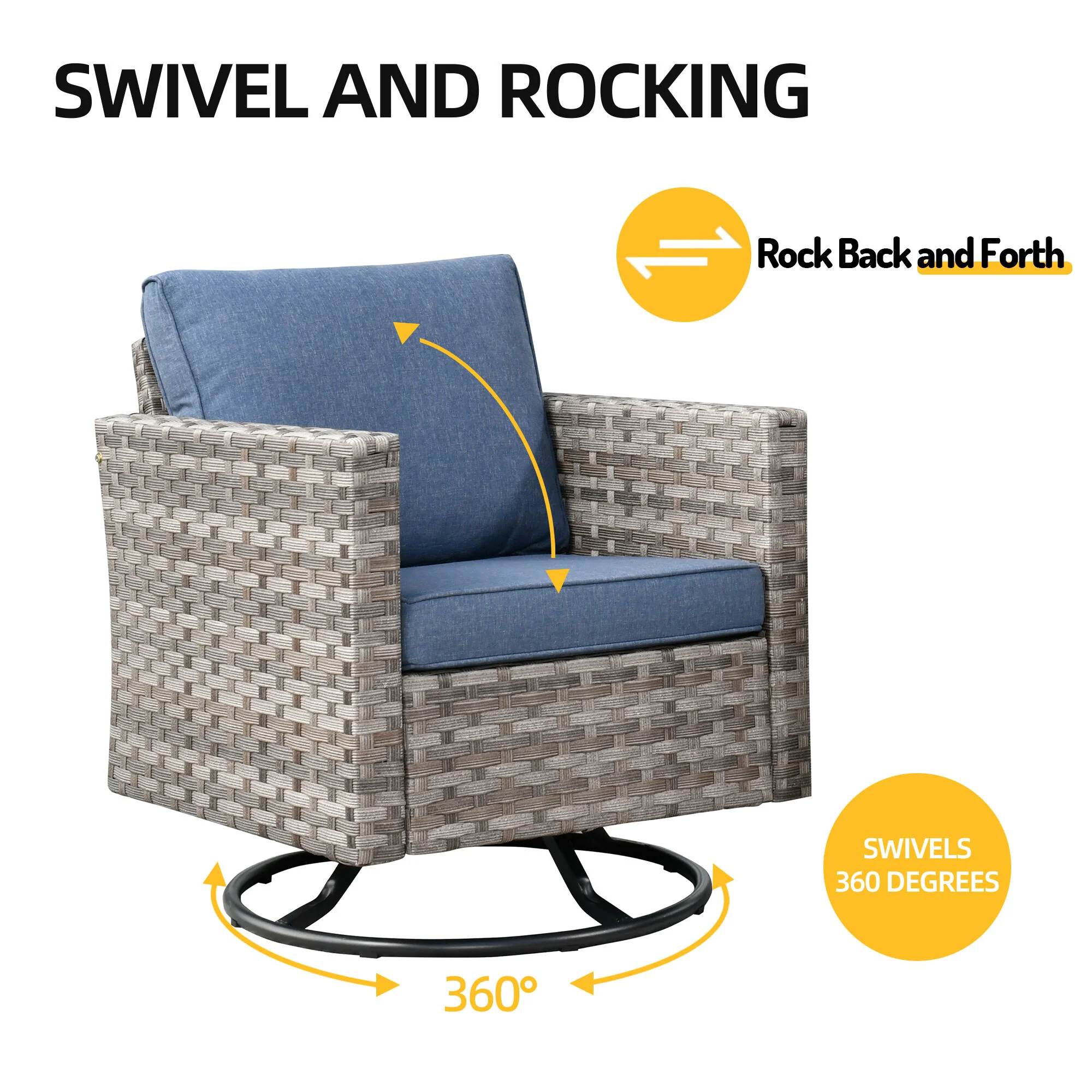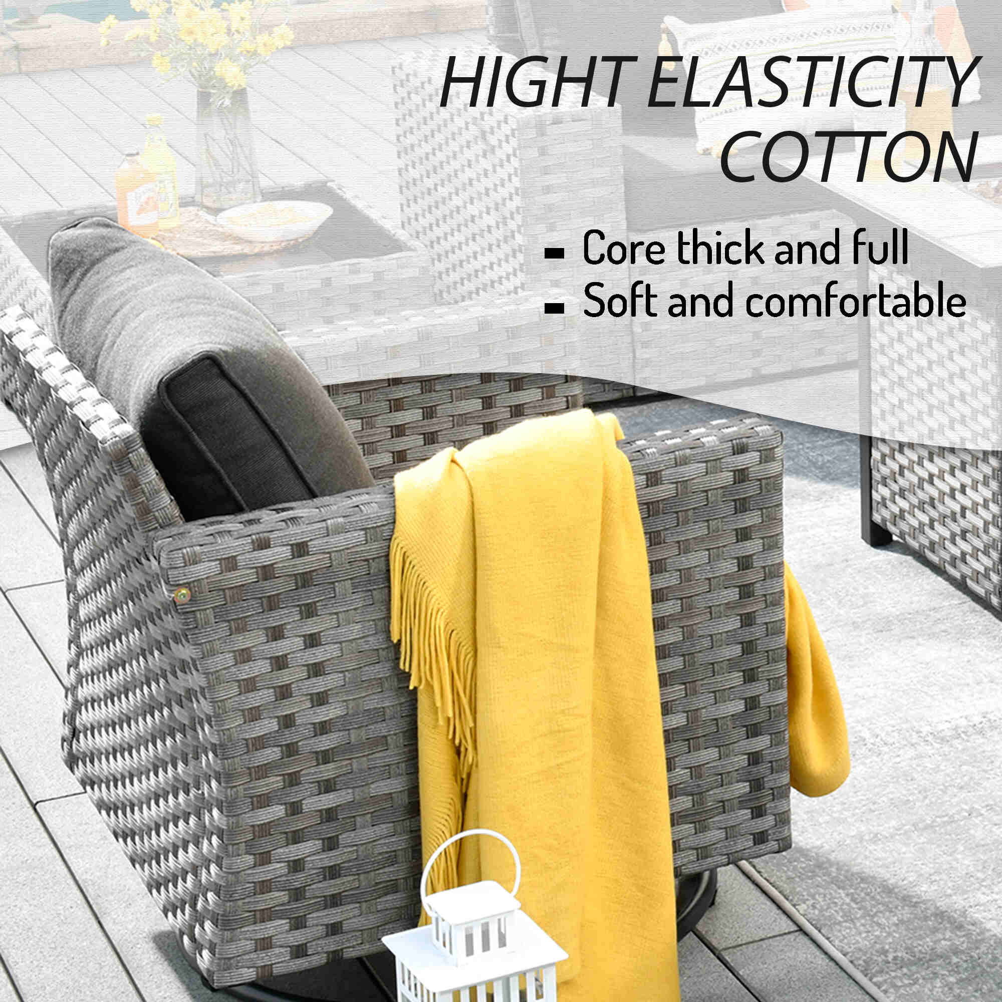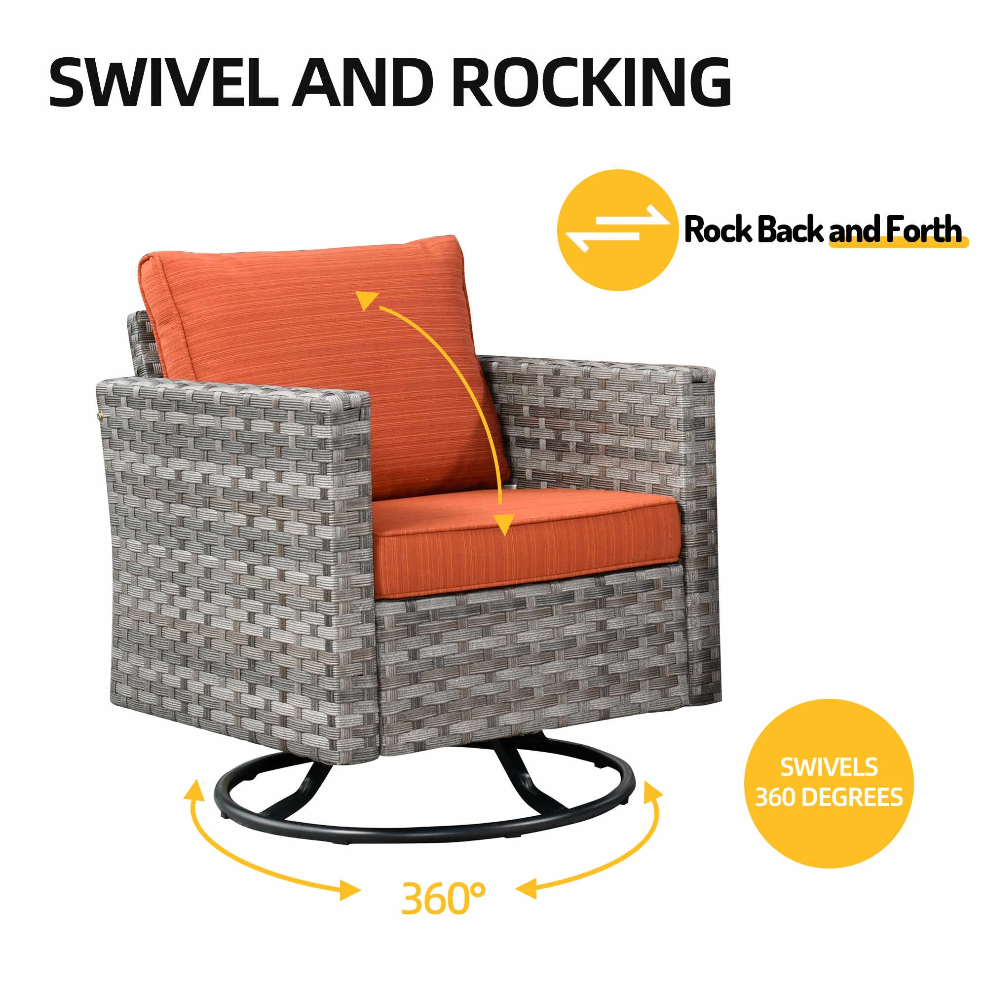 Premium Materials: Enjoy the durability of high-quality fabric with unmatched UV protection, ensuring rapid drying after rain. The handwoven wicker and high-density cushions offer robust lumbar support.
