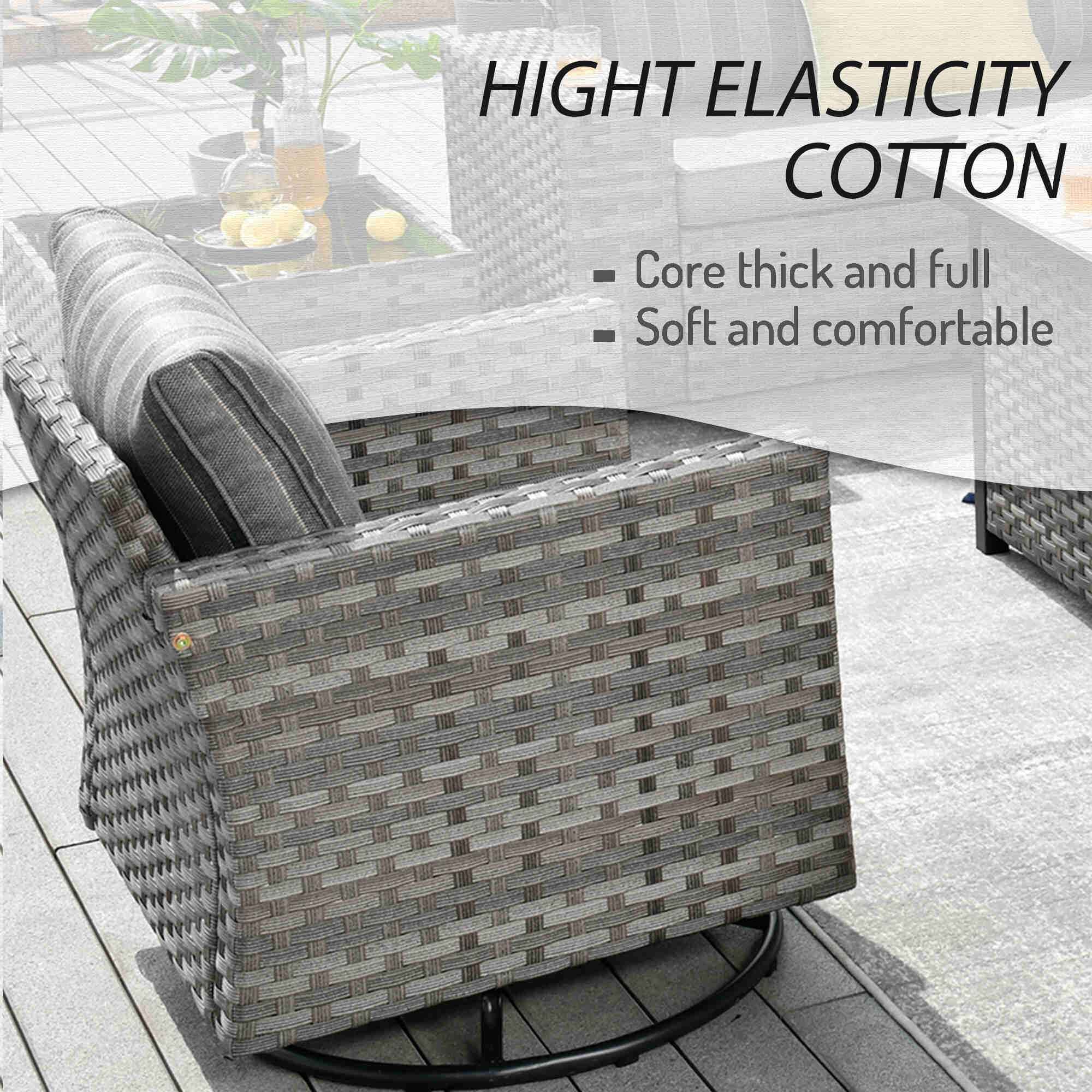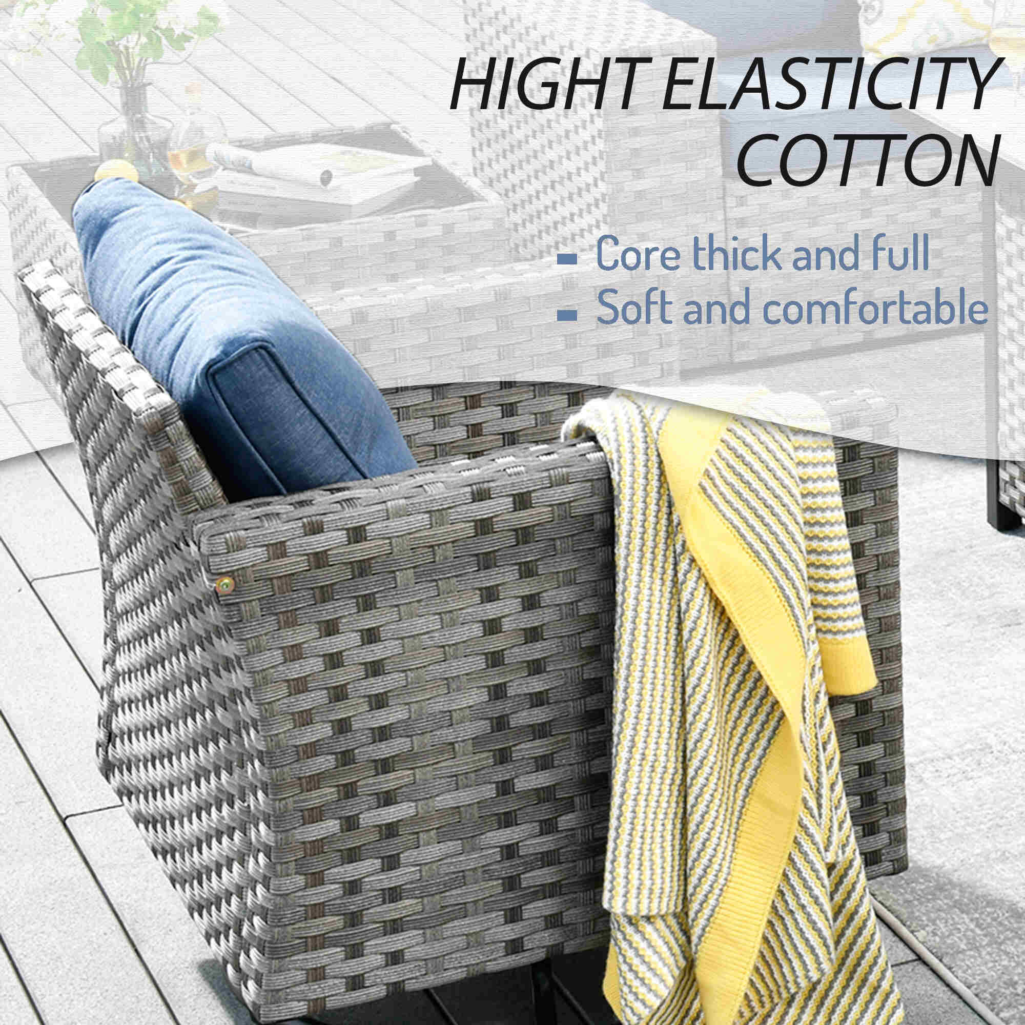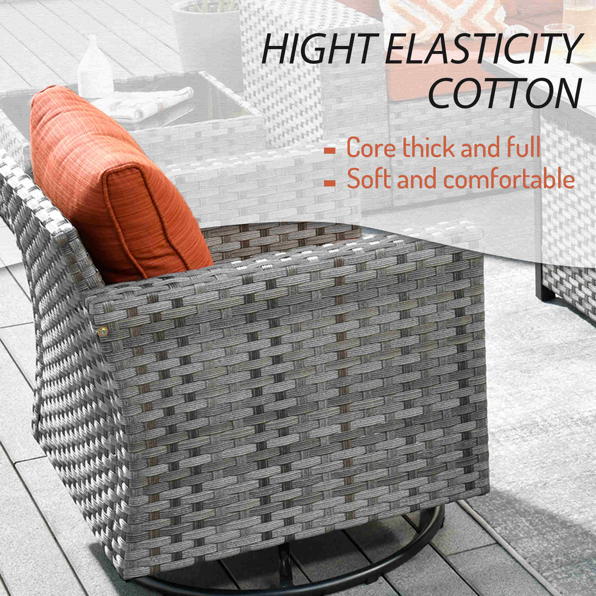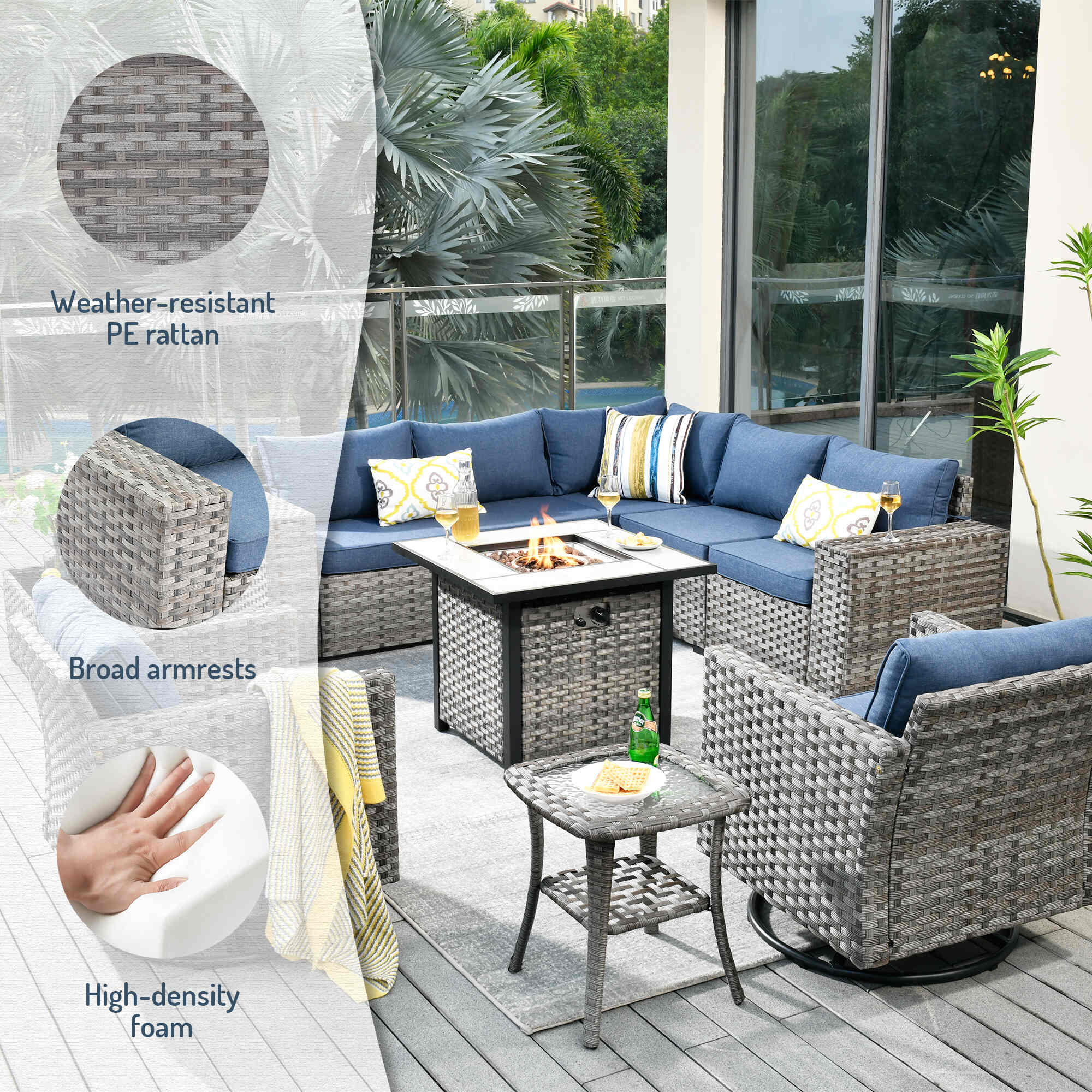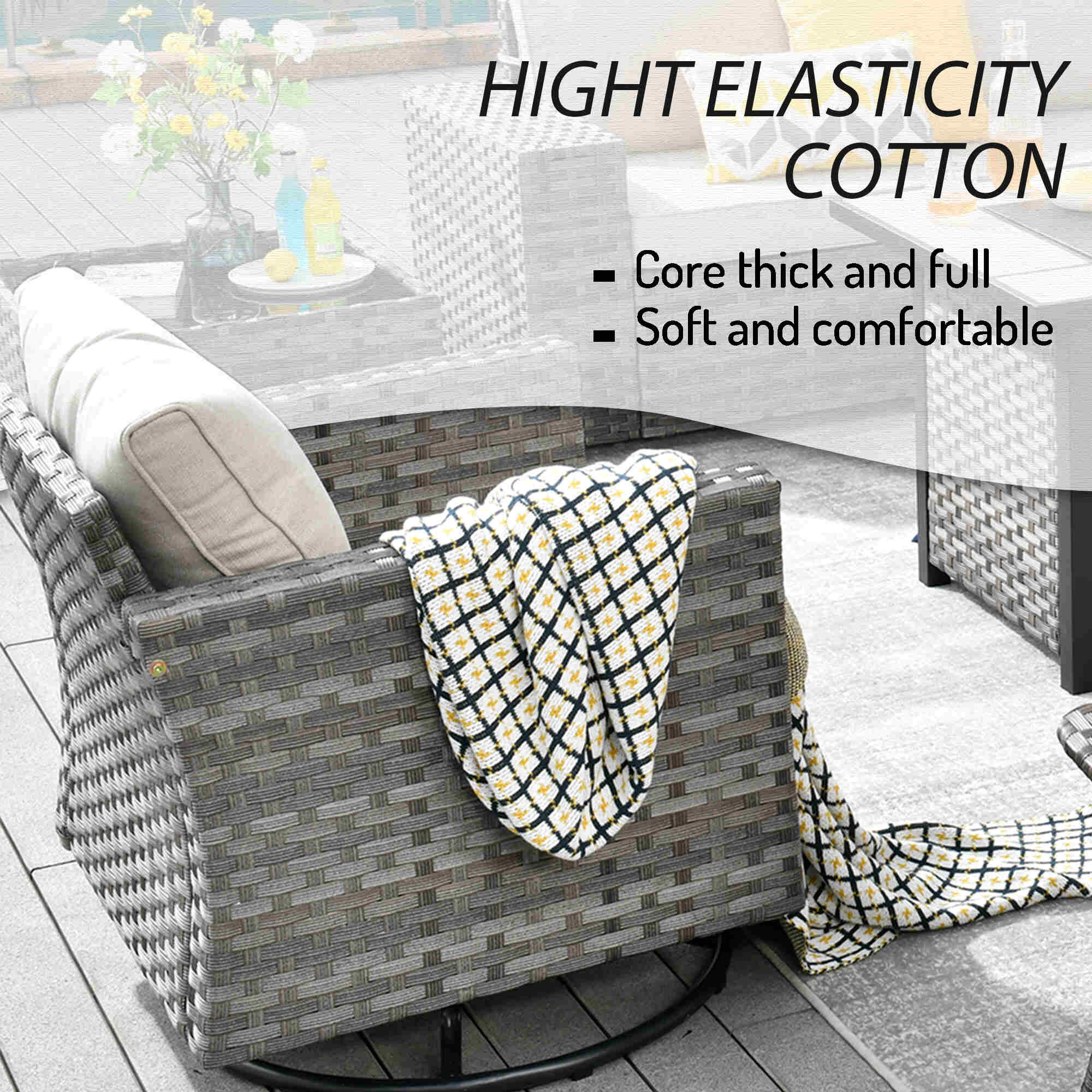 Premium Materials: Enjoy the durability of high-quality fabric with unmatched UV protection, ensuring rapid drying after rain. The handwoven wicker and high-density cushions offer robust lumbar support.