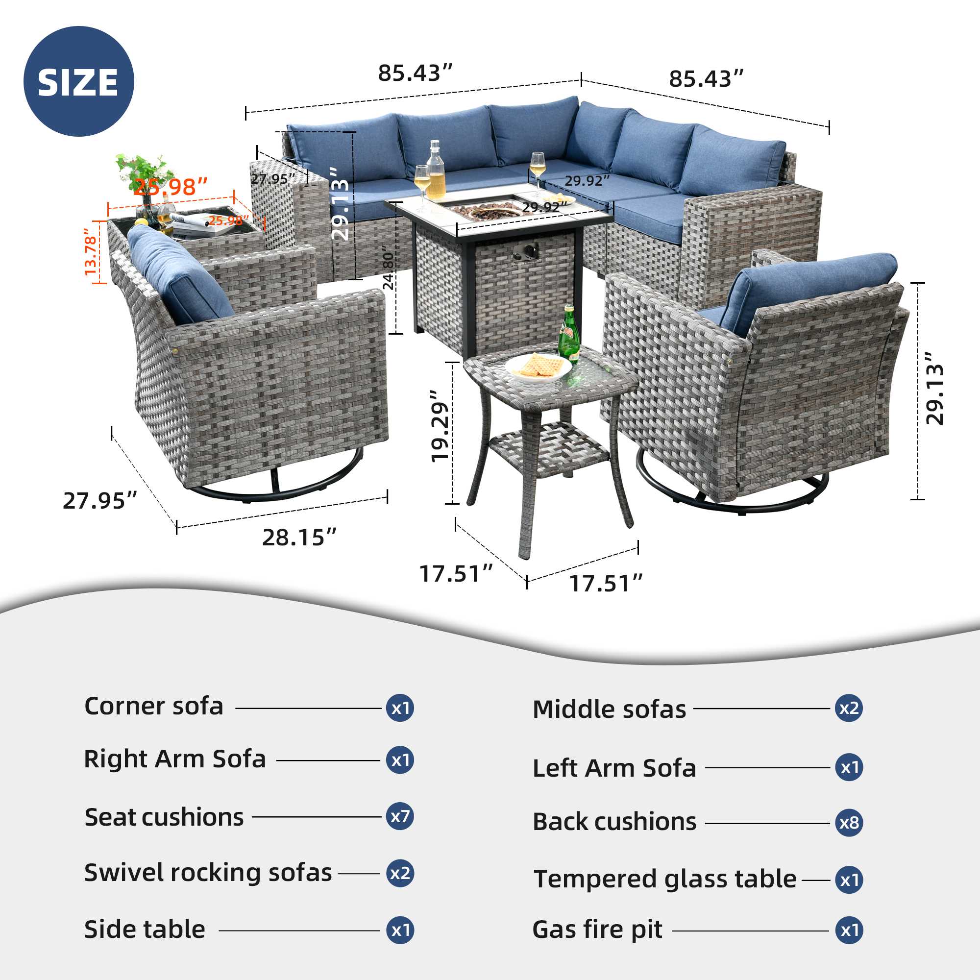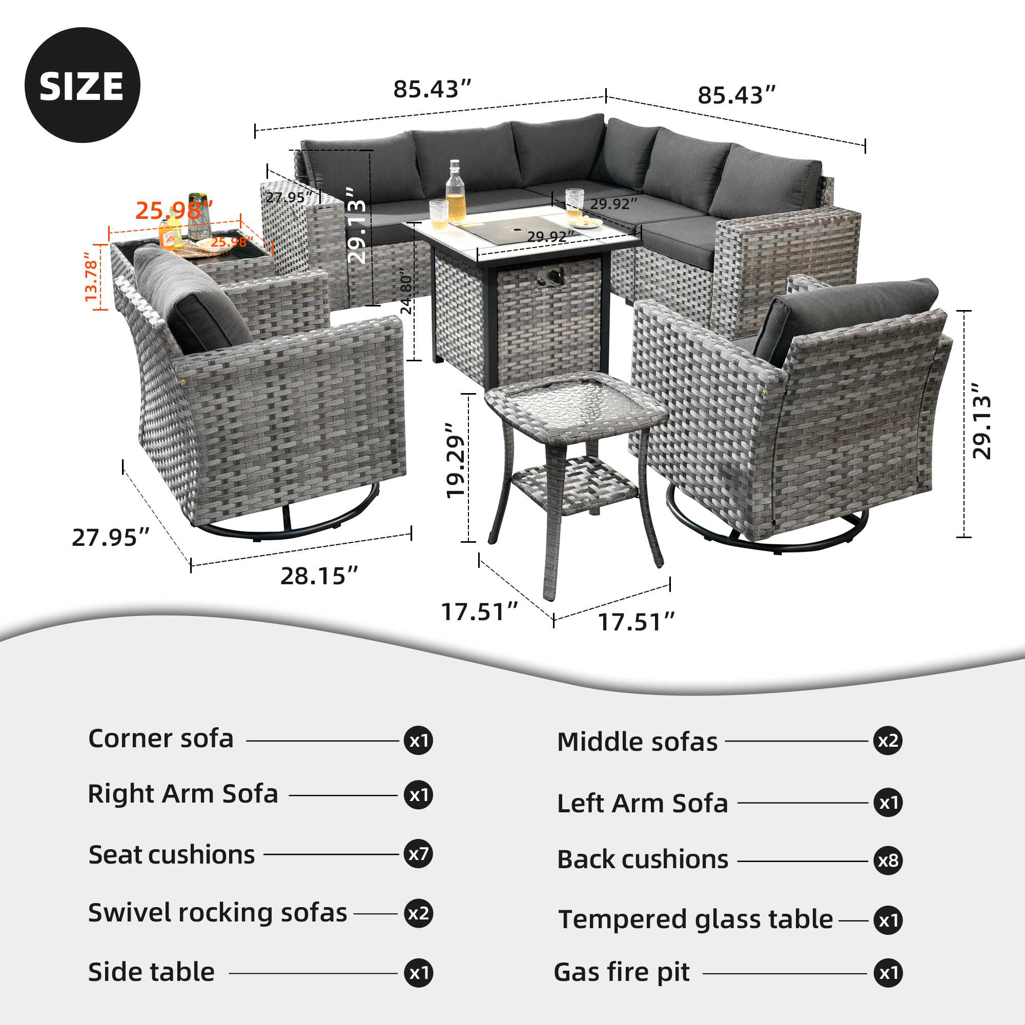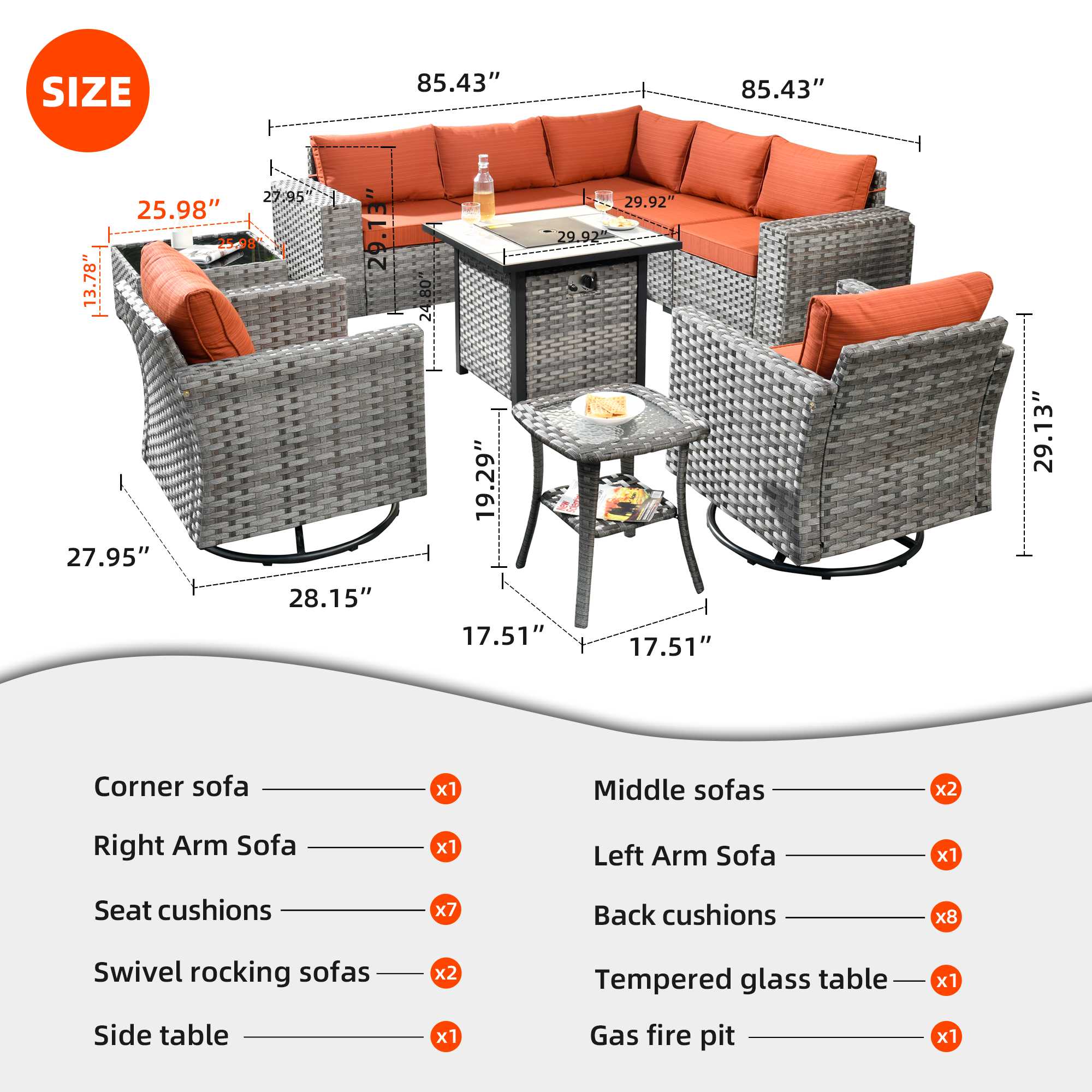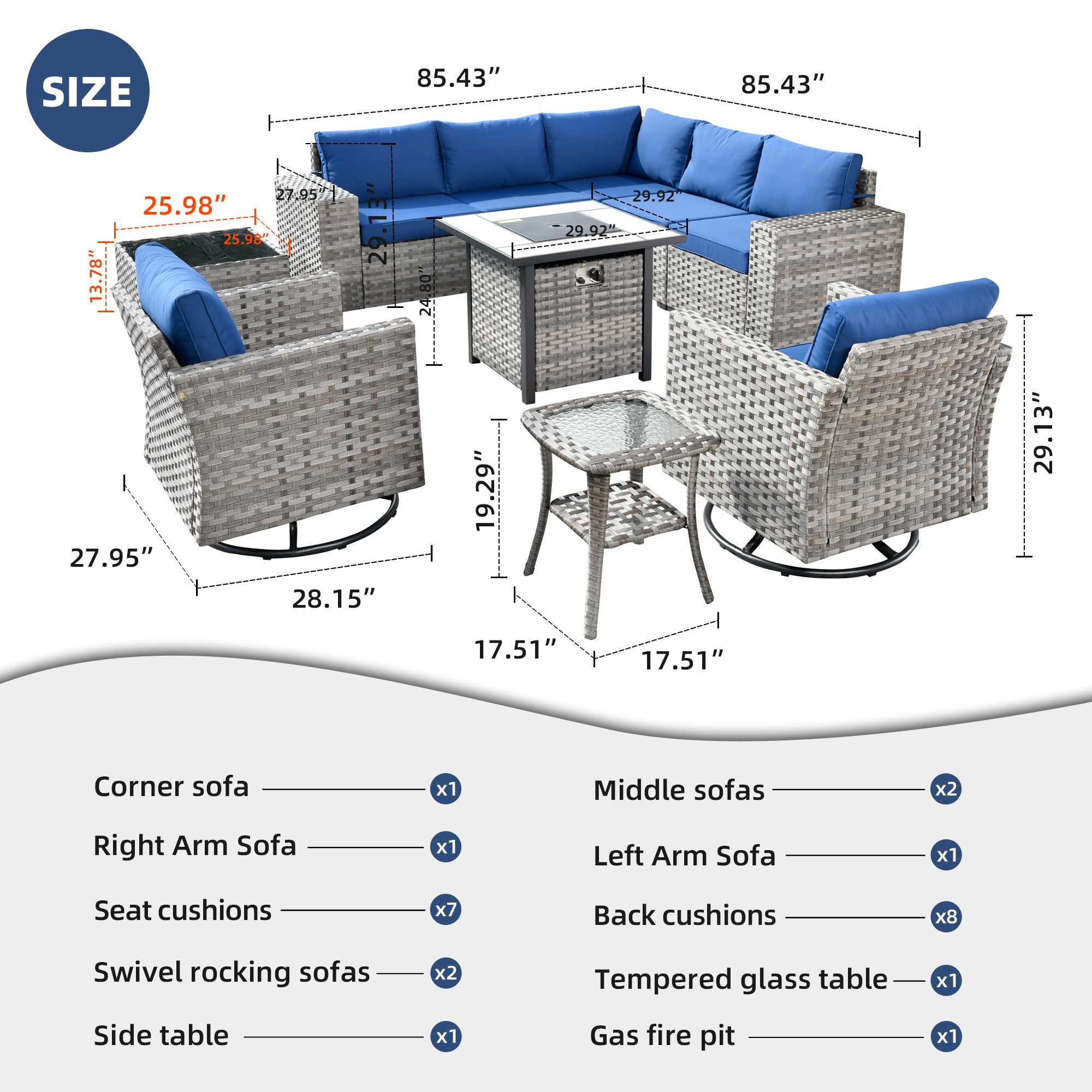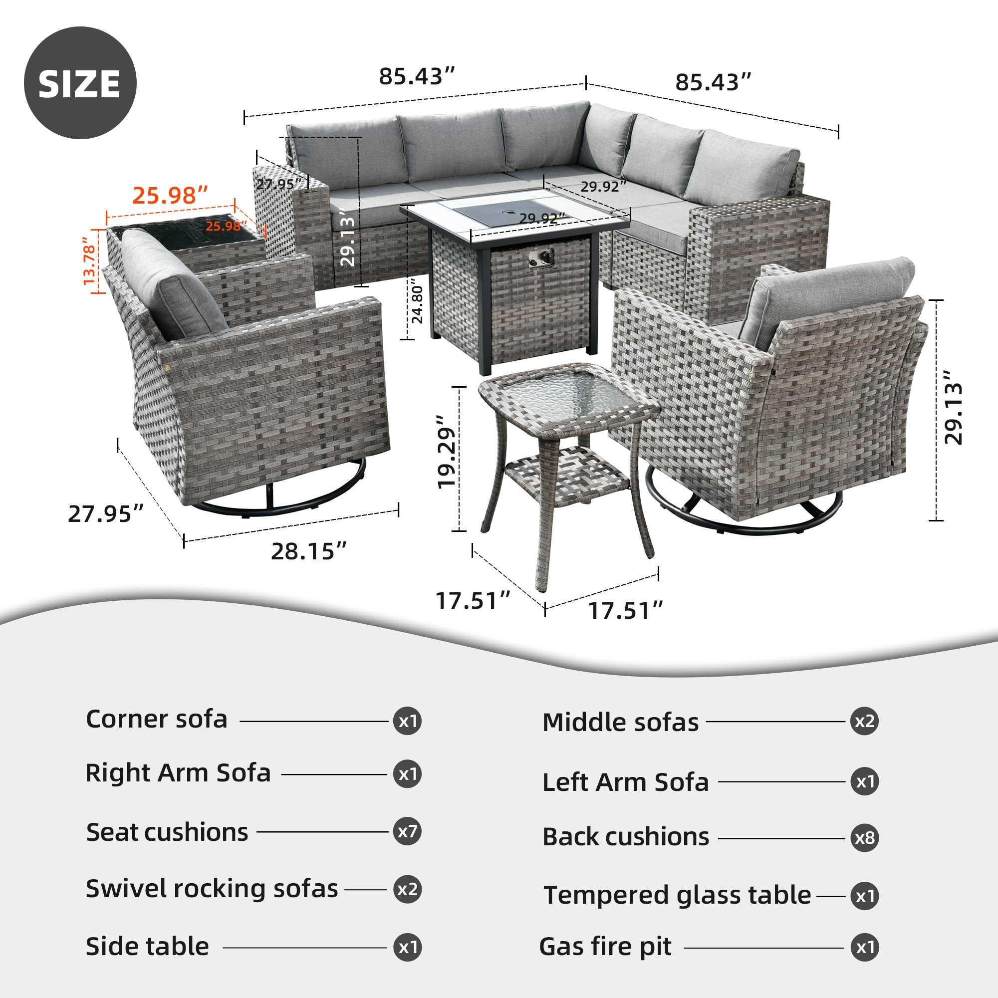 | Corner Sofa | 29.13"H x 27.95"W x 27.95"D |