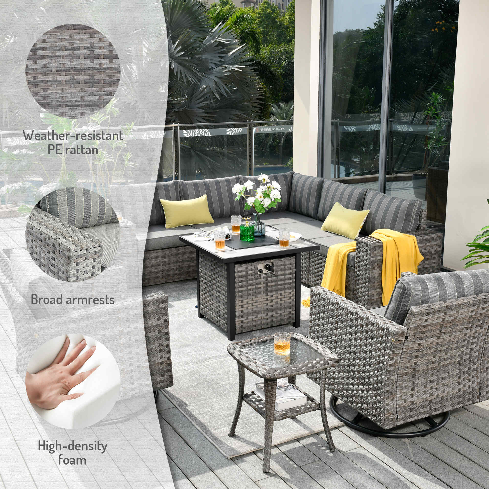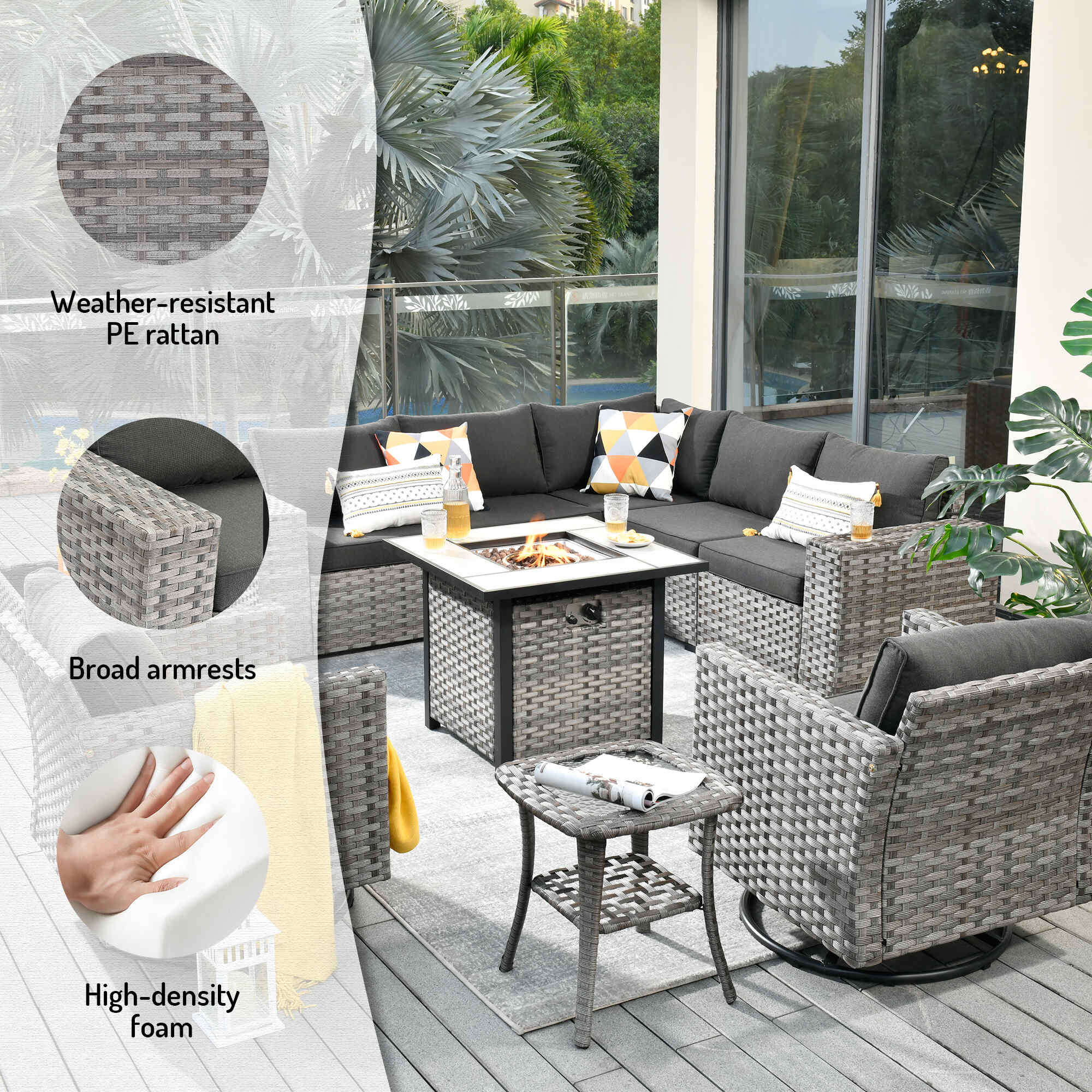 Easy Maintenance: Simplify upkeep with cushion covers featuring smooth zippers for easy removal and washing. Crafted from hand-made weather-resistant PE rattan, this all-weather sectional sofa won't rust or fade.