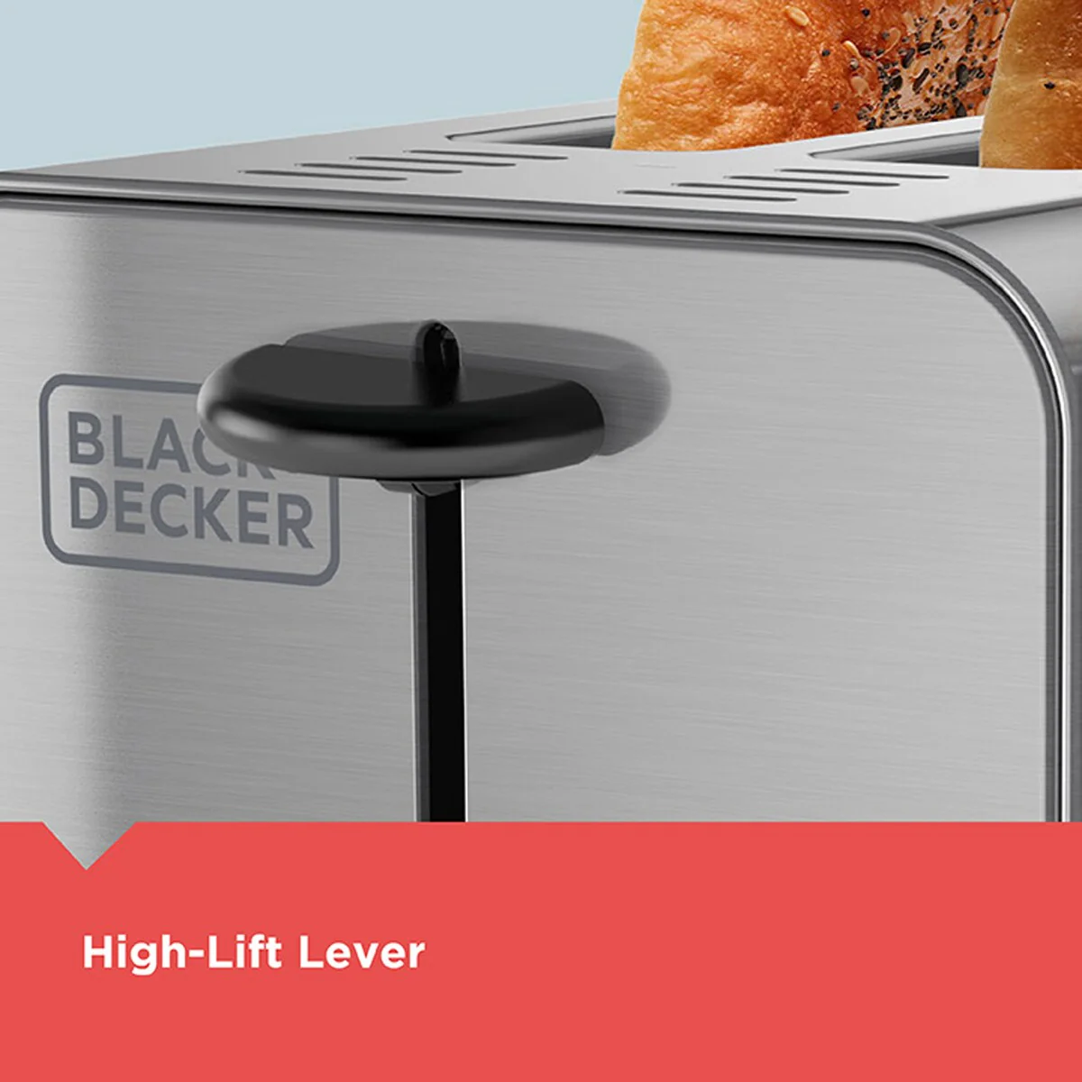 With the Black and Decker 2 Slice Stainless Steel Toaster, enjoy toasting versatility at the touch of a button! Toast all types of breads, waffles, and pastries. Set the shade selector from 1-7 to get toast just the way you like it. The two wide slots make it easy to get your day going.Material: Stainless SteelColor: SilverPower: 750W, 120V2 Wide Slots7 Toast Shade SettingsTurning KnobDrop Down Crumb TrayHigh-Lift LeverCancel FunctionItem Dimensions: 9" length, 5.8" width, 6.5" height