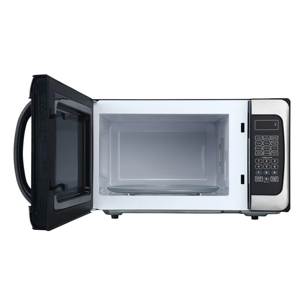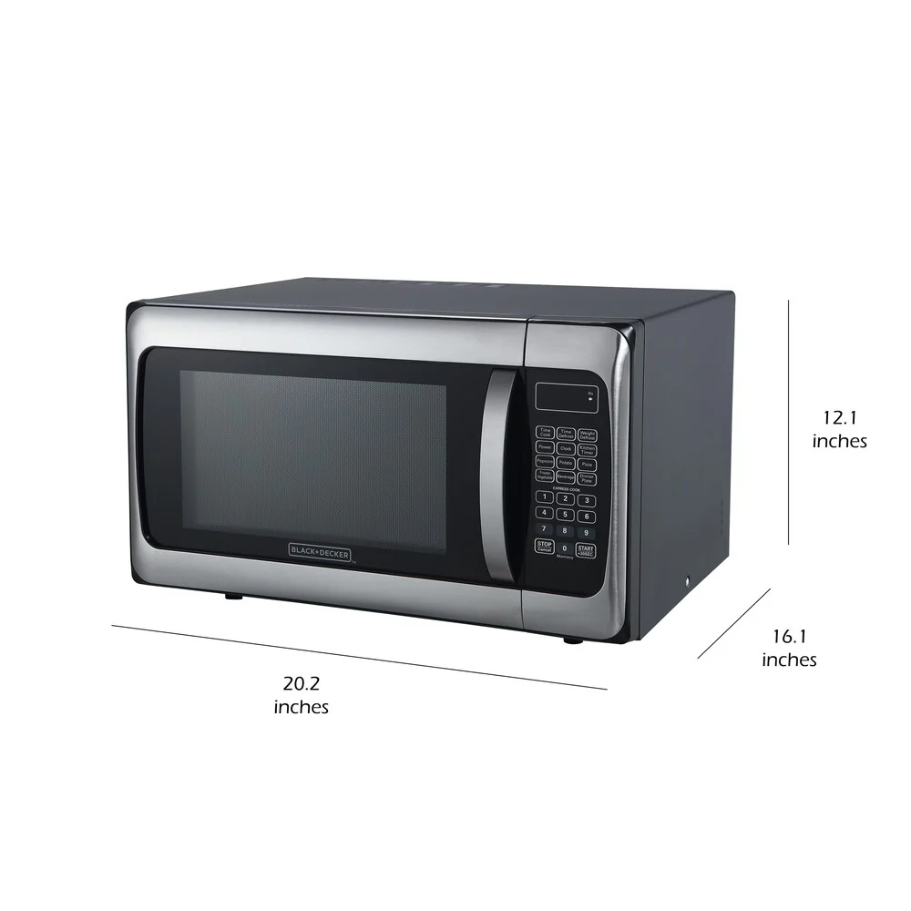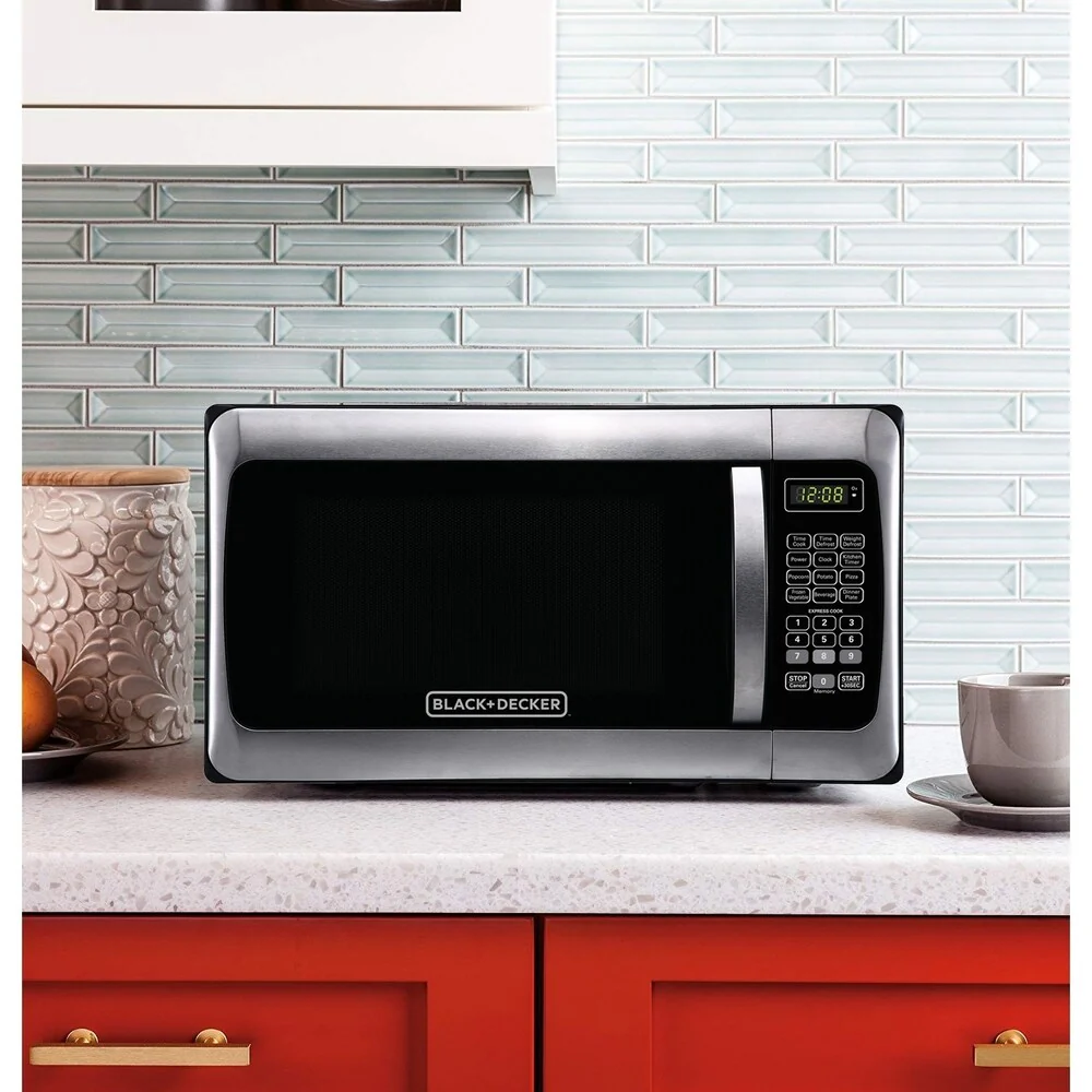 Get your favorite foods cooked easily and conveniently in this Black+Decker 1.1 Cu.Ft Microwave Oven. This efficient appliance has 1000 watts of cooking power. Featuring a modern black finish, this microwave oven has 10 different power levels to fulfill all of your cooking desires. When you want to have something ready to eat fast, the 30 second express cooking mode ensures to cook your meal in a snap. The LED display is bright and easy to read, and the handy kitchen timer and clock makes it simple to plan your meal. This countertop microwave oven is a smart and elegant choice for the style and feel of your kitchen.