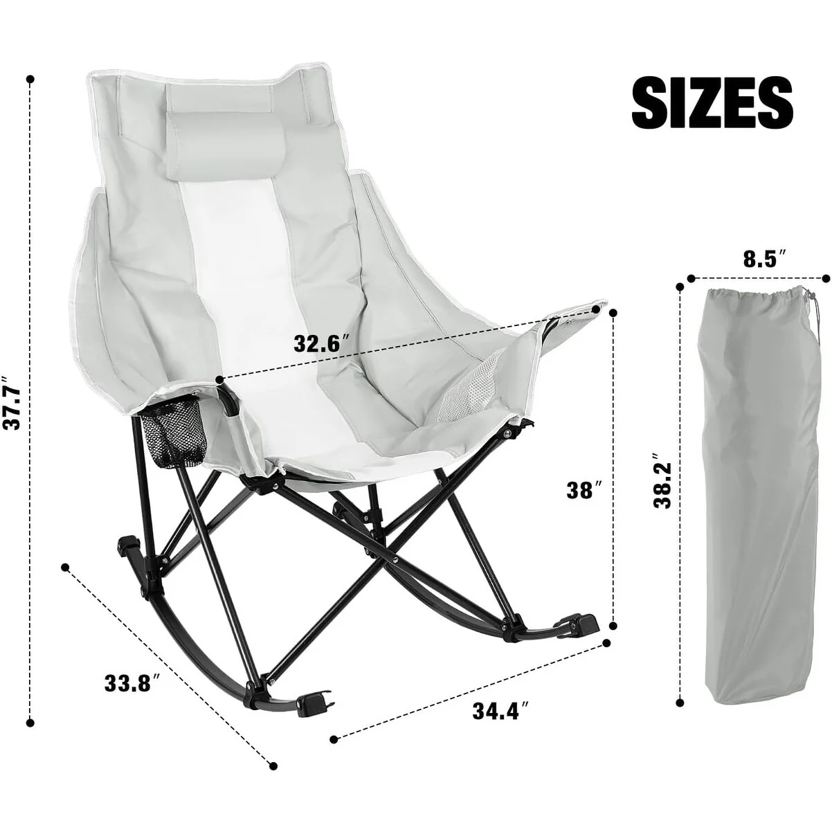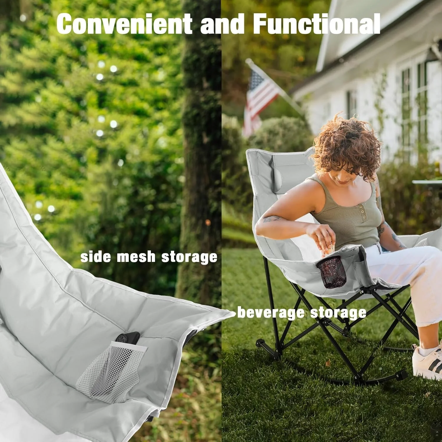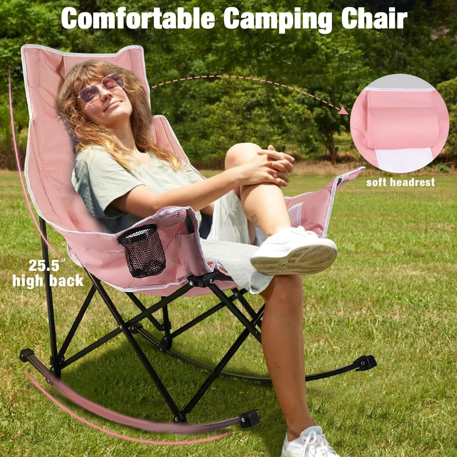 • BOSSIN Heavy-Duty Oversized Rocking Camp Chair, Portable Folding w/Cup Holder, Cooler & Pocket for Camping, Beach, Backyard