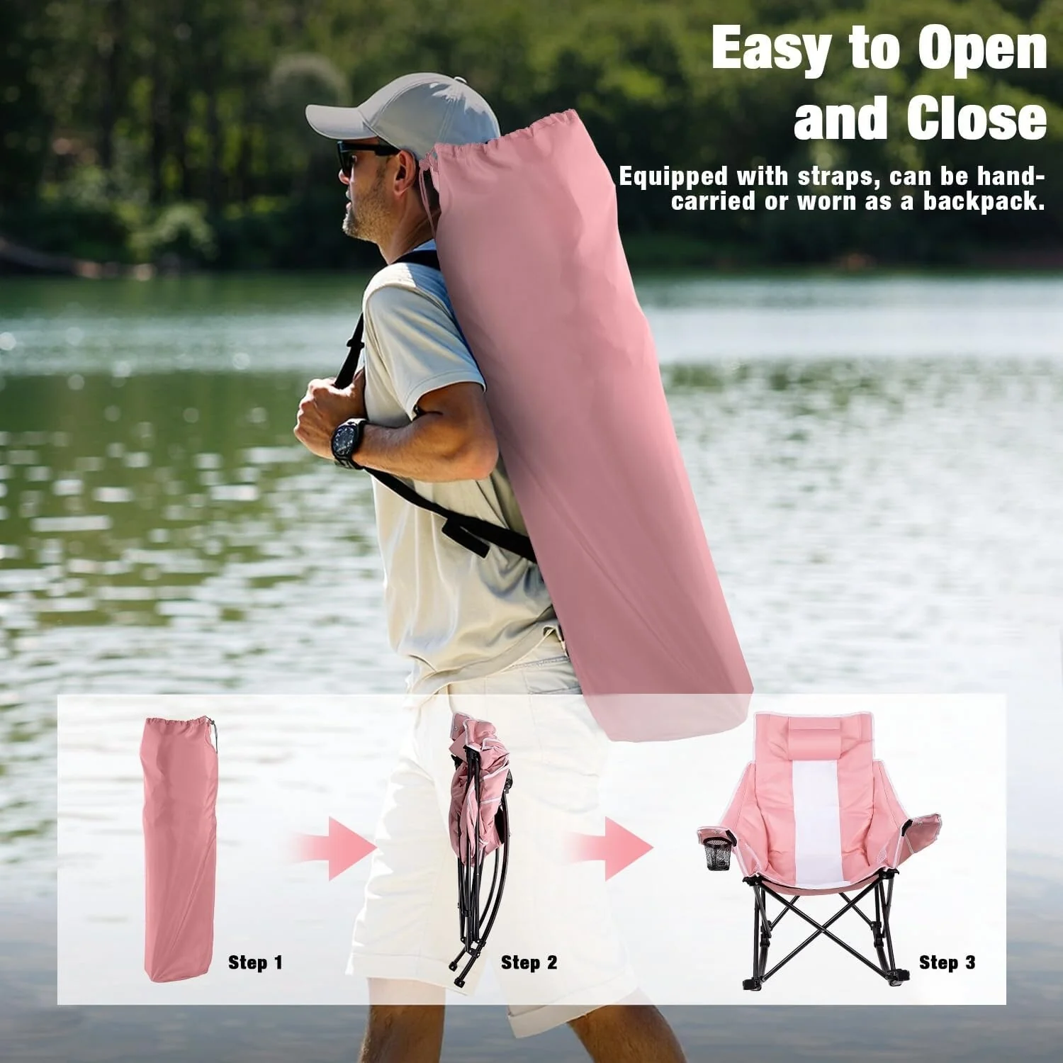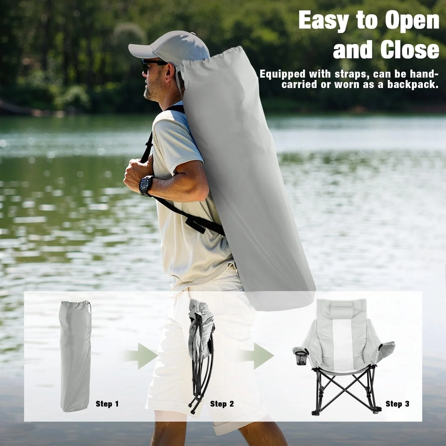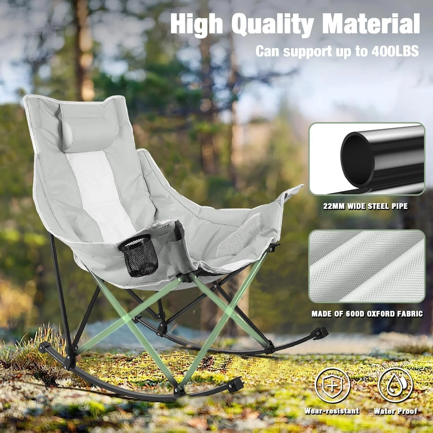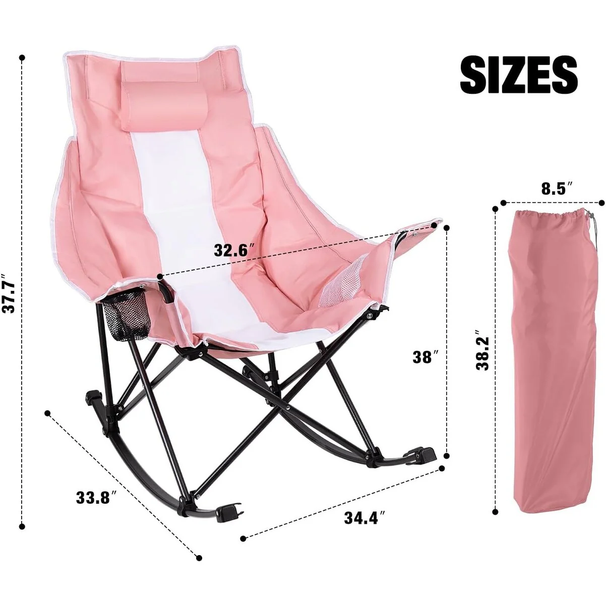 • BOSSIN Heavy-Duty Oversized Rocking Camp Chair, Portable Folding w/Cup Holder, Cooler & Pocket for Camping, Beach, Backyard