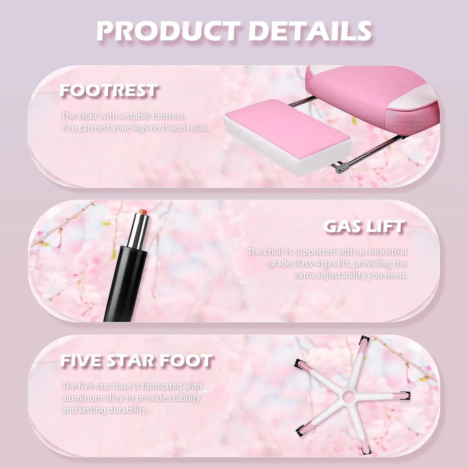 - 🕹️【Safety and Comfort Computer Chair】Class 4 gas lift, durable, reliable and supports up to 400lbs. High load-bearing capacity of 5-star base.Rubber casters, rolling quietly and tested by 1000 miles rolling. This is a gamer chair for adult teens and kids.