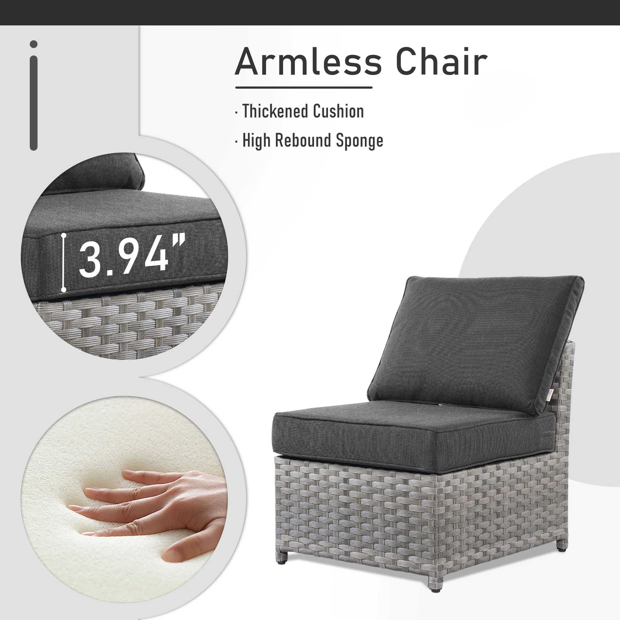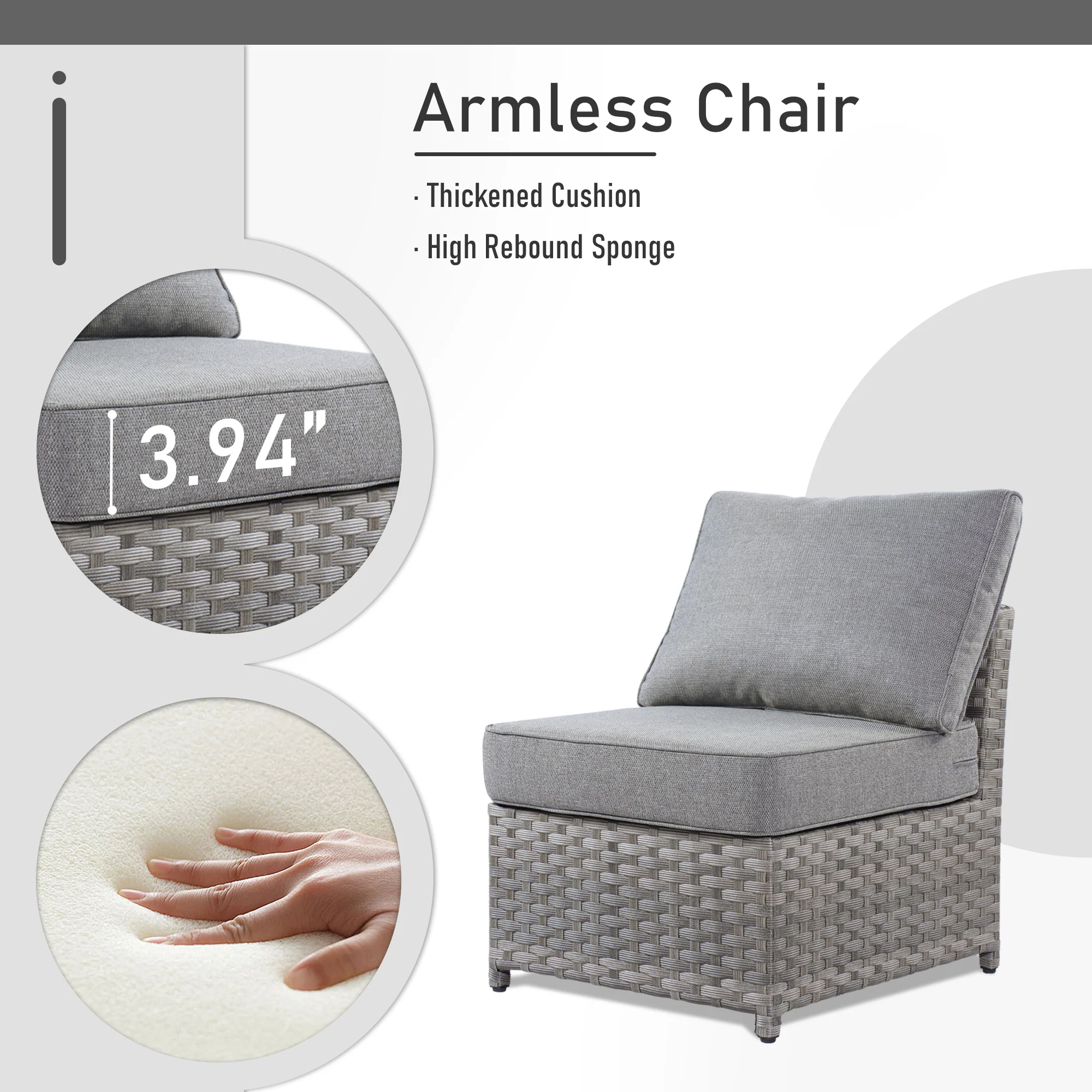| Items Included: | 13 PCS include: Fully Assembled: Corner Chair * 4; Armless Chair * 4; Single Chair * 2; Ottoman * 2; Coffee Table * 2; Assembly needed: Fire Pit Table * 1 |