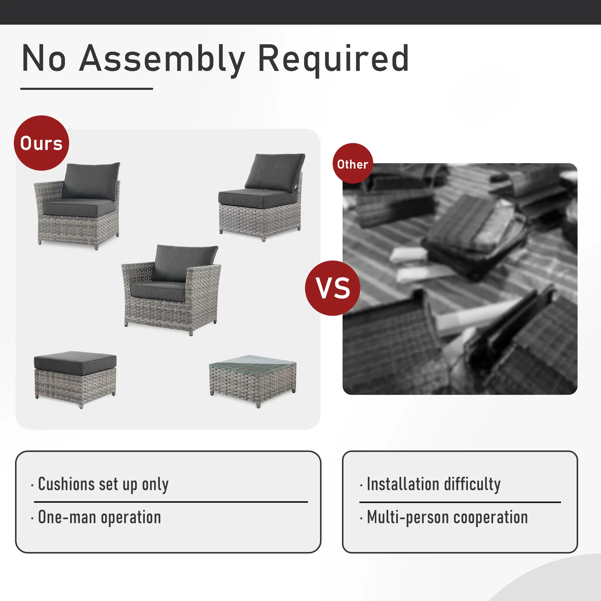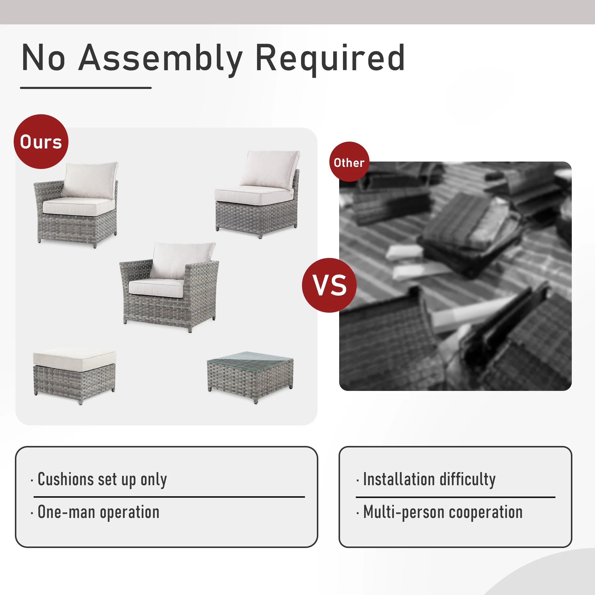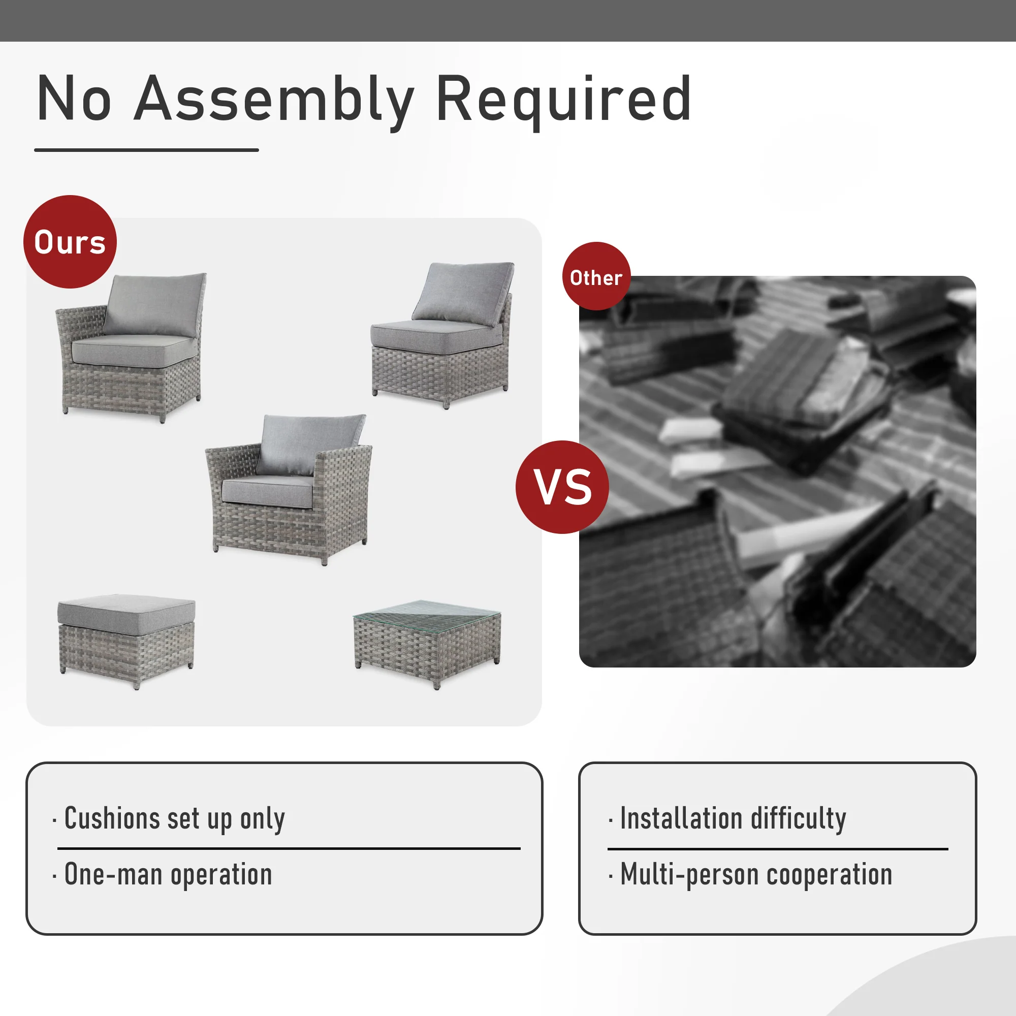 Minimal Assembly Required: Streamline your setup with our partially assembled furniture set, balancing convenience and time savings. Experience a hassle-free assembly process while enjoying the benefits of this stylish and comfortable ensemble for your outdoor space.
