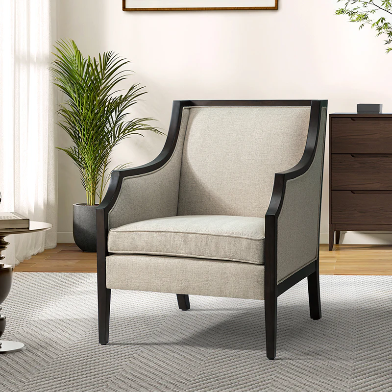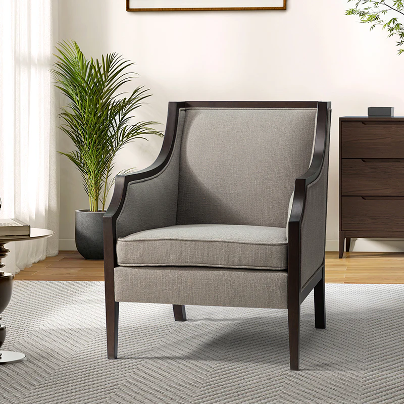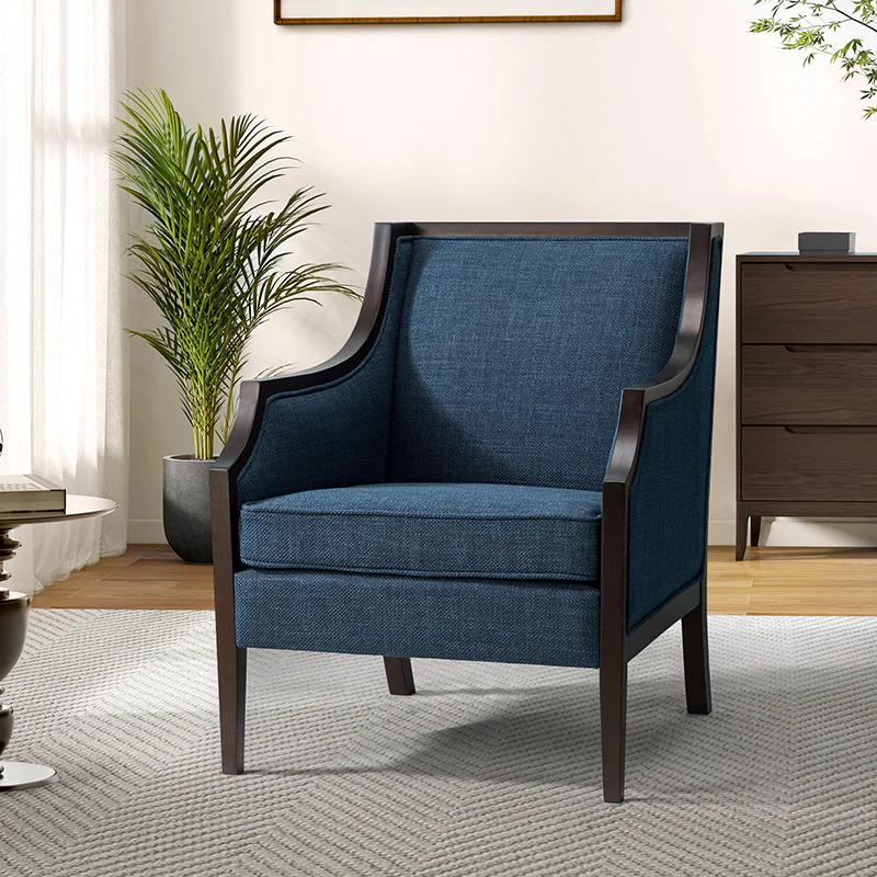 Decorate your home with this transitional wingback armchair. It invites you to sit down with its sleek, angled silhouette. Solid wood upholstery outlines its silhouette. High quality jacquard fabric polyester-wrapped foam cushions provide a seat that is both structured and soft. Its standard back supports your back well and allows your back to relax. This armchair is a good choice to decorate all styles of your living spaces, like traditional style, contemporary style, etc. This wingback armchair with large size is exactly what you are looking for, so come and buy it.