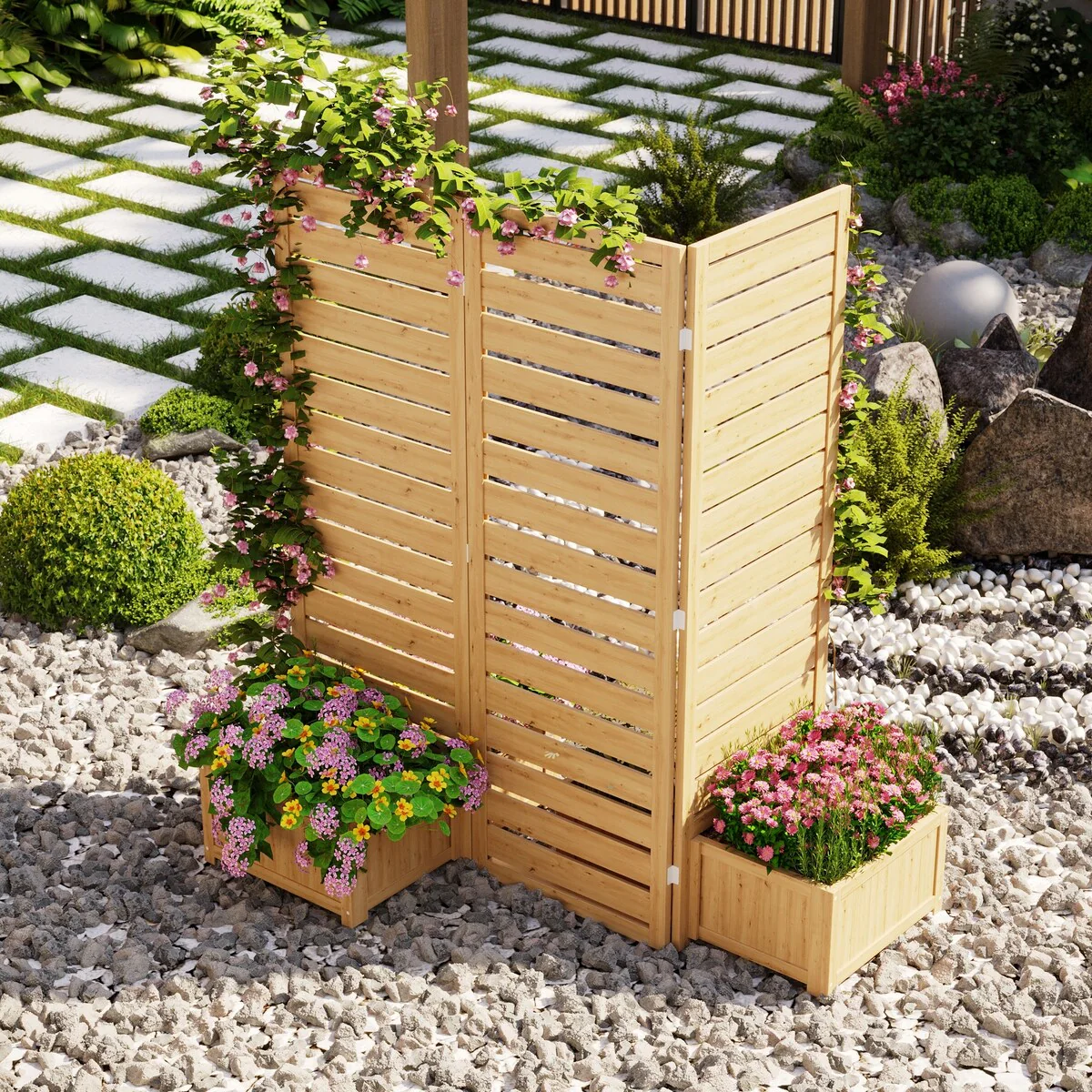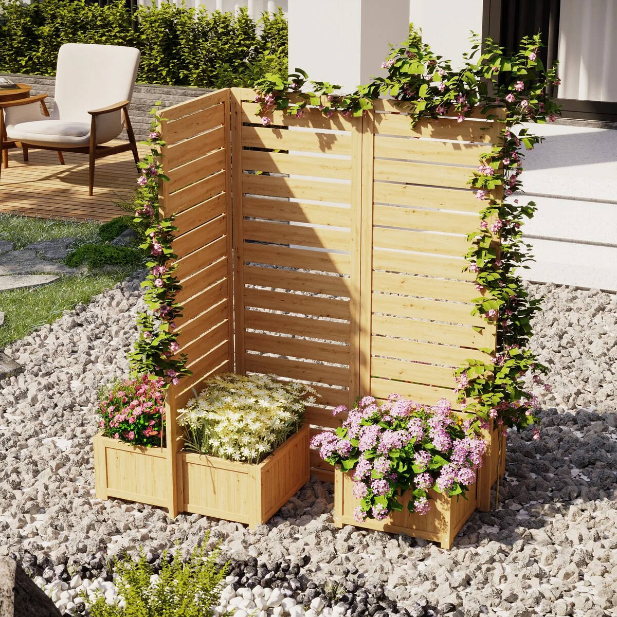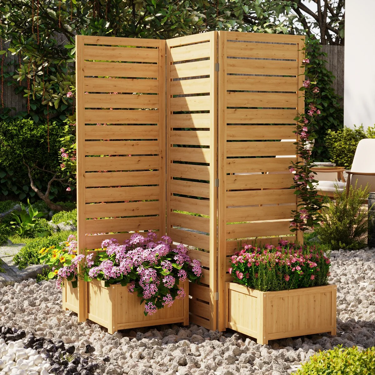 Cedar Tri-Fold Privacy Screen with 4 Planter Boxes, Weather-Resistant