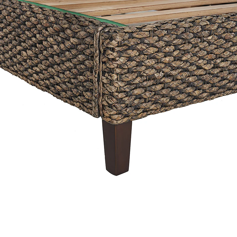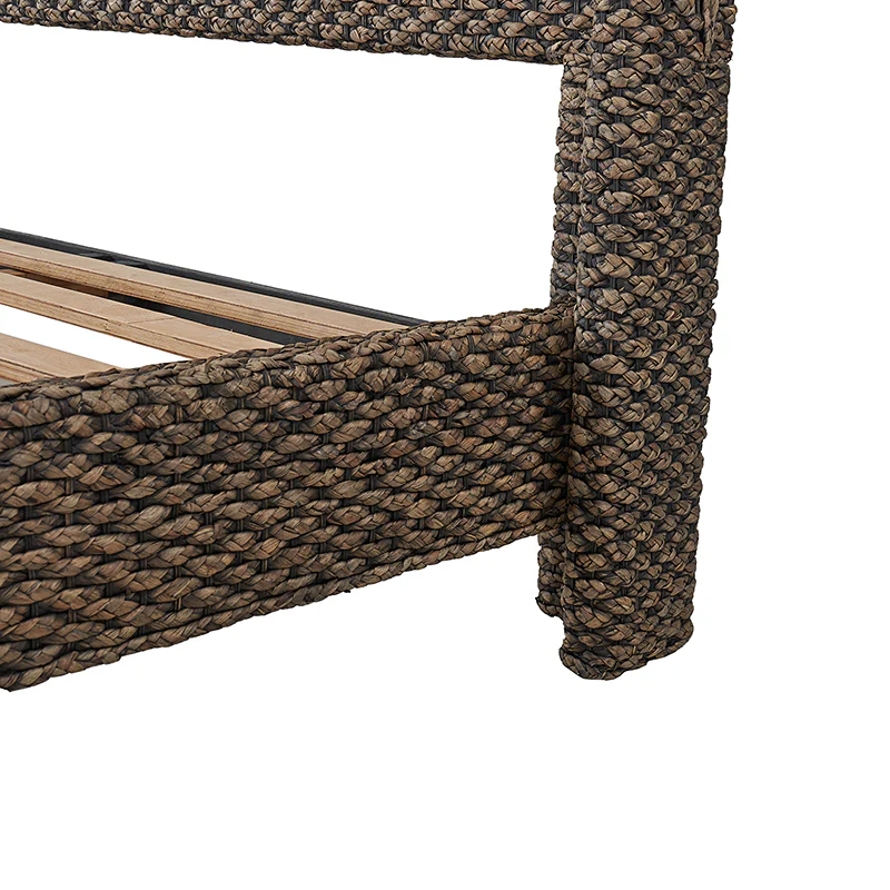 Introducing a captivating bed that exudes coastal charm and beach house style. The camber panel headboard of the bed is adorned with a braided design, evoking a rugged yet alluring feel. Its wingback design adds a touch of elegance and complements coastal and rustic decor seamlessly. Crafted with natural materials like woven grass rope, this bed effortlessly combines farmhouse, traditional, coastal, sea house, beach house, tropical, rustic, lodge, and French Country aesthetics. With its versatile appeal and timeless allure, this bed becomes a statement piece in any bedroom, inviting you to relax and unwind in a serene coastal ambiance.