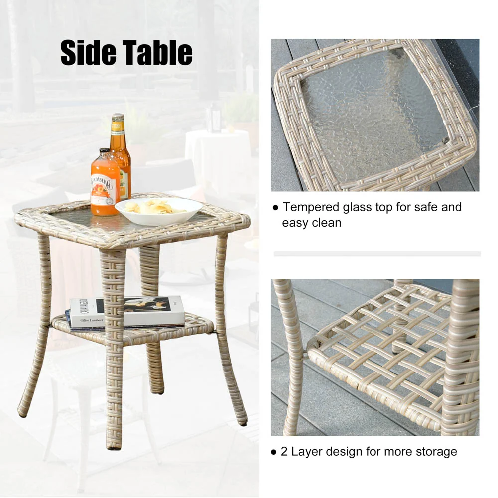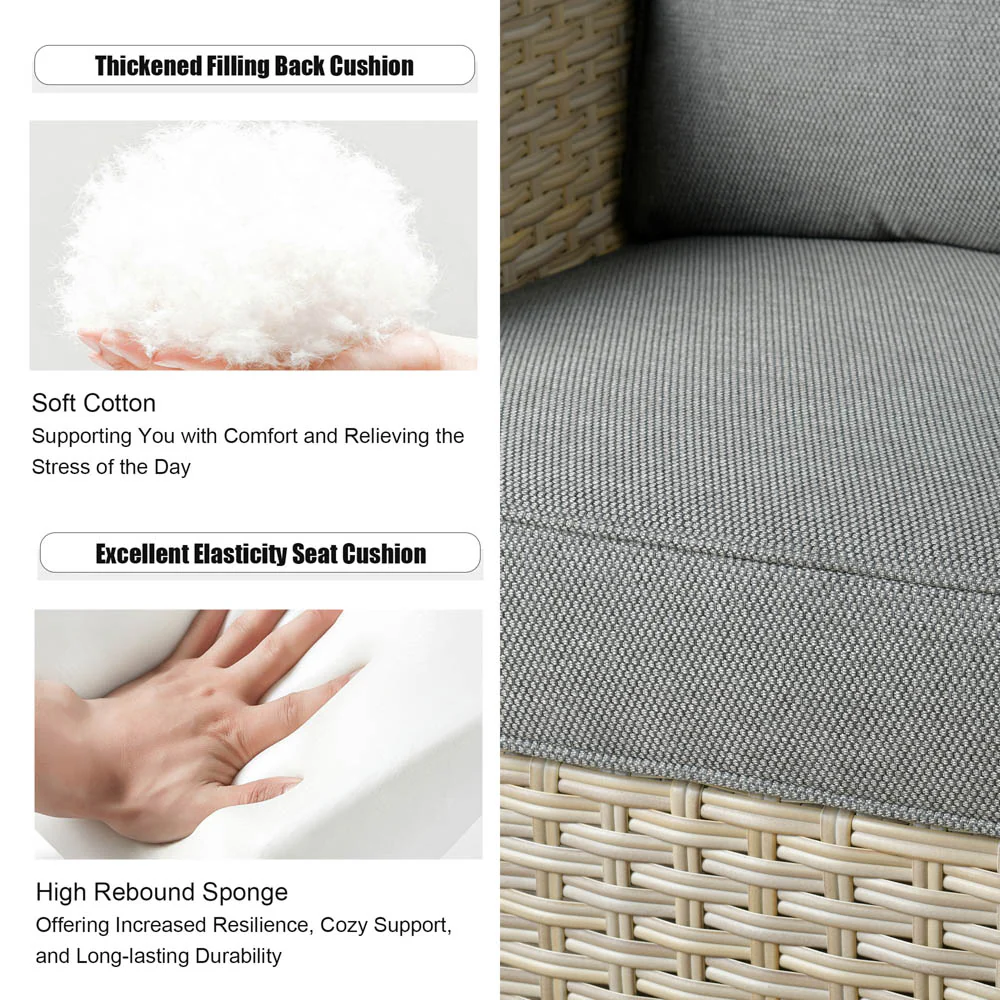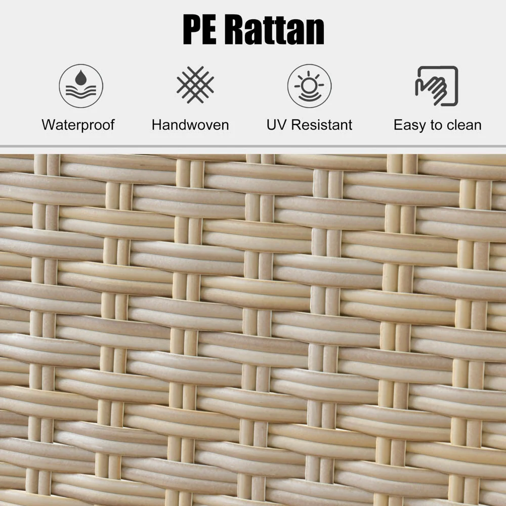 Stylish Wicker Craftsmanship: Crafted with high-quality Beige wicker, this set adds contemporary elegance to your patio, garden, or backyard porch. The modern design seamlessly fits with any outdoor or indoor decor, enhancing your space's aesthetics.