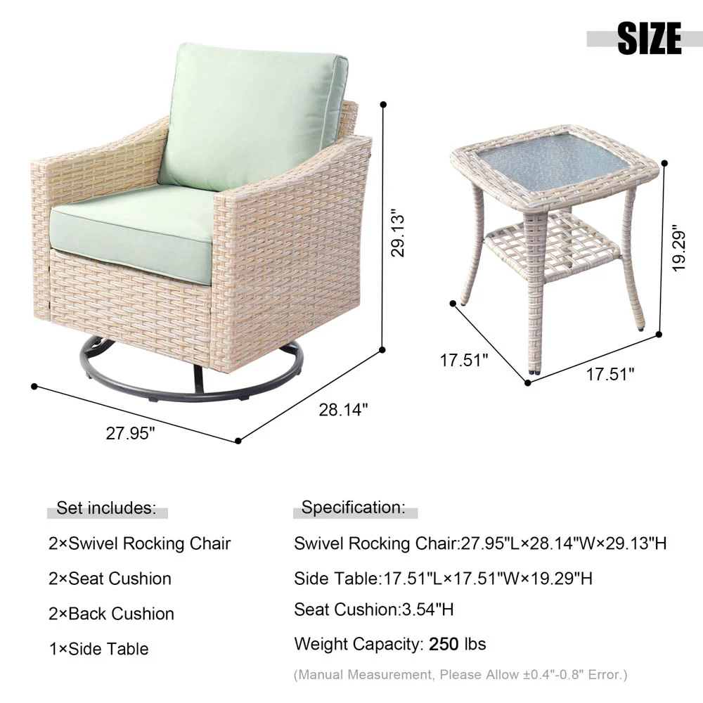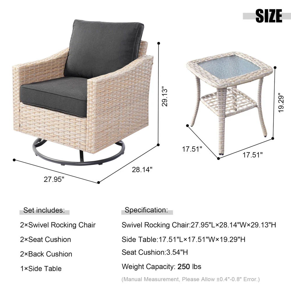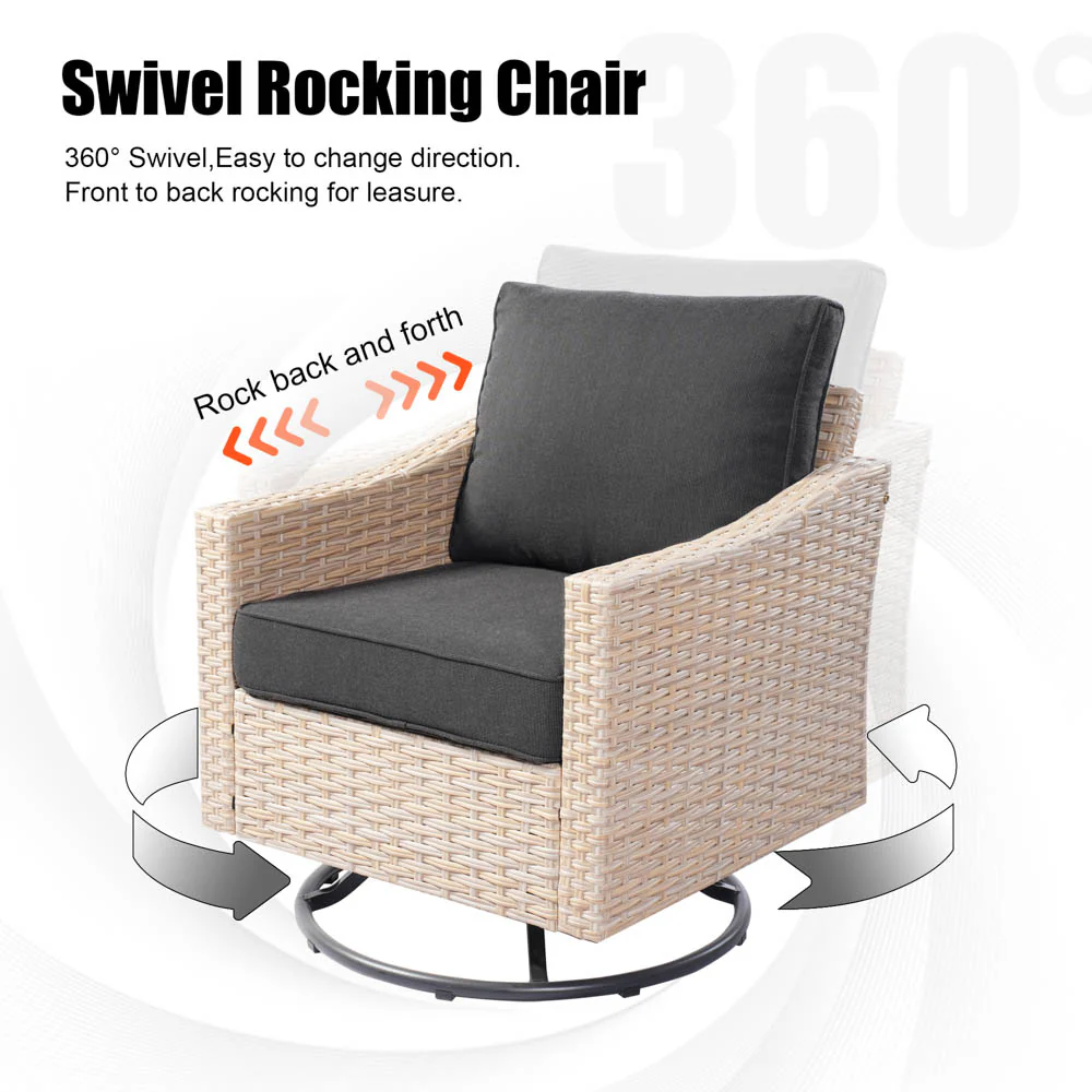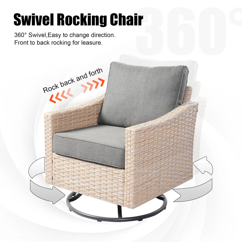 Stylish Wicker Craftsmanship: Crafted with high-quality Beige wicker, this set adds contemporary elegance to your patio, garden, or backyard porch. The modern design seamlessly fits with any outdoor or indoor decor, enhancing your space's aesthetics.