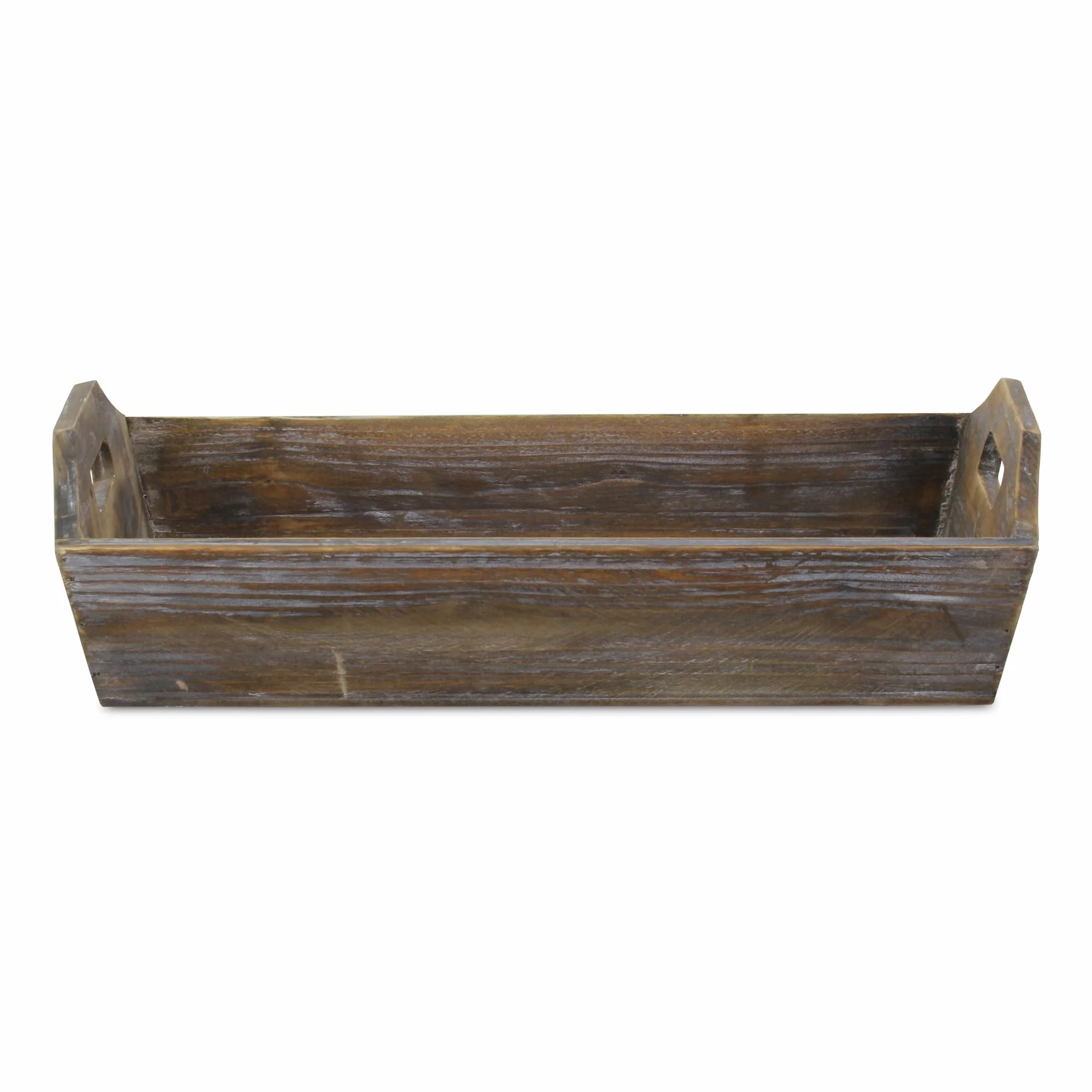 Dark Brown Finish Wood Serving Tray with Handles - 24 W x 17 D x 8 H