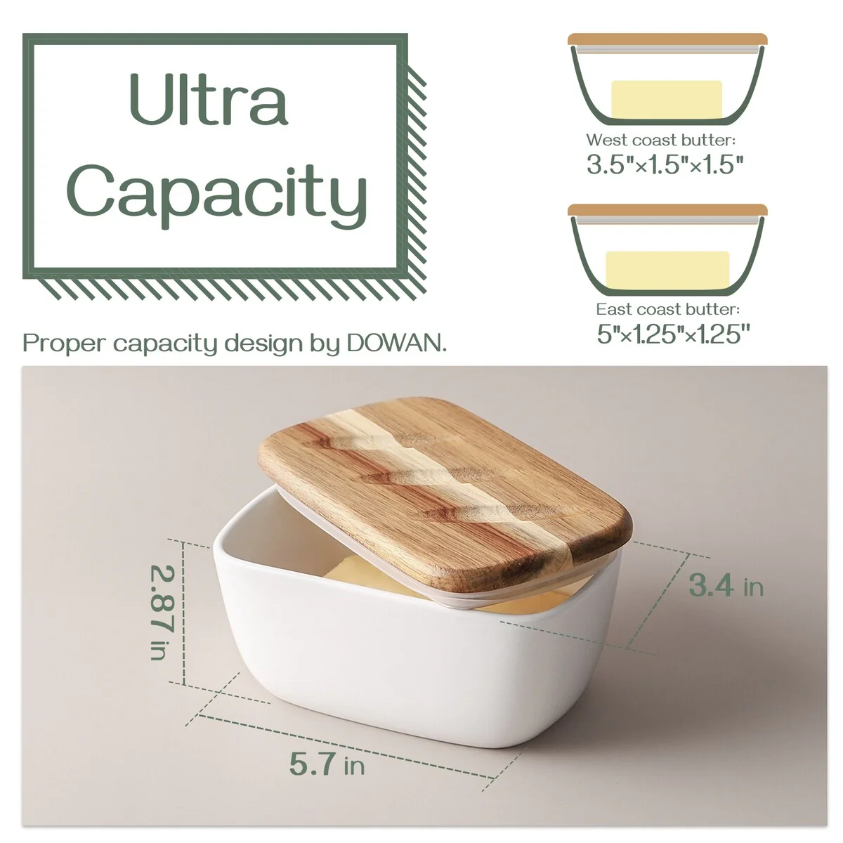 - Decorate Your Kitchen: The DOWAN butter dish with lid for the countertop comes in six stylish colors and the natural acacia wood lid adds a rich texture, making it the perfect addition to any kitchen that will never go out of style.