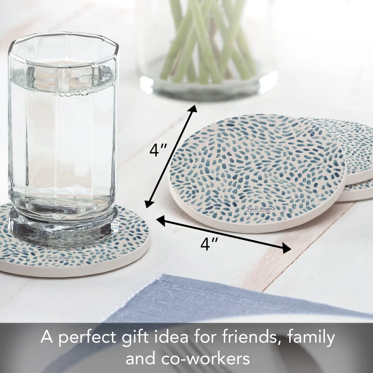 • Drift Marks Round Absorbent Stone Coaster 4 Pack with Protective Cork Backing Manufactured in The USA