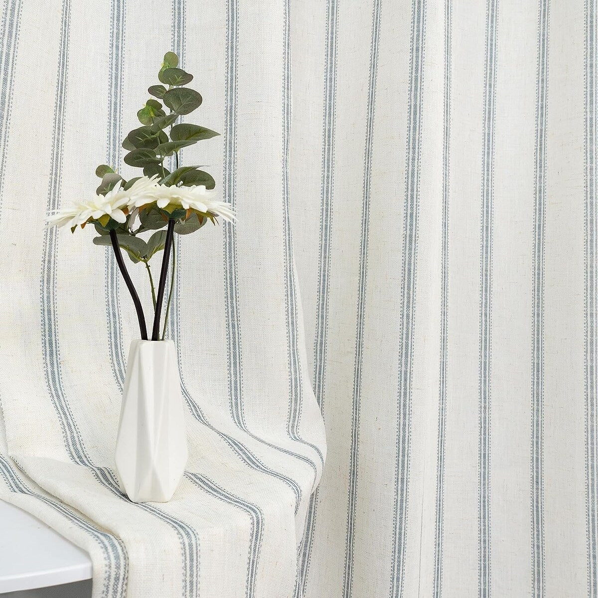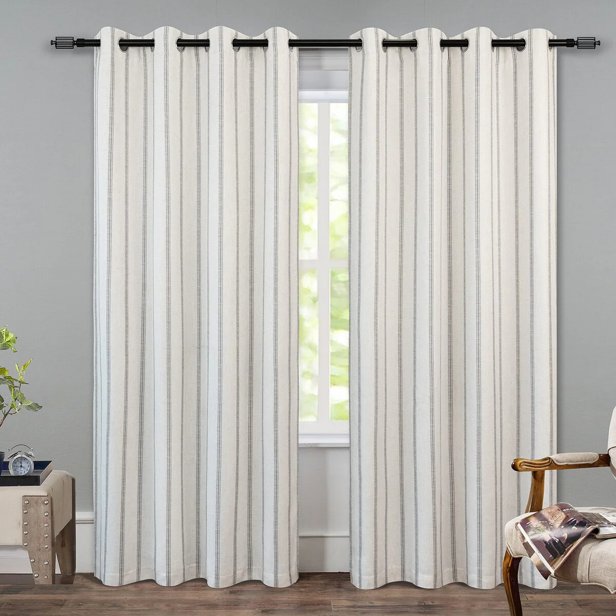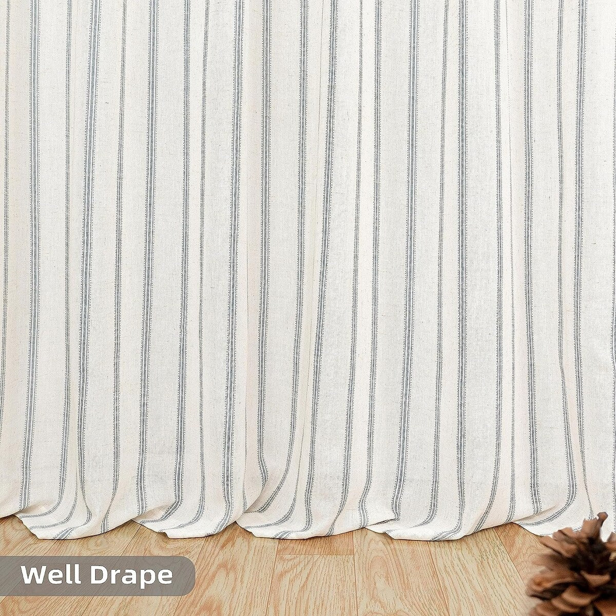 • DESIGN & STYLE: The vertical gray striped pattern window panels have a classic and elegant design, match both room color and your customized home styles, fit well for modern / antique / contemporary / trendy home decor. The linen blended fabric and simple patterns will give your window a graceful vintage look, enhance the taste of your house. Airy & Privacy: The line weave makes curtains more draped and aesthetic. Linen textured curtain creates lightweight, airy, and peaceful look, adds texture, flair and ambiance to any style of your home by allowing soft sunlight to flow through while also providing basic privacy protectio