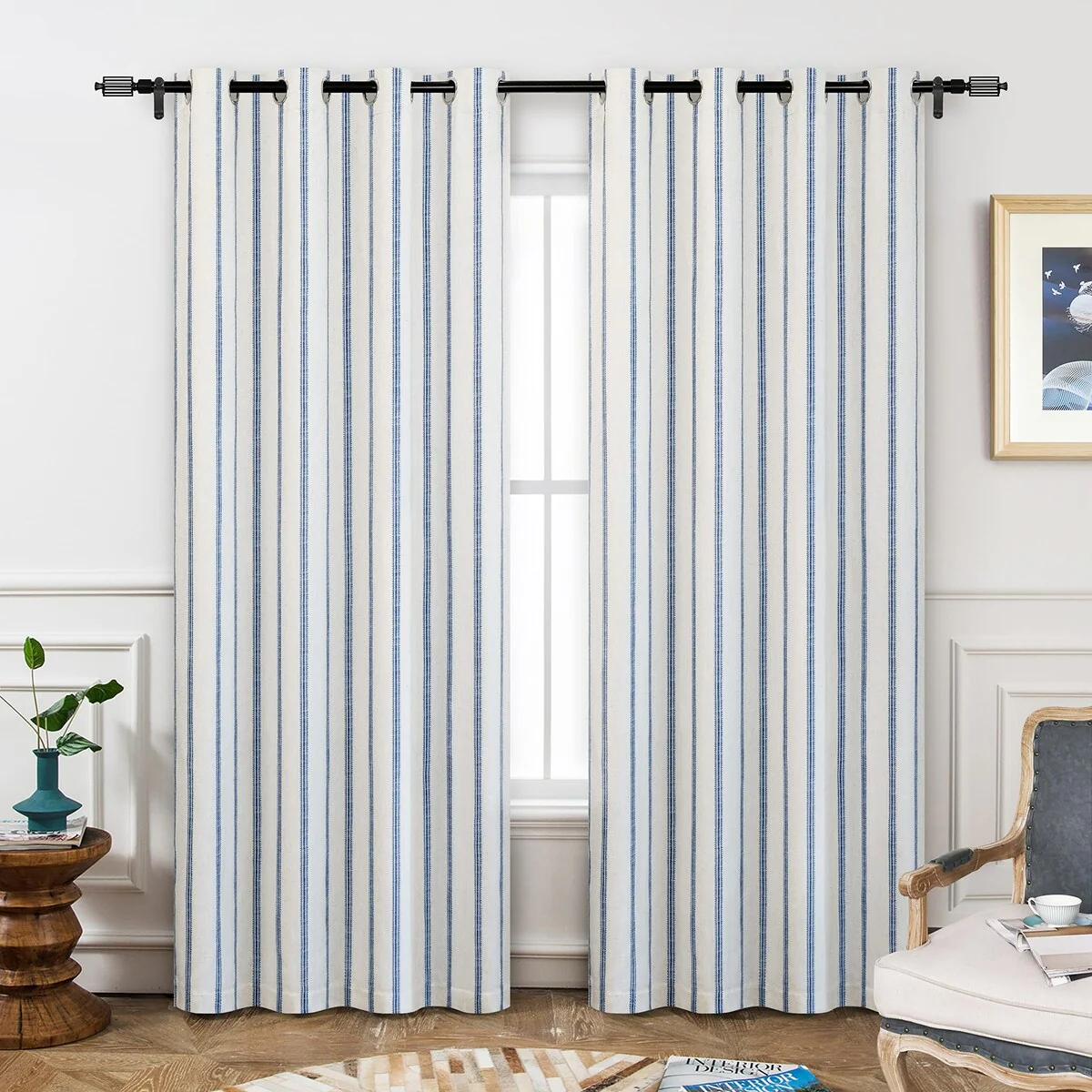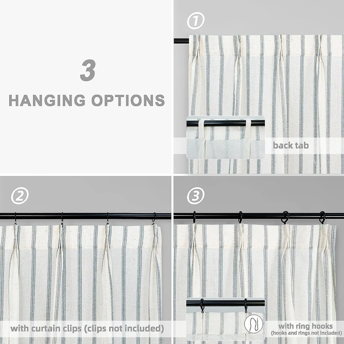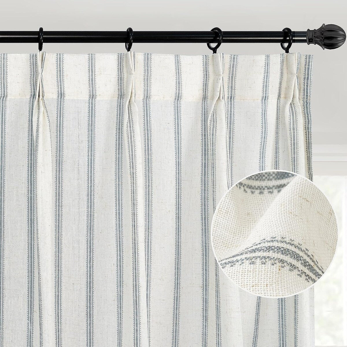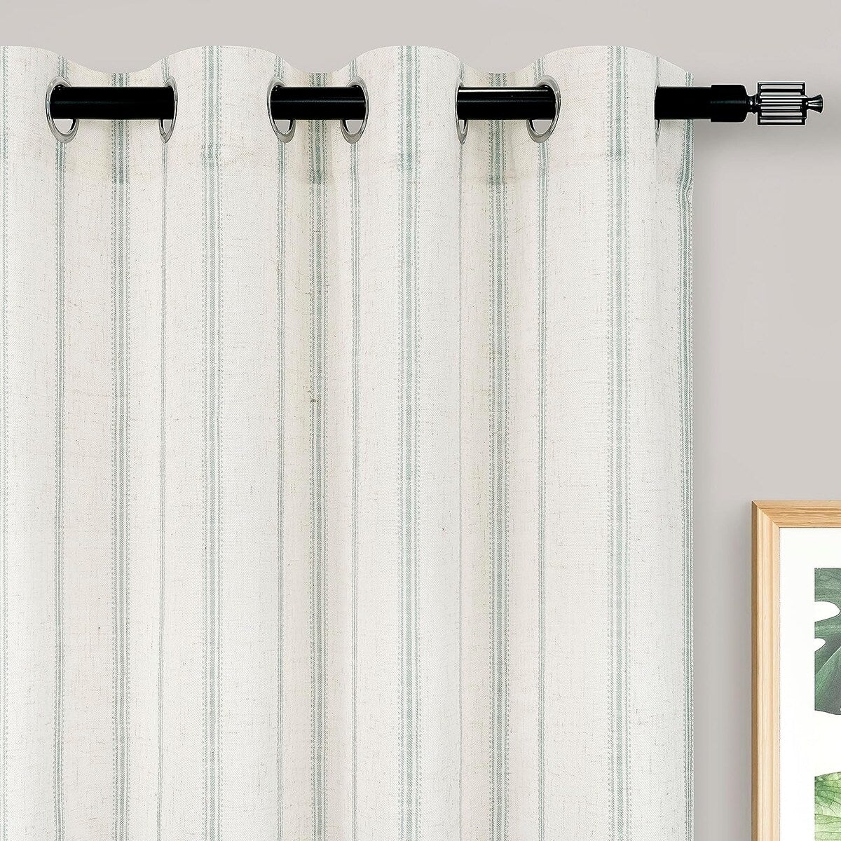 • DESIGN & STYLE: The vertical gray striped pattern window panels have a classic and elegant design, match both room color and your customized home styles, fit well for modern / antique / contemporary / trendy home decor. The linen blended fabric and simple patterns will give your window a graceful vintage look, enhance the taste of your house. Airy & Privacy: The line weave makes curtains more draped and aesthetic. Linen textured curtain creates lightweight, airy, and peaceful look, adds texture, flair and ambiance to any style of your home by allowing soft sunlight to flow through while also providing basic privacy protectio