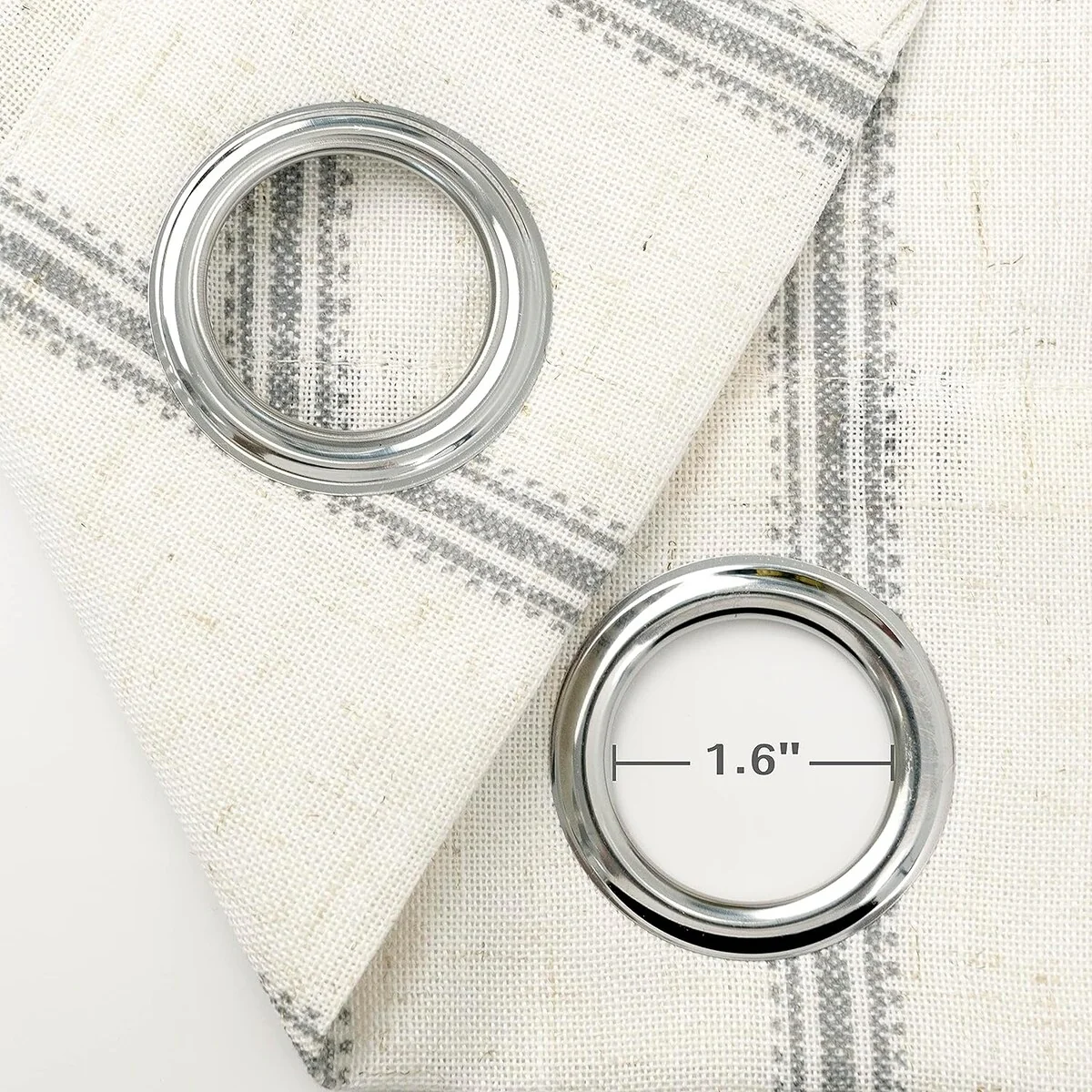 • SIZE & HEADER TYPE: 52"W X 84"L. Extremely strong silver metal grommets slides easily onto your curtain rod for quick installation. There are 8 grommets in the window treatment header of each panel. Outside diameter of each eyelet is 5.8cm (2.3'') and inside diameter of that is 4cm (1.6''), which perfectly accommodate up to 1.5'' curtain rod.n. Keep your spaces bright and cheerful without worrying about visibility from outside.