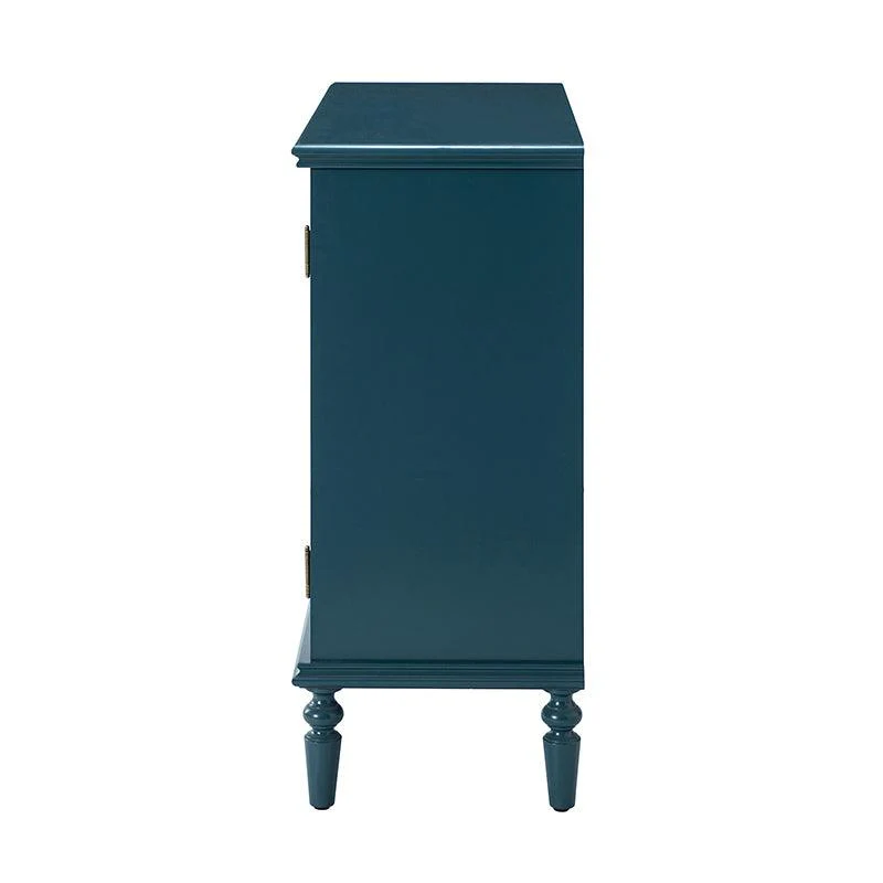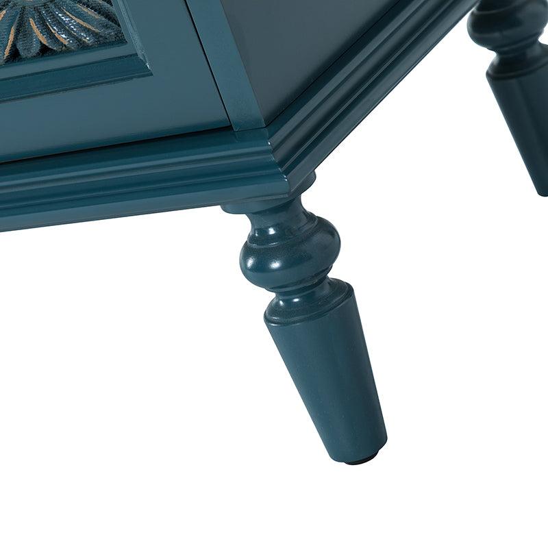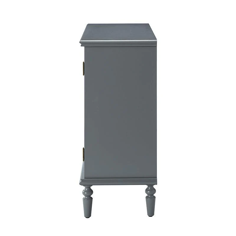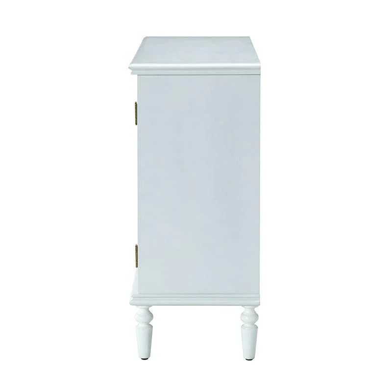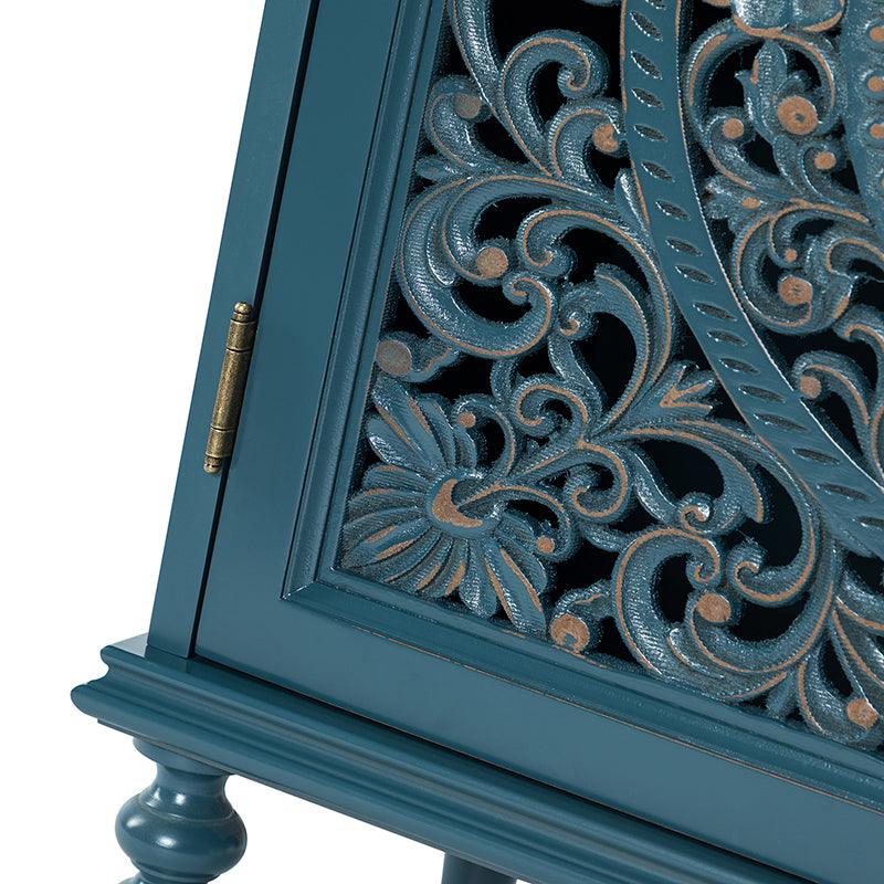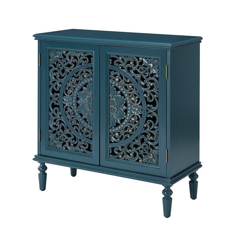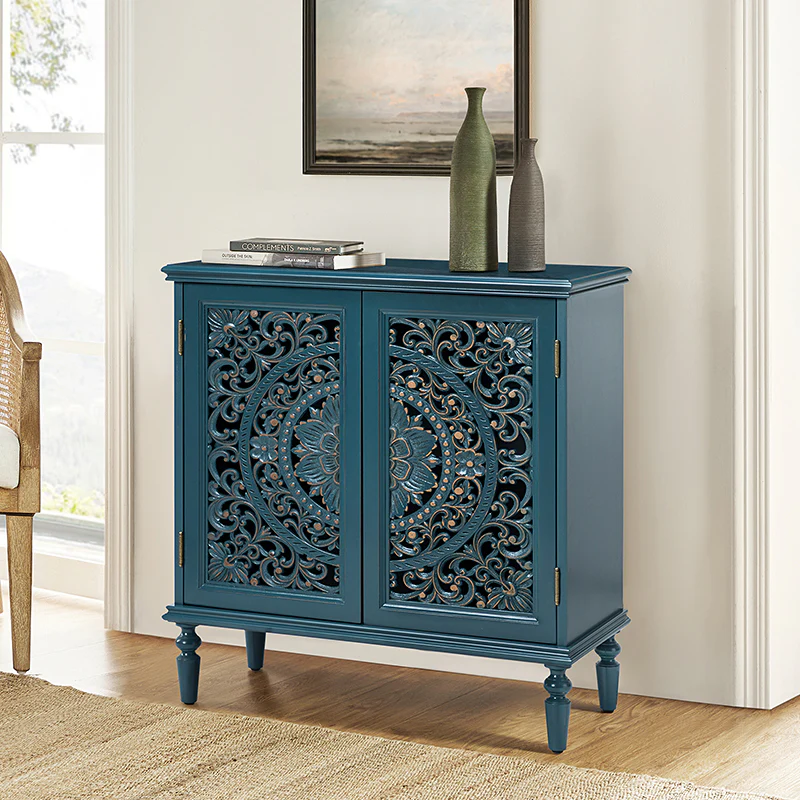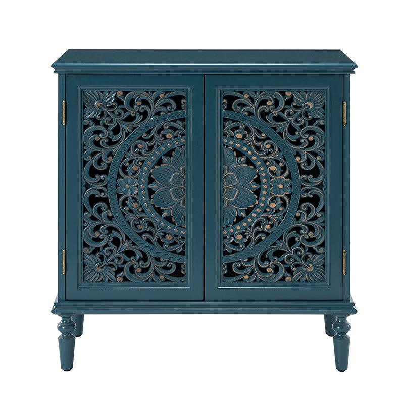 A sleek addition to your bedroom or living space, this transitional cabinet sports an elegant look that's fit for any aesthetic. The two cabinet doors have a carved floral design to add a touch of flair to your drab living space. The interior of the cabinet has a fixed shelf that divides the interior space into two sections to provide space for what you need. Four turned legs firmly support the whole cabinet, so you don't have to worry about his weight-bearing problem when you put a lot of things. Meanwhile, the flat top surface is the perfect area to put potted plants, books and other things. The streamlined design makes it a versatile piece that ideal in smaller spaces, whether in a sitting area or next to a bed.