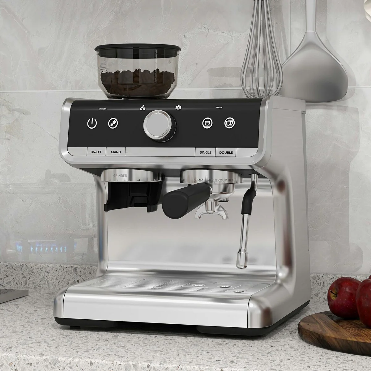 The espresso machine adopts a lightweightconstruction, making it easier to handle and maintain compared to stainlesssteel models. It is rust-resistant and offers insulation properties. Equippedwith digital temperature control (PID), this espresso machine ensures precisedelivery of the correct temperature for optimal espresso extraction, providingyou with a perfect cup of coffee. With a generous 2.8L tank and a removabletray for accommodating larger cups, this espresso machine allows you to createmultiple espresso drinks effortlessly. Its ergonomic design ensures seamlessbrewing. This espresso machine features a built-in grinder and a power ratingof 1450W, enabling you to transform coffee into espresso within minutes. Thecappuccino machine offers 30 grind settings for customization, with simplebutton controls for operation. Whether you desire a rich espresso, a creamycappuccino, or a frothy latte, this Espresso Machine with grinder and milkfrother wand caters to all your coffee preferences. Ideal for baristas seekingversatility and quality.