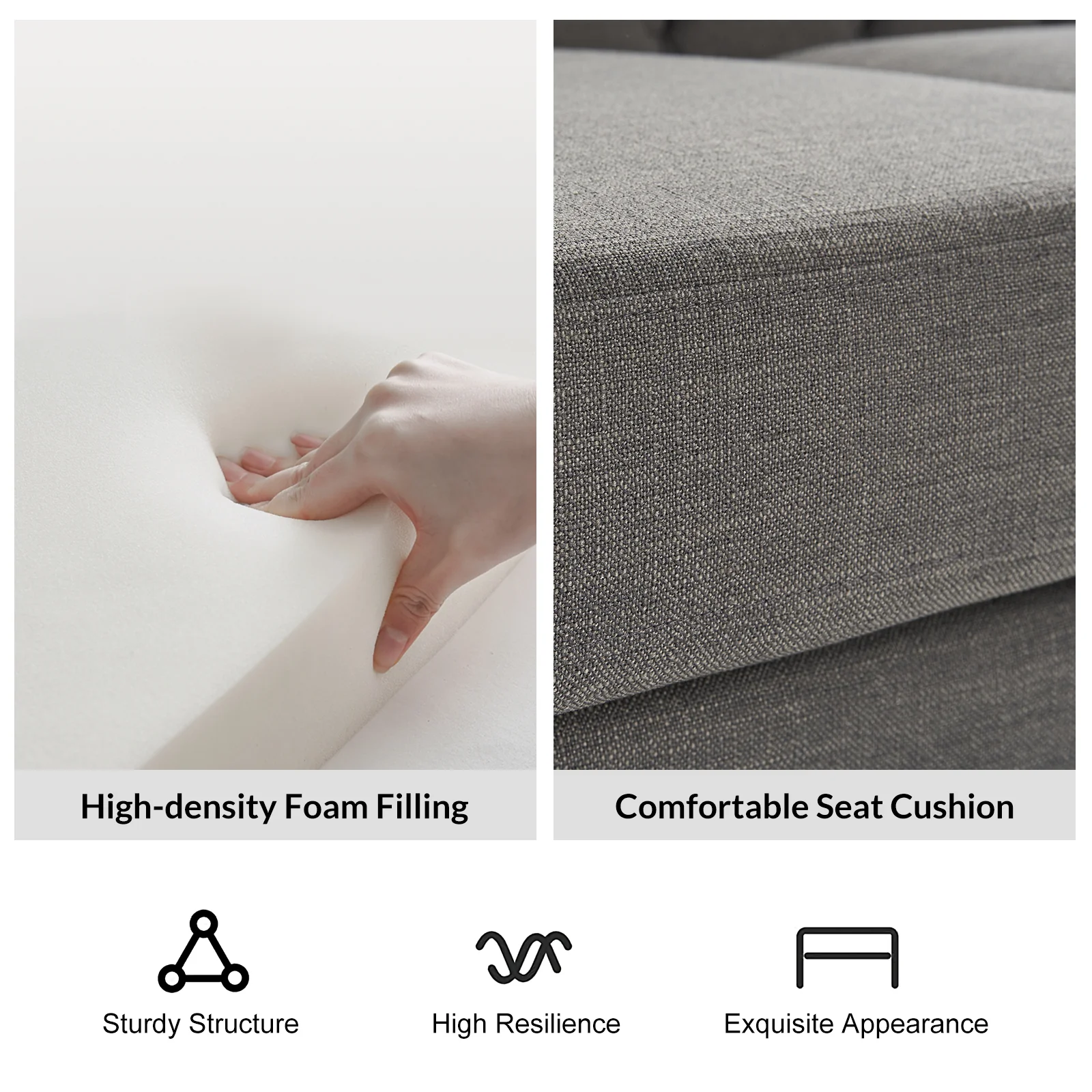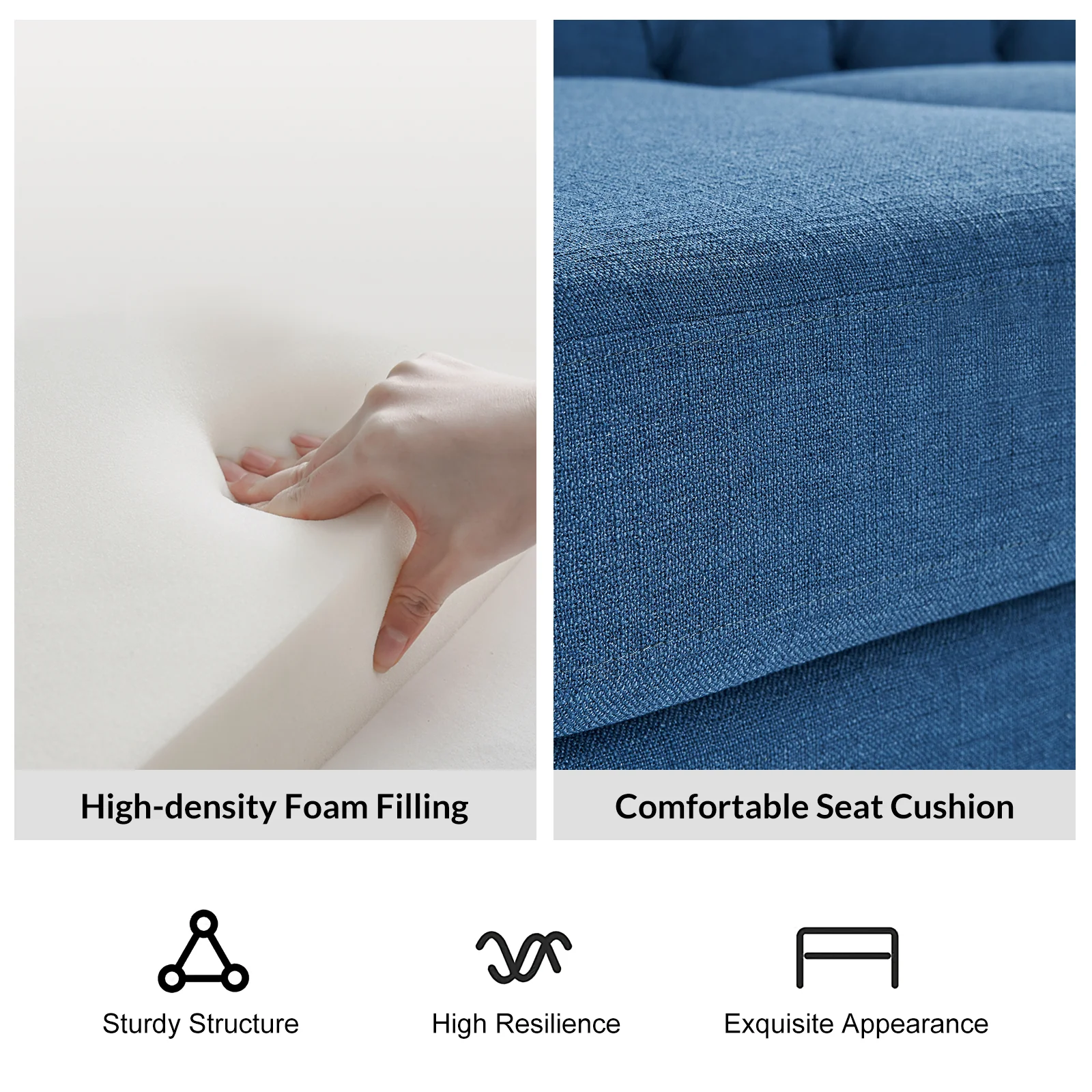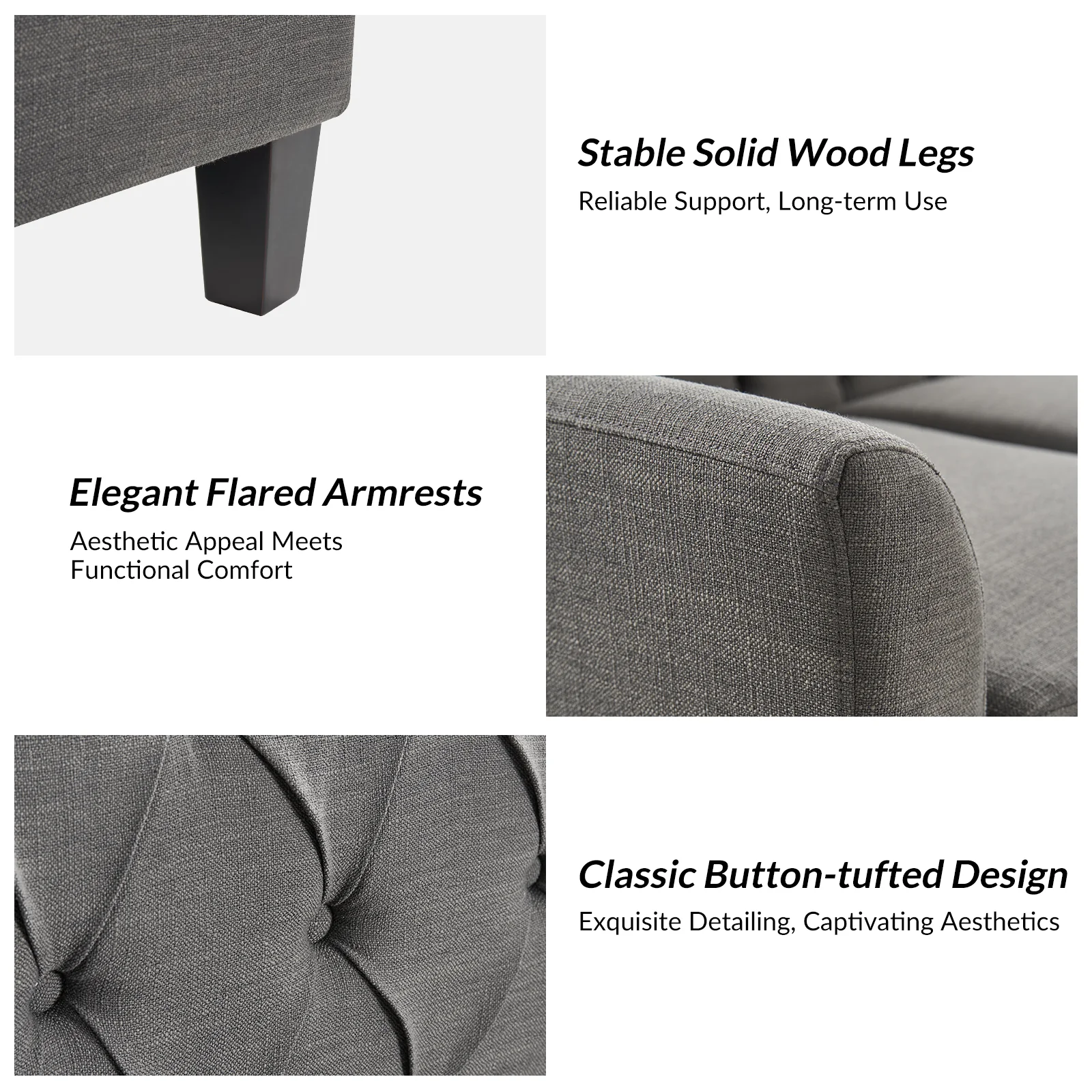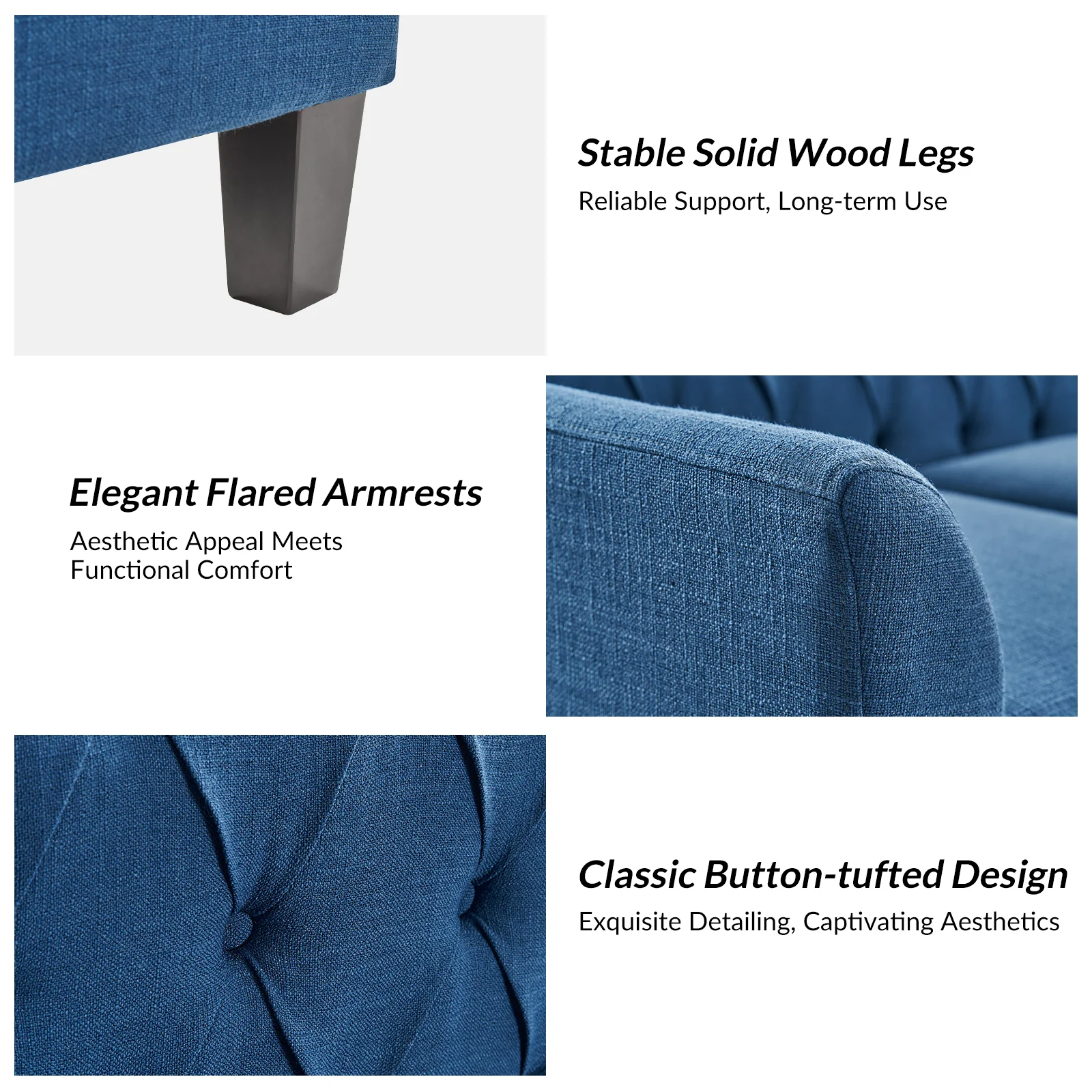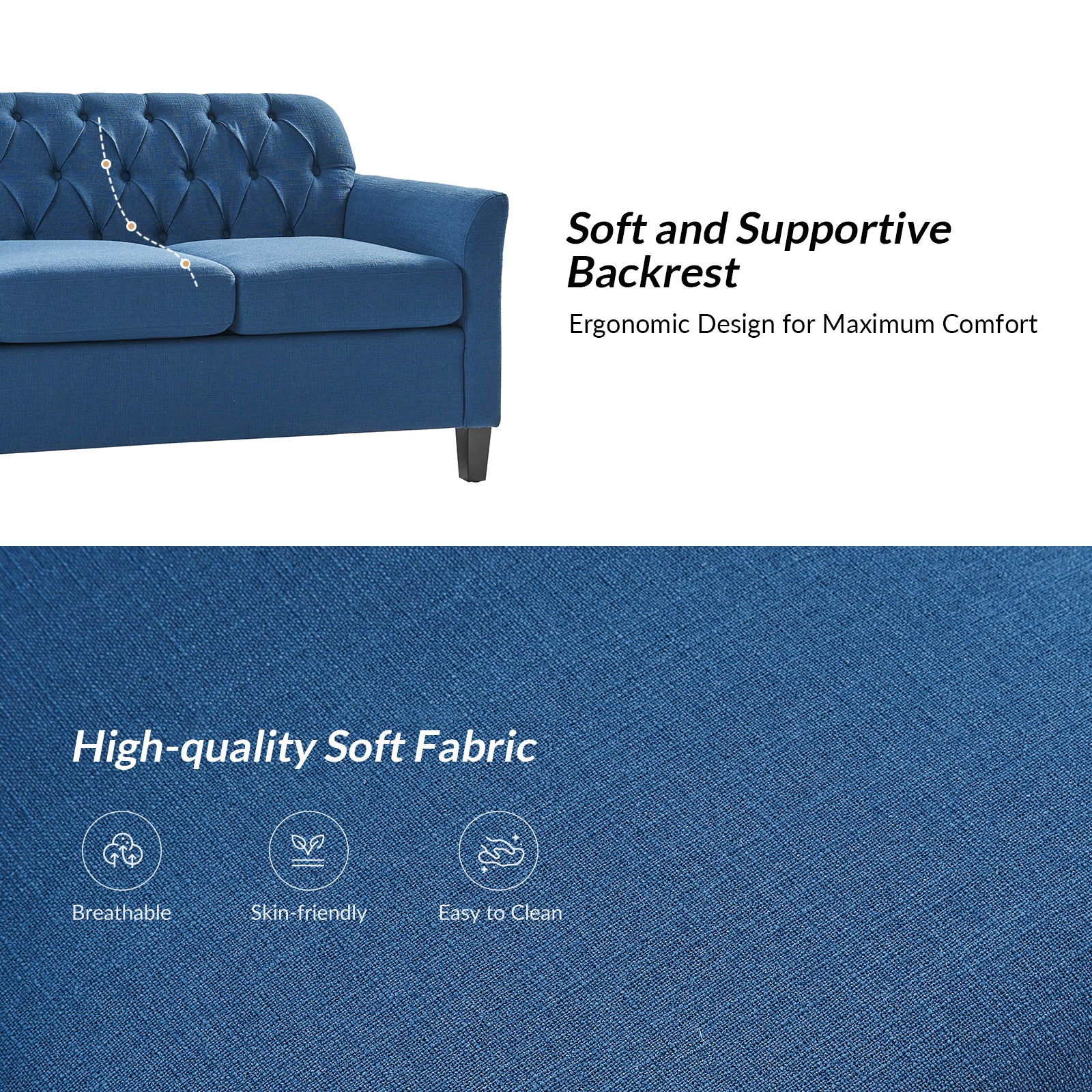 The 2-piece living room set embodies a transitional style, seamlessly blending contemporary and traditional elements. The sofa boasts a distinctive design featuring solid wood legs, flared arms, and a soft button-tufted backrest for added comfort. Crafted from skin-friendly fabric, it ensures a cozy and inviting feel. Practicality meets convenience with removable seat cushions and detachable pillow cores, facilitating easy cleaning and maintenance. Enhanced comfort is ensured with high-density foam and spring construction, promising a relaxing lounging experience. This set not only exudes elegance but also offers practicality and comfort, making it a suitable addition to any modern living space.