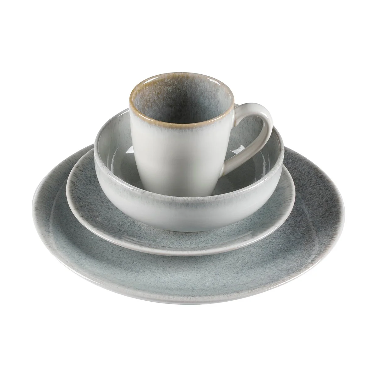 • WHAT'S IN THE BOX: Service for 4 that includes 4 of each of the following: 11.25" Dinner Plates, 8.25" Dessert Plates, 6.5" (30.5 OZ) Bowls and 13 OZ Mugs. Generous coupe shape with a great versatile bowl design.
