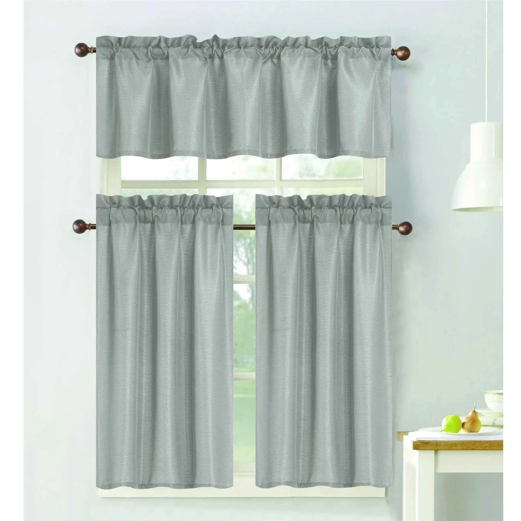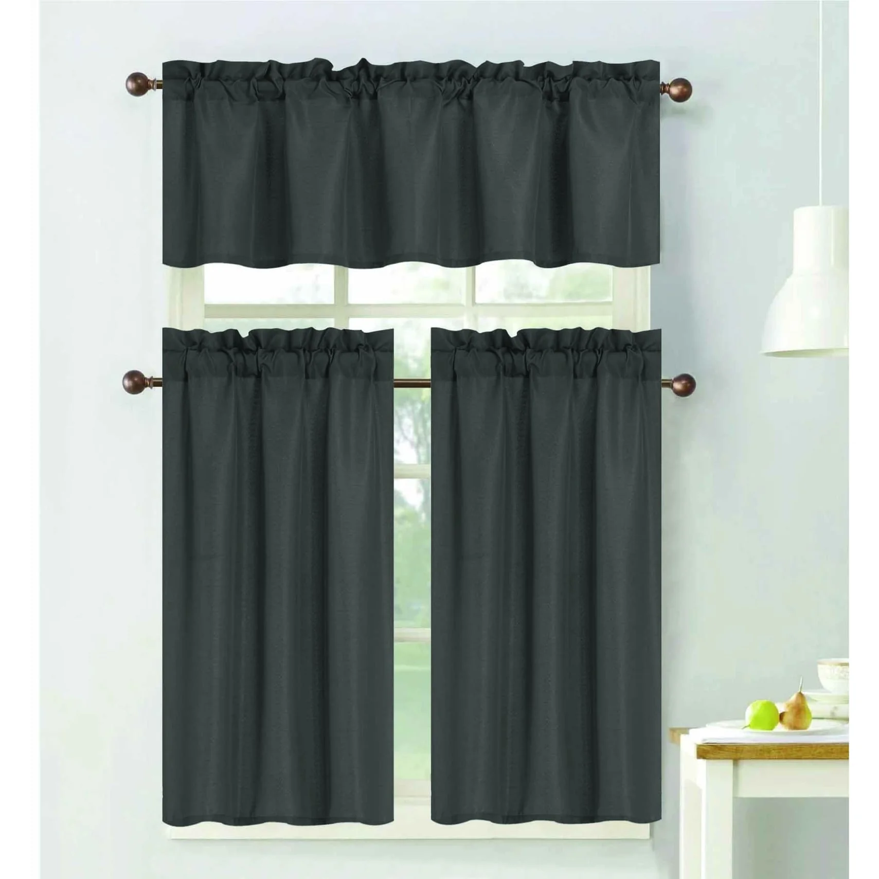 - Complete Set: The 3-piece set includes a valance and two tier curtains, providing a coordinated and polished look for your kitchen window.