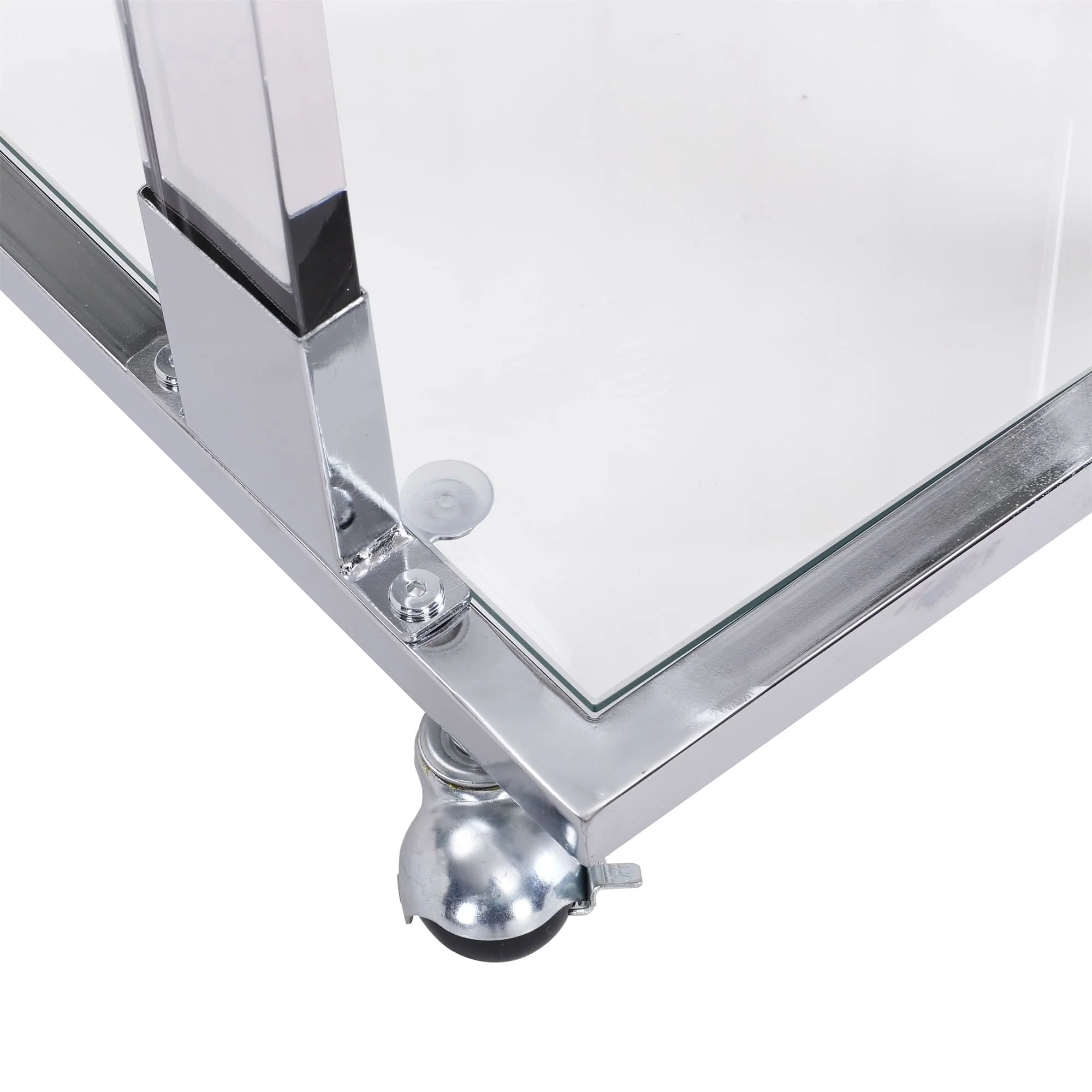【Sturdy & Durable】 Built with high quality tempered glass, metal frame and acrylic.which will last a long time. Keep stable even on uneven floors and effectively protect floors from scratches. And easy to clean, you can be cleaned with any soft dry cloth or damp cloth.