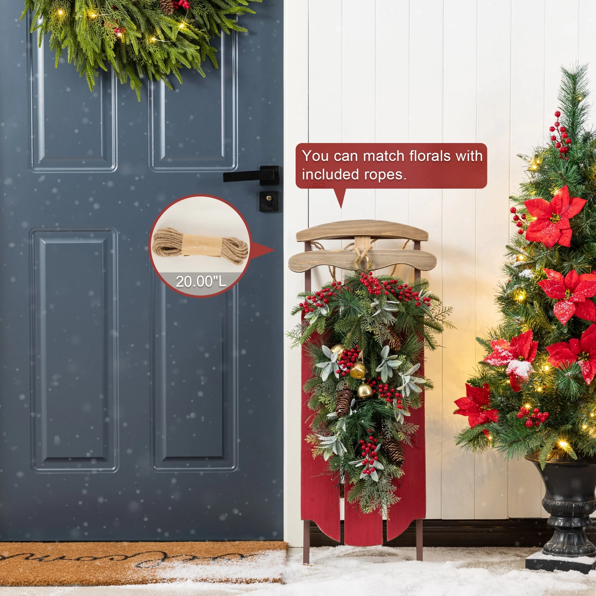 - Classic sleigh design. You can match florals with included ropes.